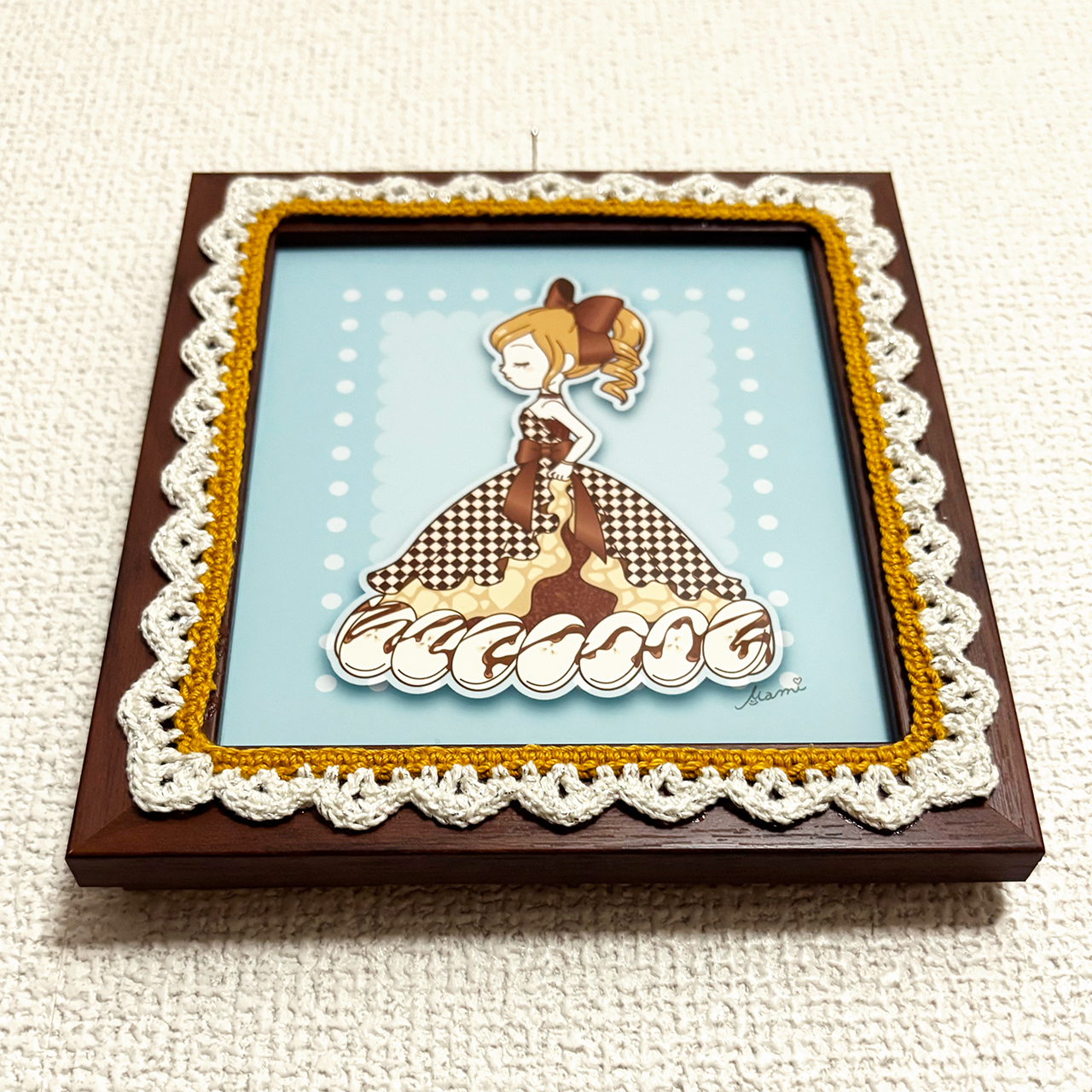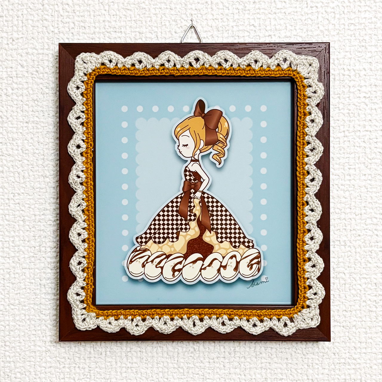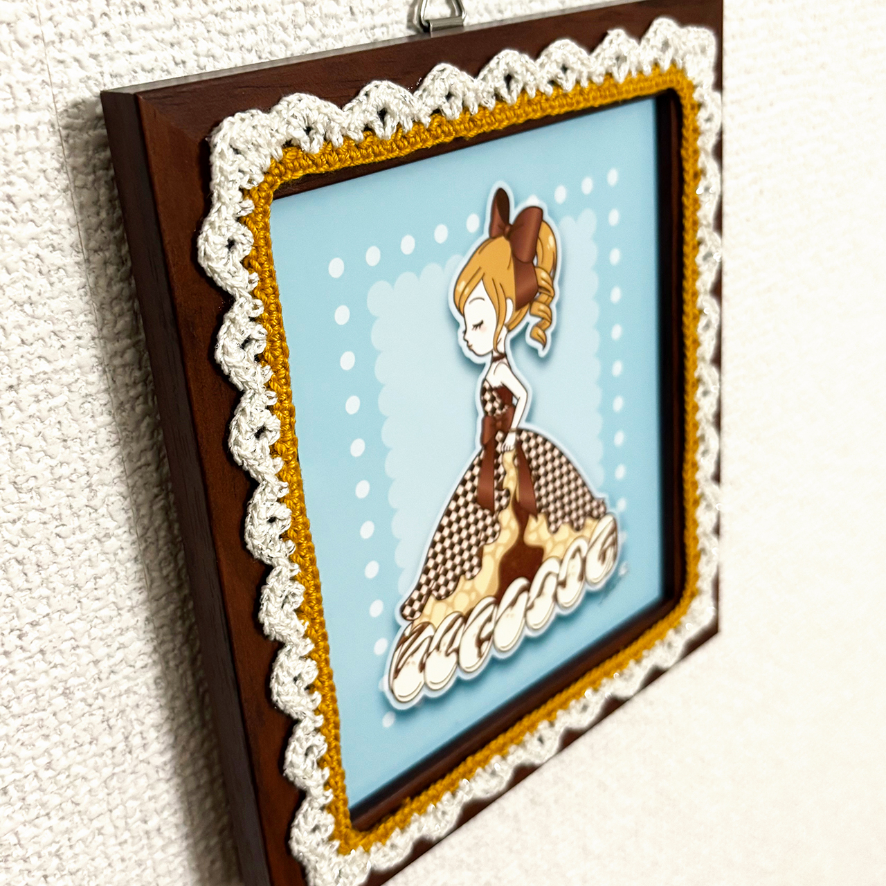 デジタルイラストとかぎ針編みを組み合わせた、額装作品です。