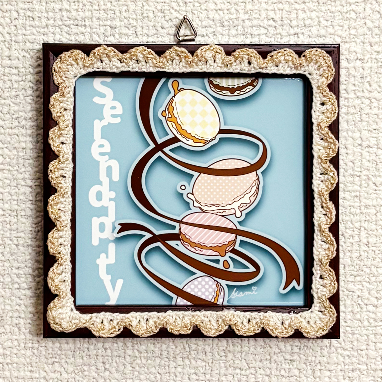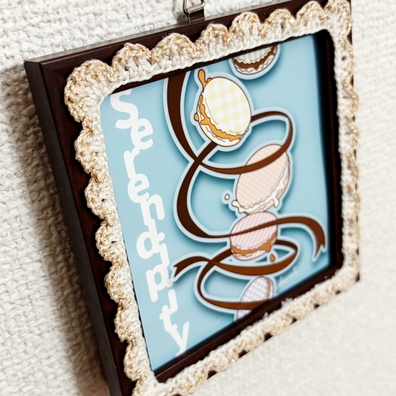 デジタルイラストとかぎ針編みを組み合わせた、額装作品です。