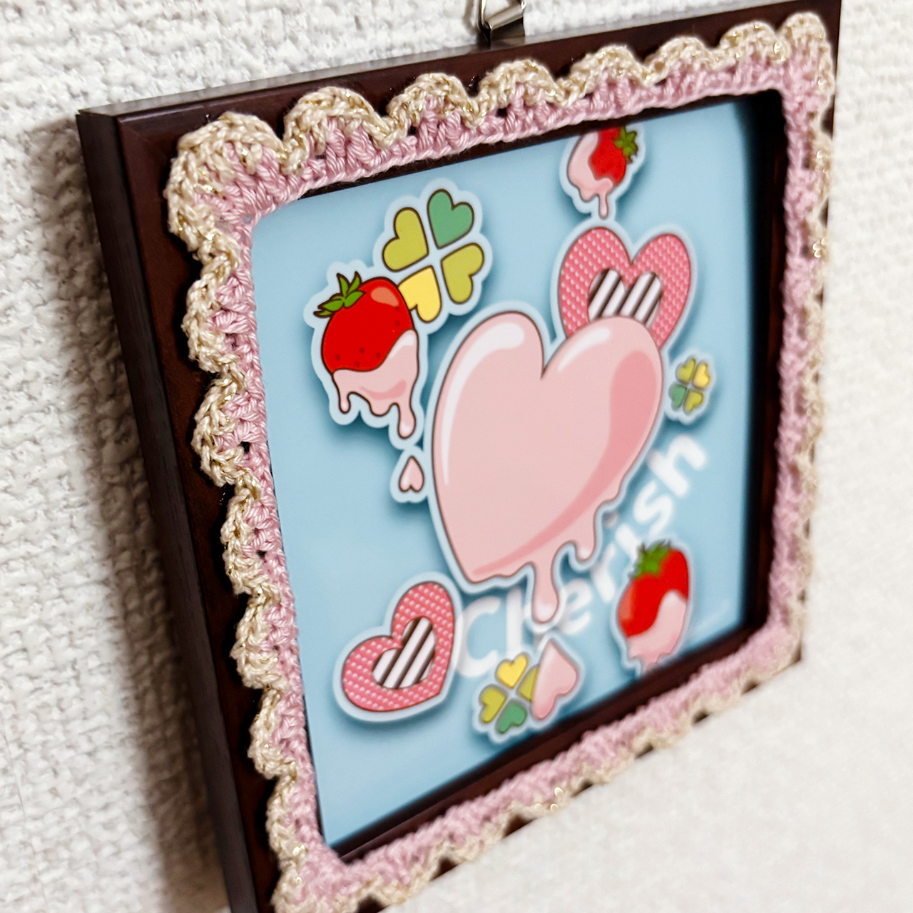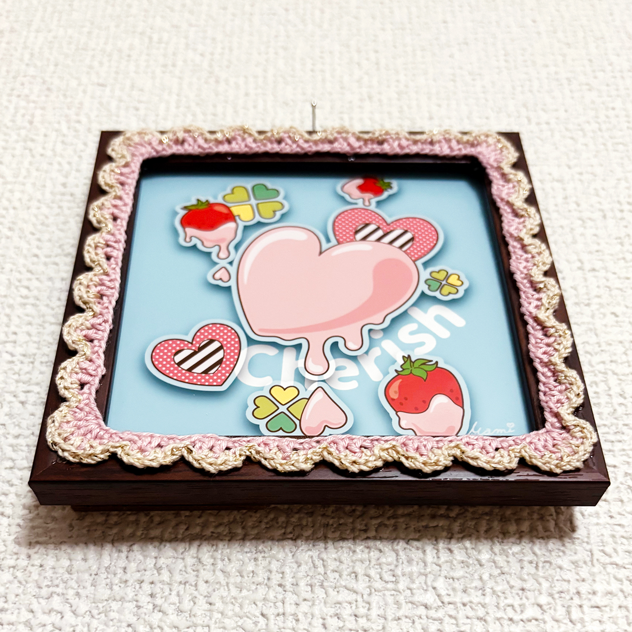 デジタルイラストとかぎ針編みを組み合わせた、額装作品です。