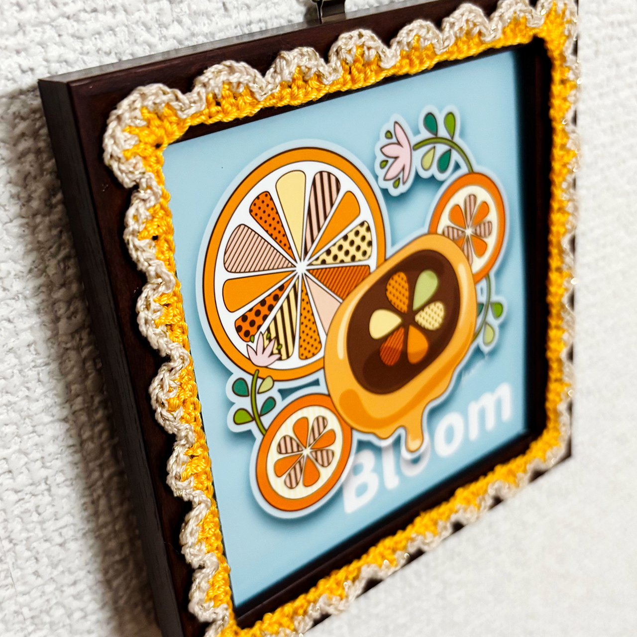 デジタルイラストとかぎ針編みを組み合わせた、額装作品です。