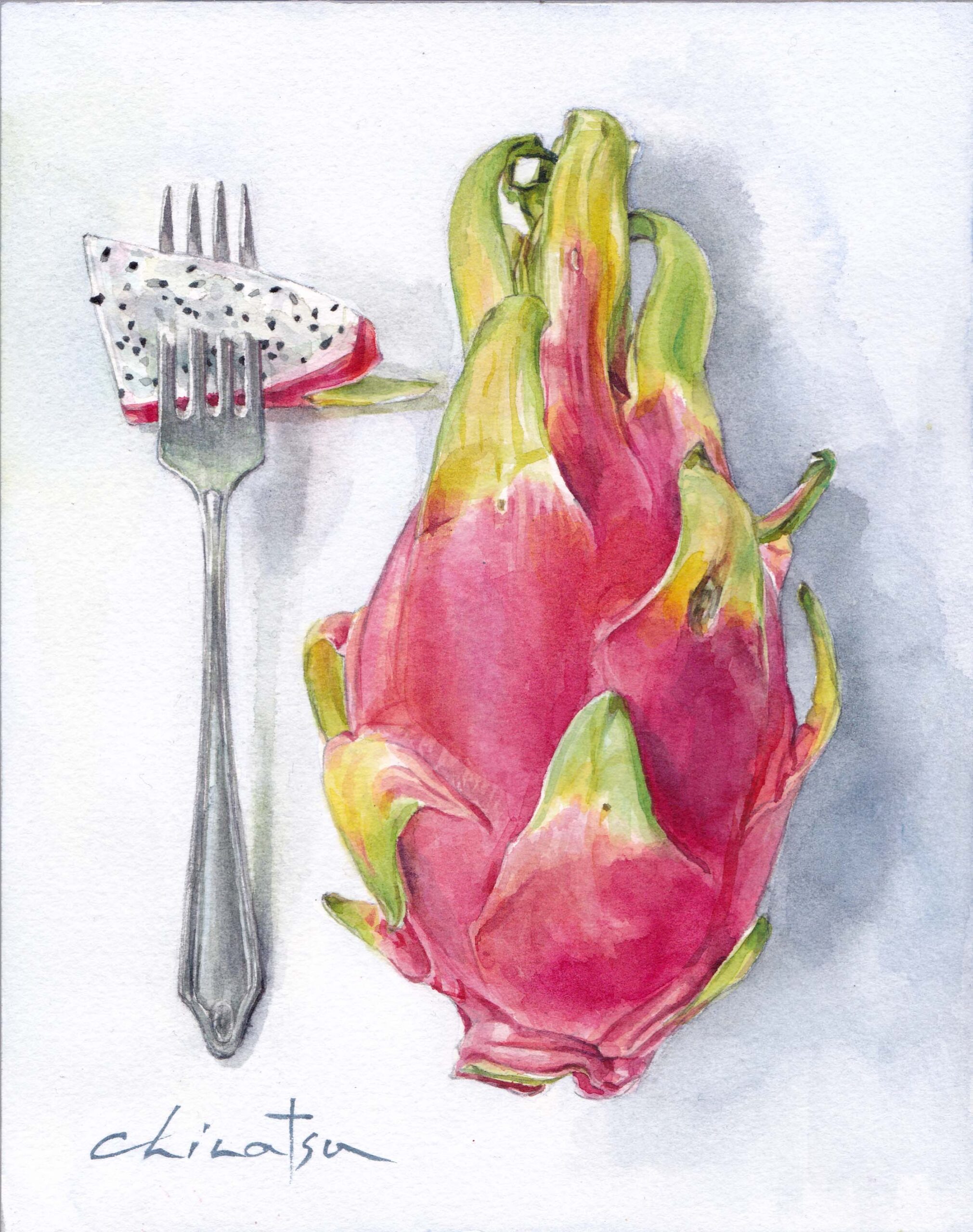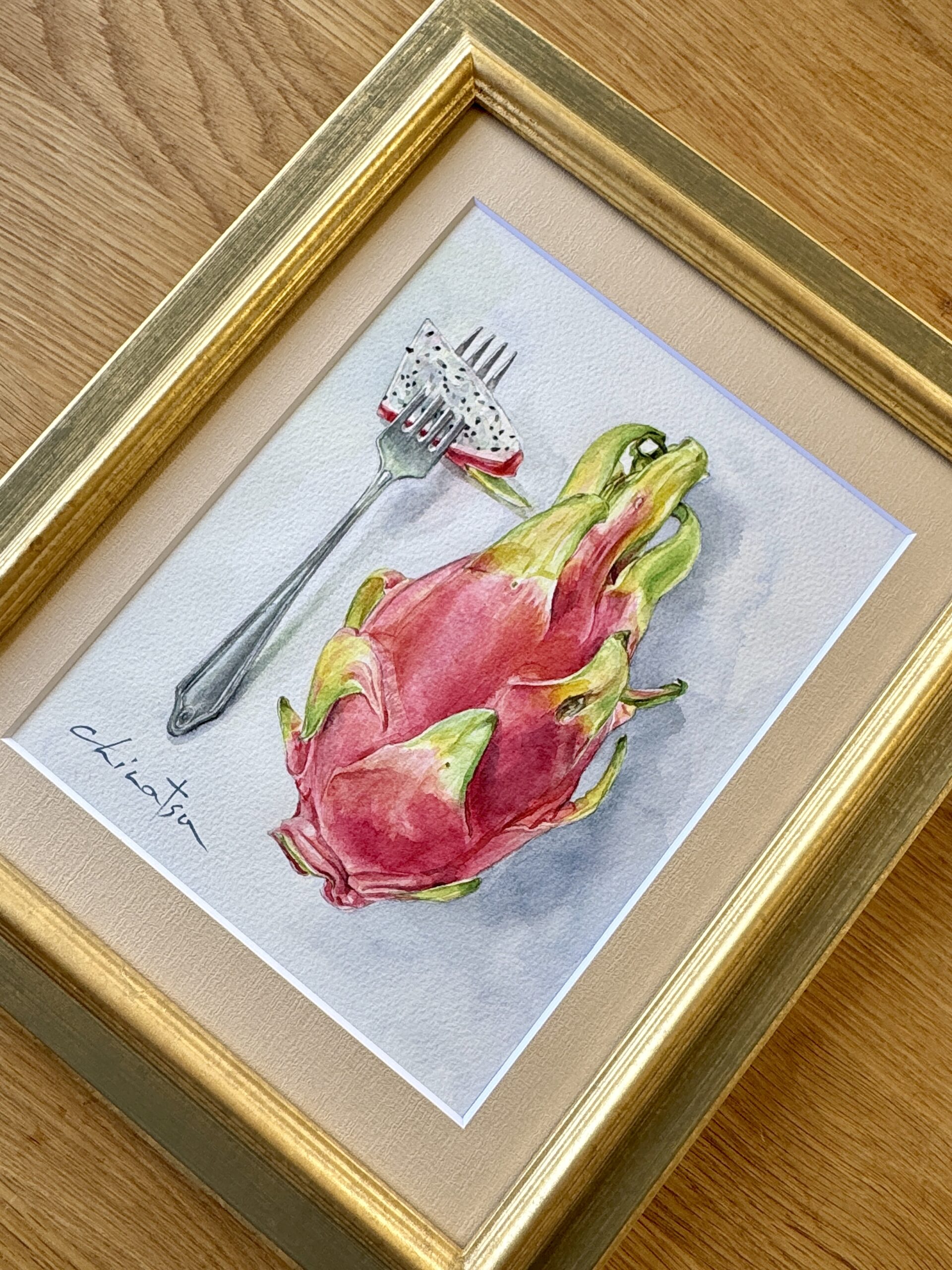 絵になるような新鮮なドラゴンフルーツを吟味して描きました🖌️