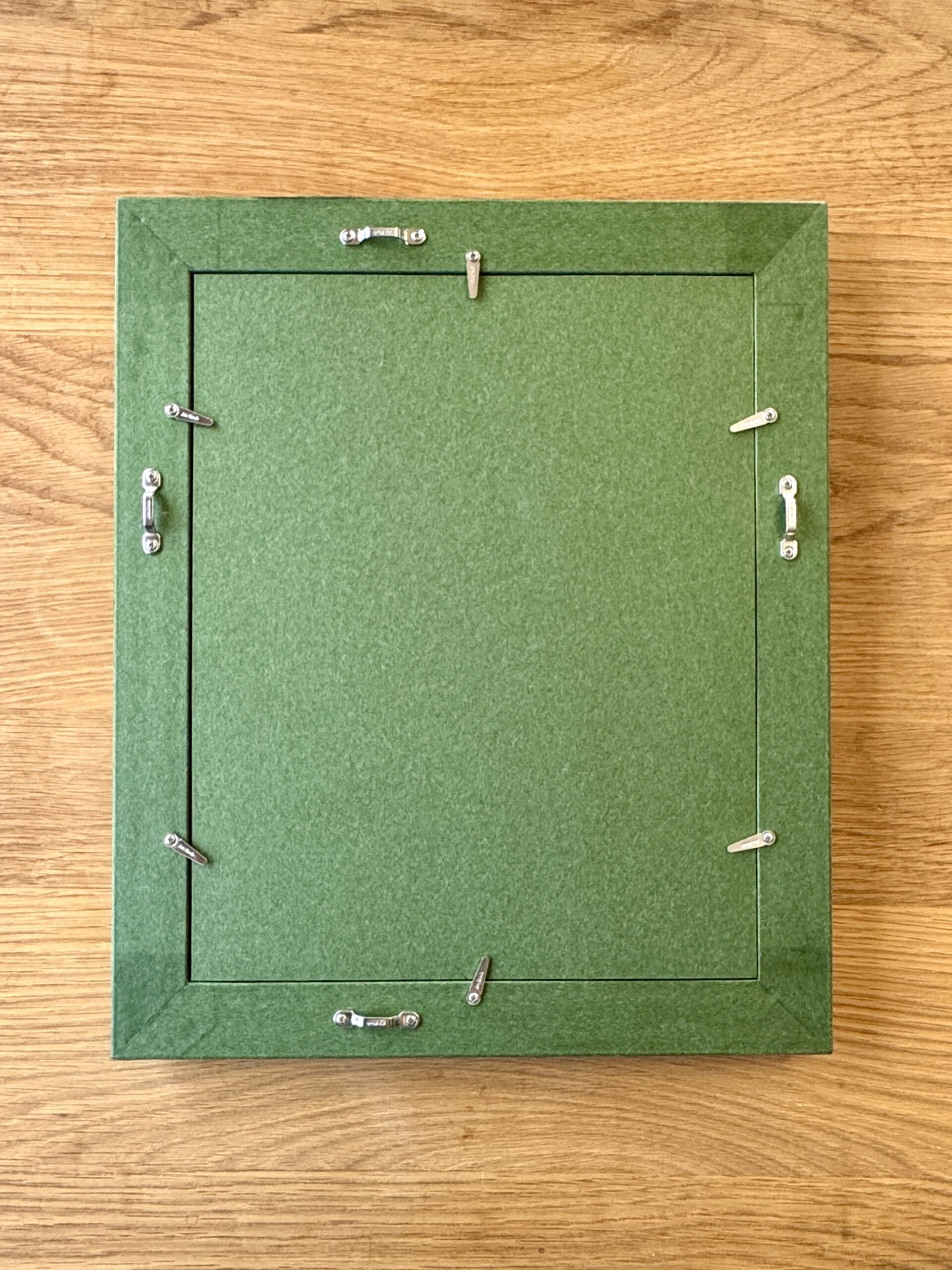 画像の額縁で発送いたします。また、反射防止の為にガラスを外して撮影しております。実物は額縁付属のガラス(またはアクリルガラス)が入ります。
