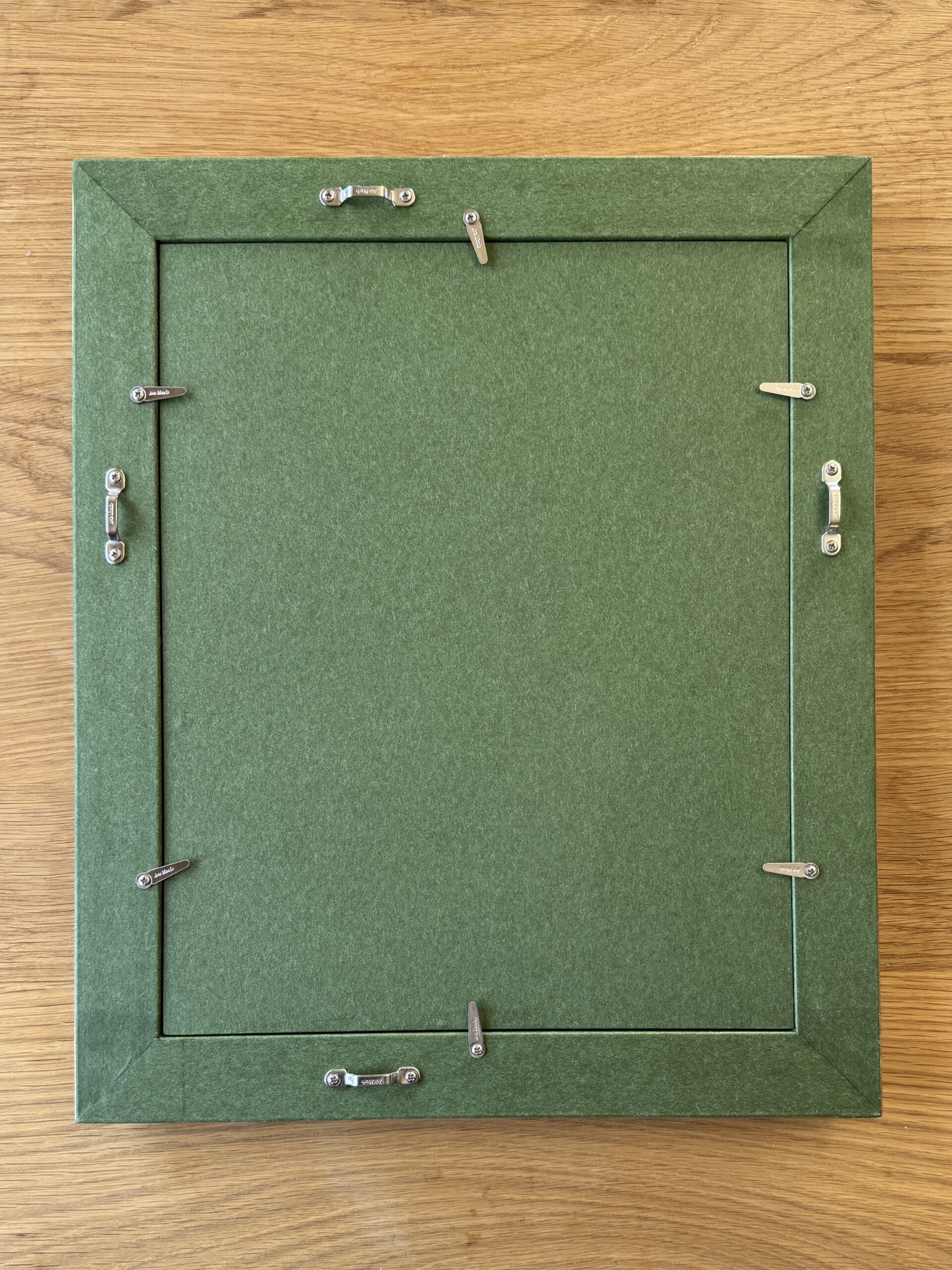 画像の額縁で発送いたします。また、反射防止の為にガラスを外して撮影しております。実物は額縁付属のガラス(またはアクリルガラス)が入ります。