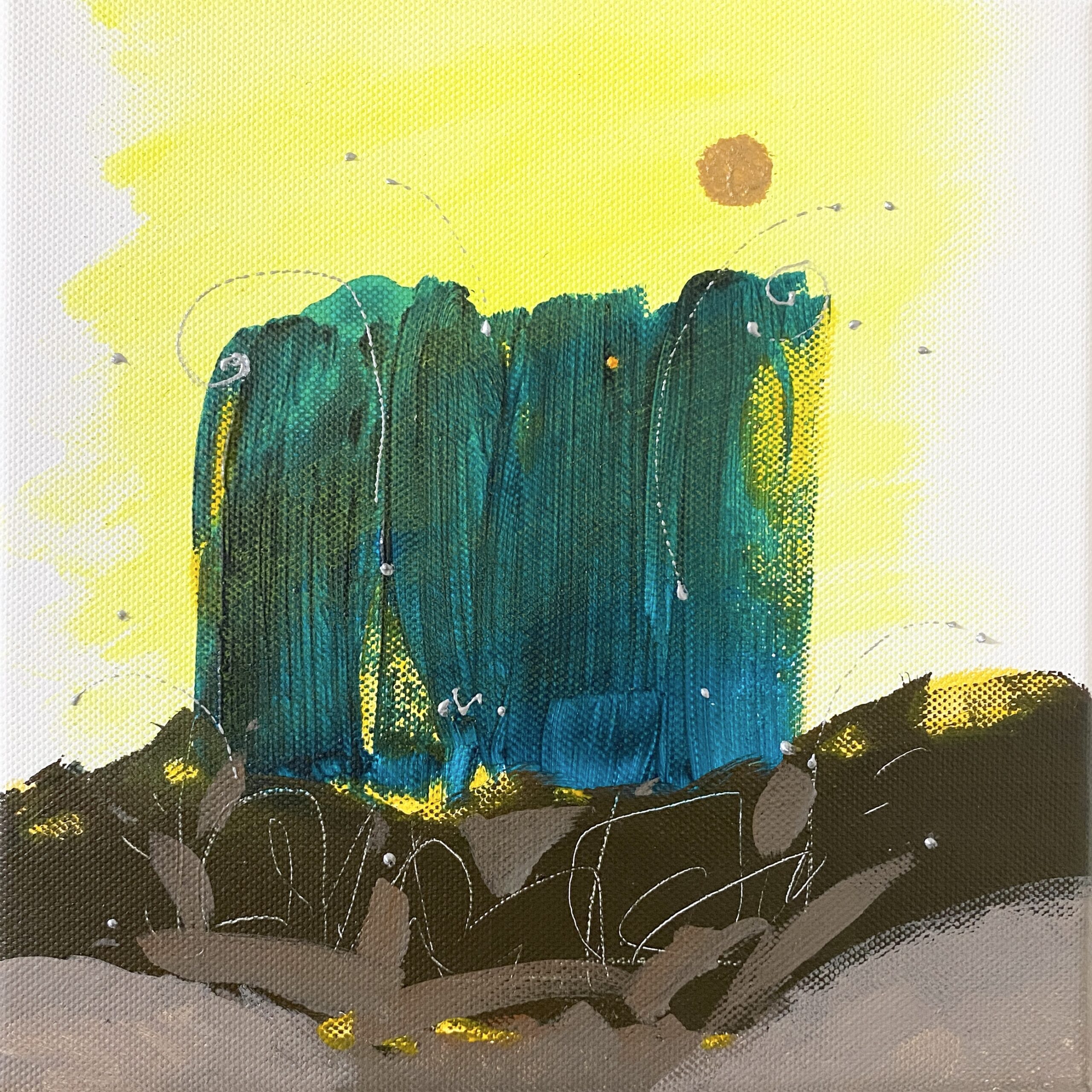 学生時代、染色技法、アクリル画で、主に幾何・抽象表現の作品を制作。