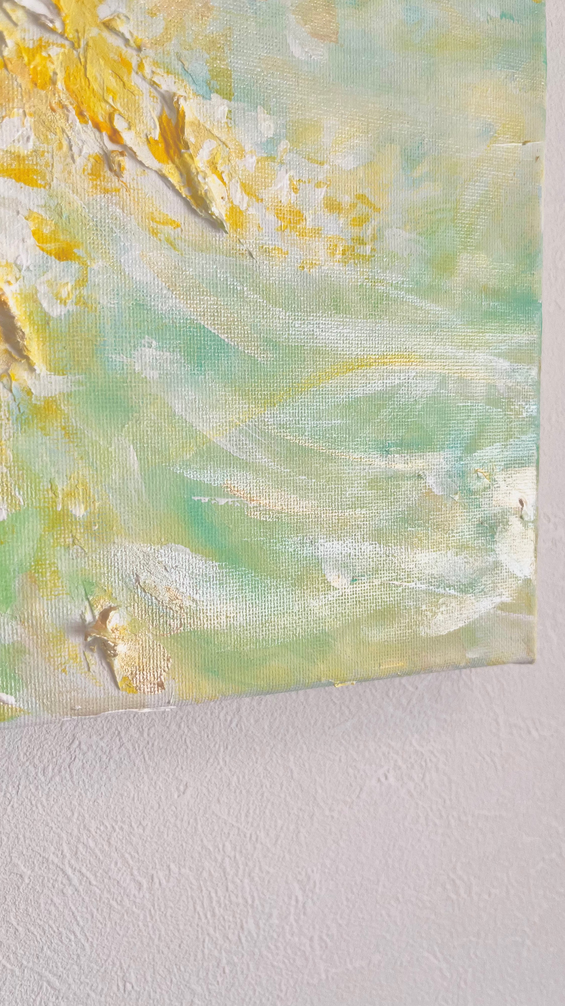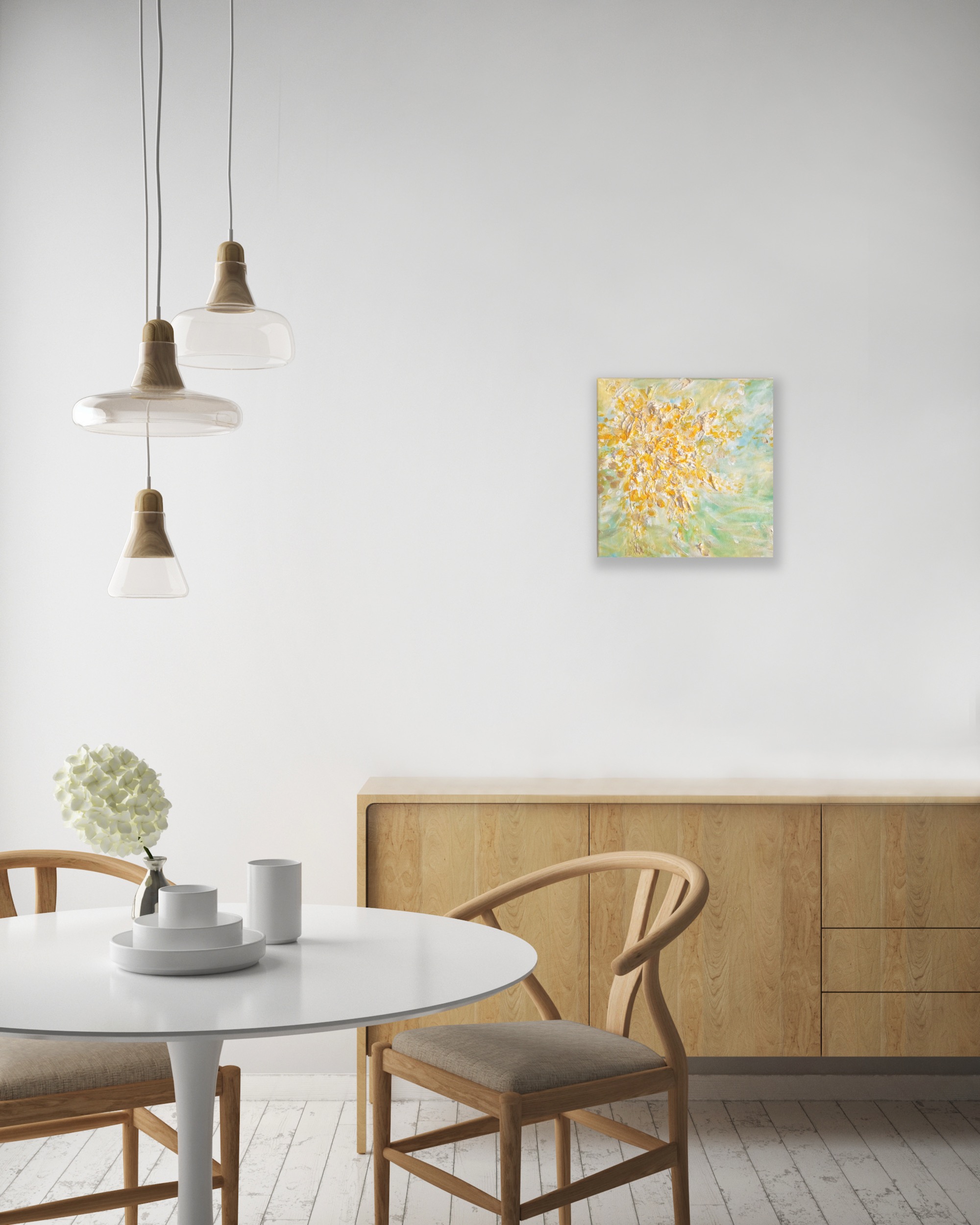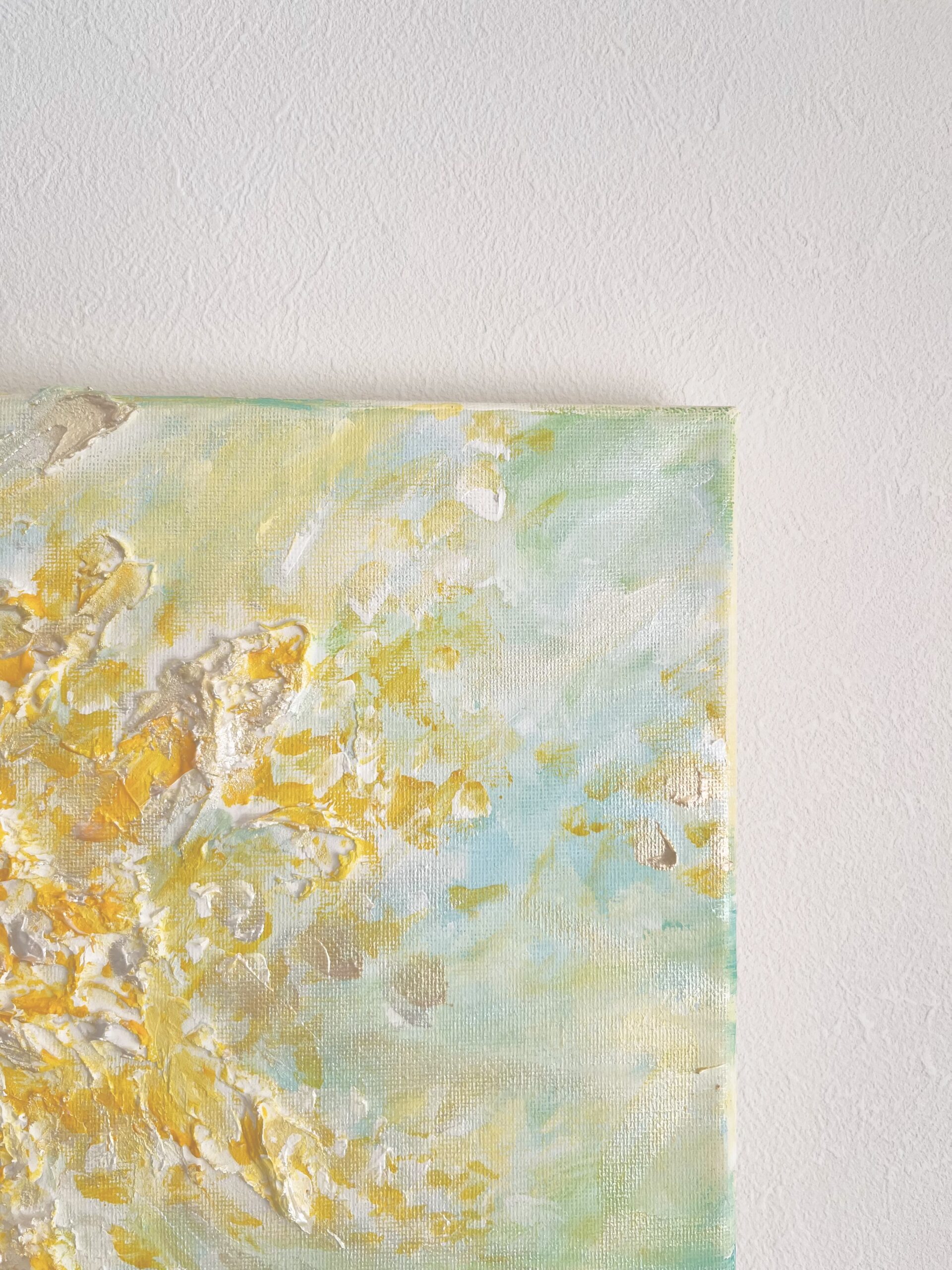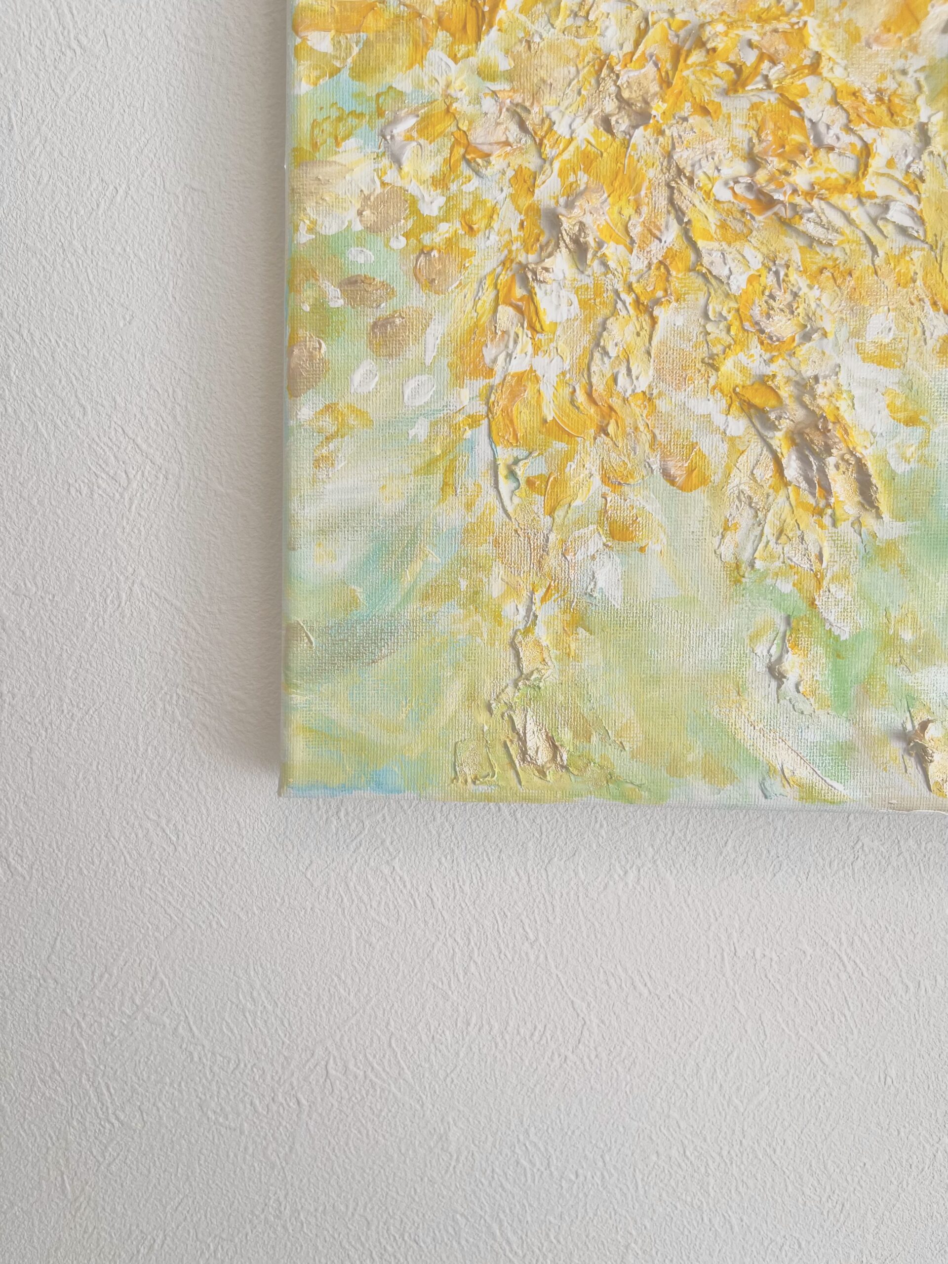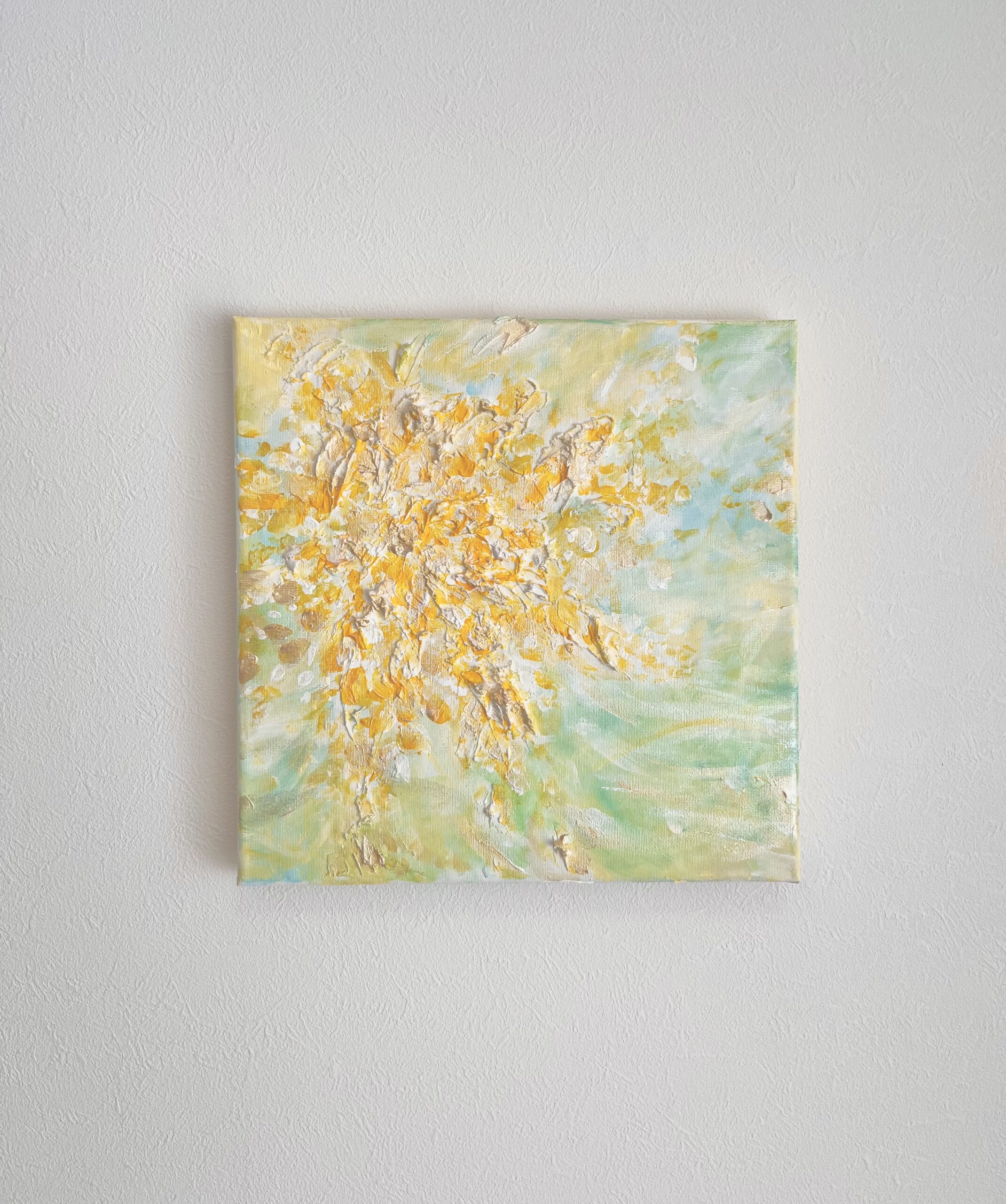 ミモザの花が放つやわらかな光と、春の空気感を抽象的に表現した作品です。繊細な光のきらめきが、心にそっと癒しを届けてくれます。