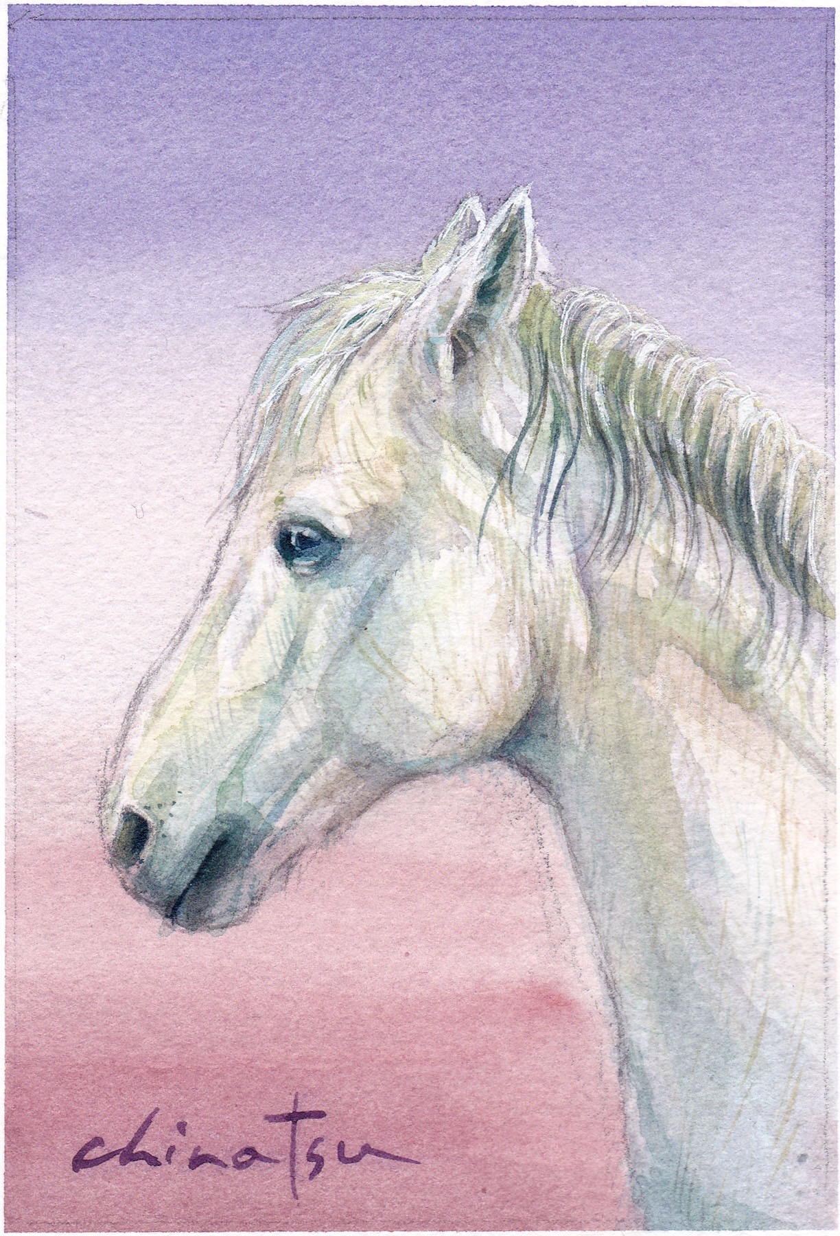 今年は午年。近所の馬場のお馬さんに会いに行き描かせてもらいました。