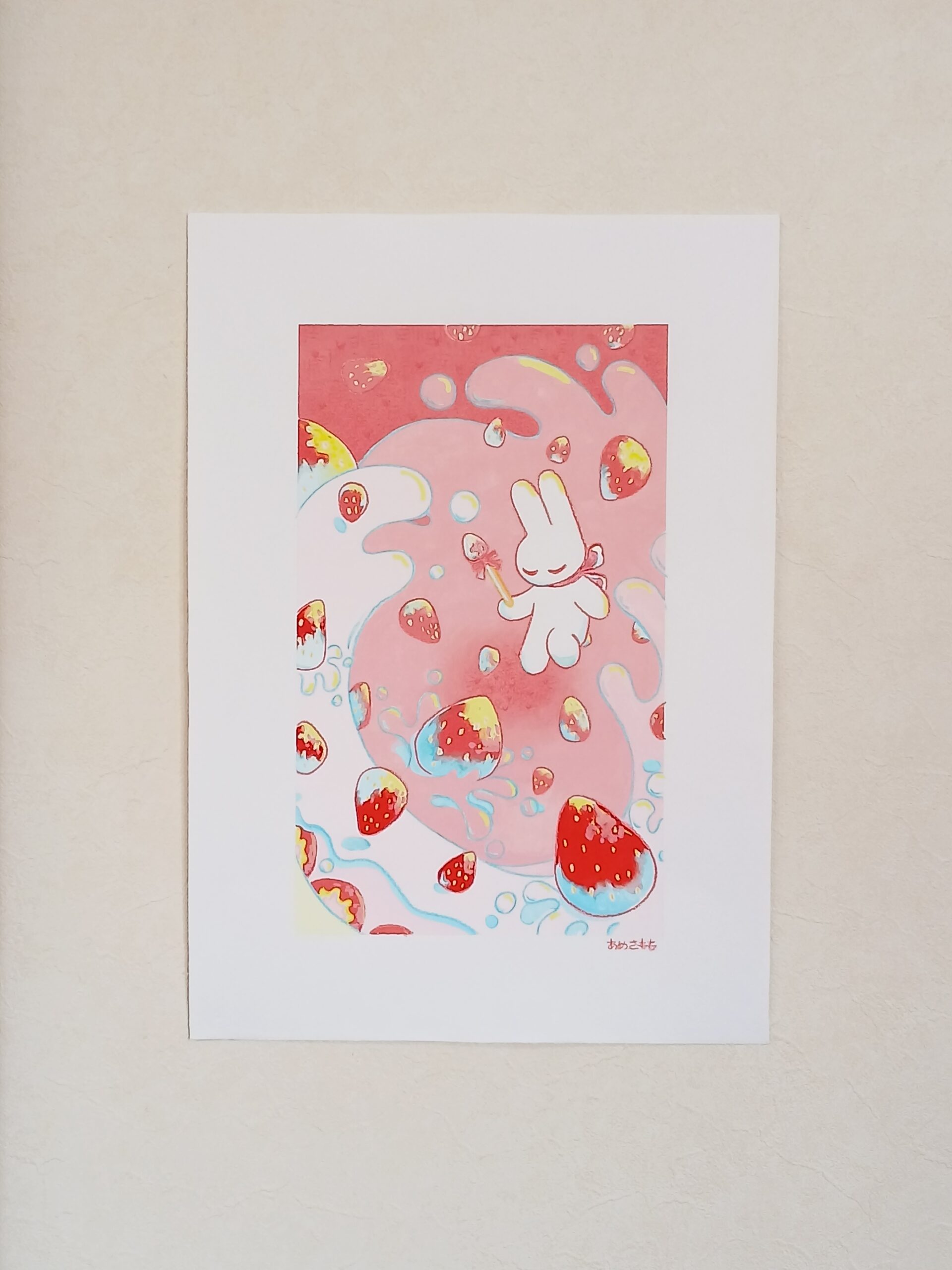 ケーキを作りましょう。うさぎちゃんは魔法使いです。たっぷりのクリームに、ジューシーないちご。そう、もうすぐできるのは…。
