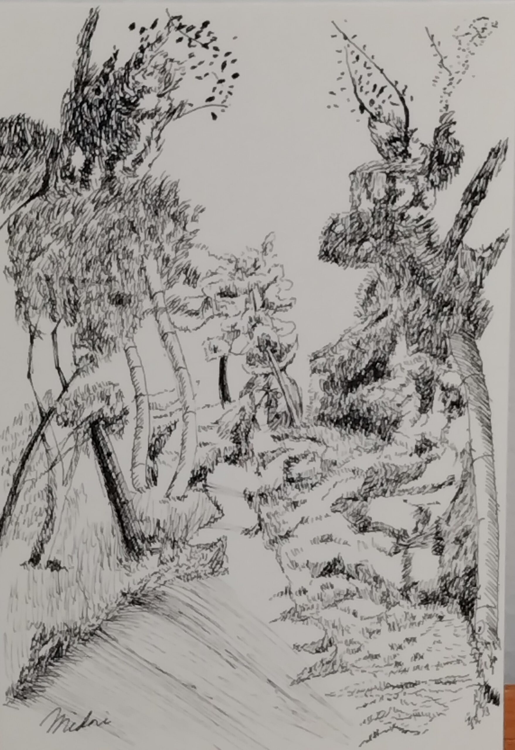 さりげない道を精緻なペンの筆致で描きました。