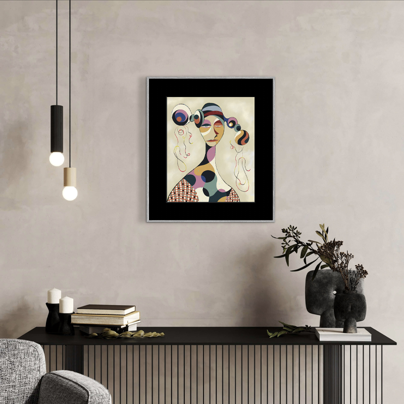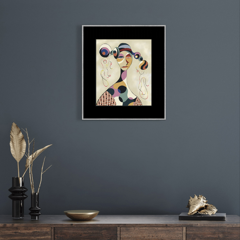被写体の女性を抽象的に変換し、グラフィカルな色の組み合わせで表現したシリーズ作品の新作。こちらは額装での販売となります。フレーム色、マット色等は変更可能です。尚、サイズは適度な大きさでの販売になりますが、デジタル作品につき可能な限りサイズ変更が可能です。価格等は変動致しますがご相談ください。
