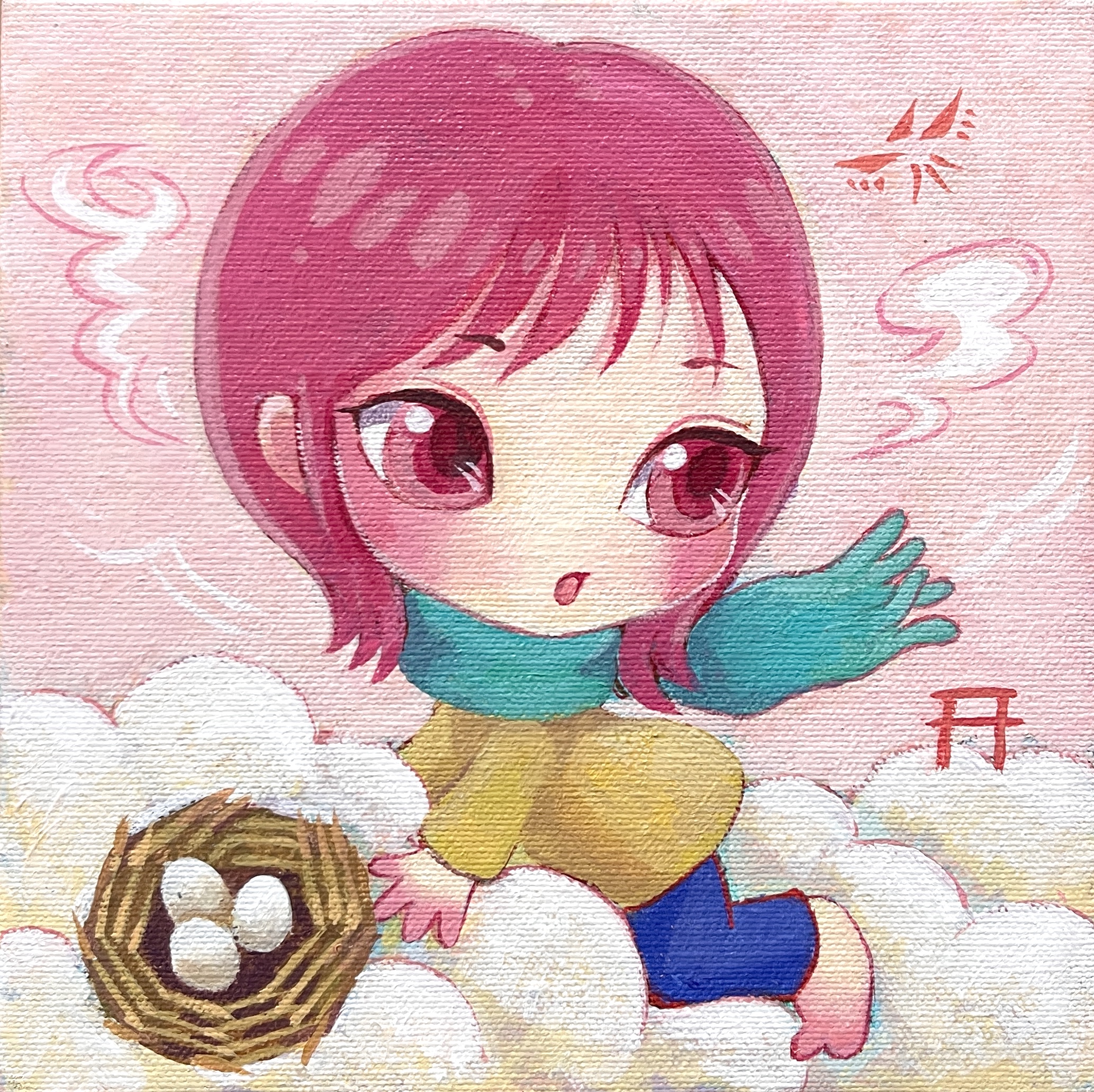 この絵は中国の太古の神様「女媧(じょか)」が世界を救ったり人々を創造した話をヒントに絵を作りました。