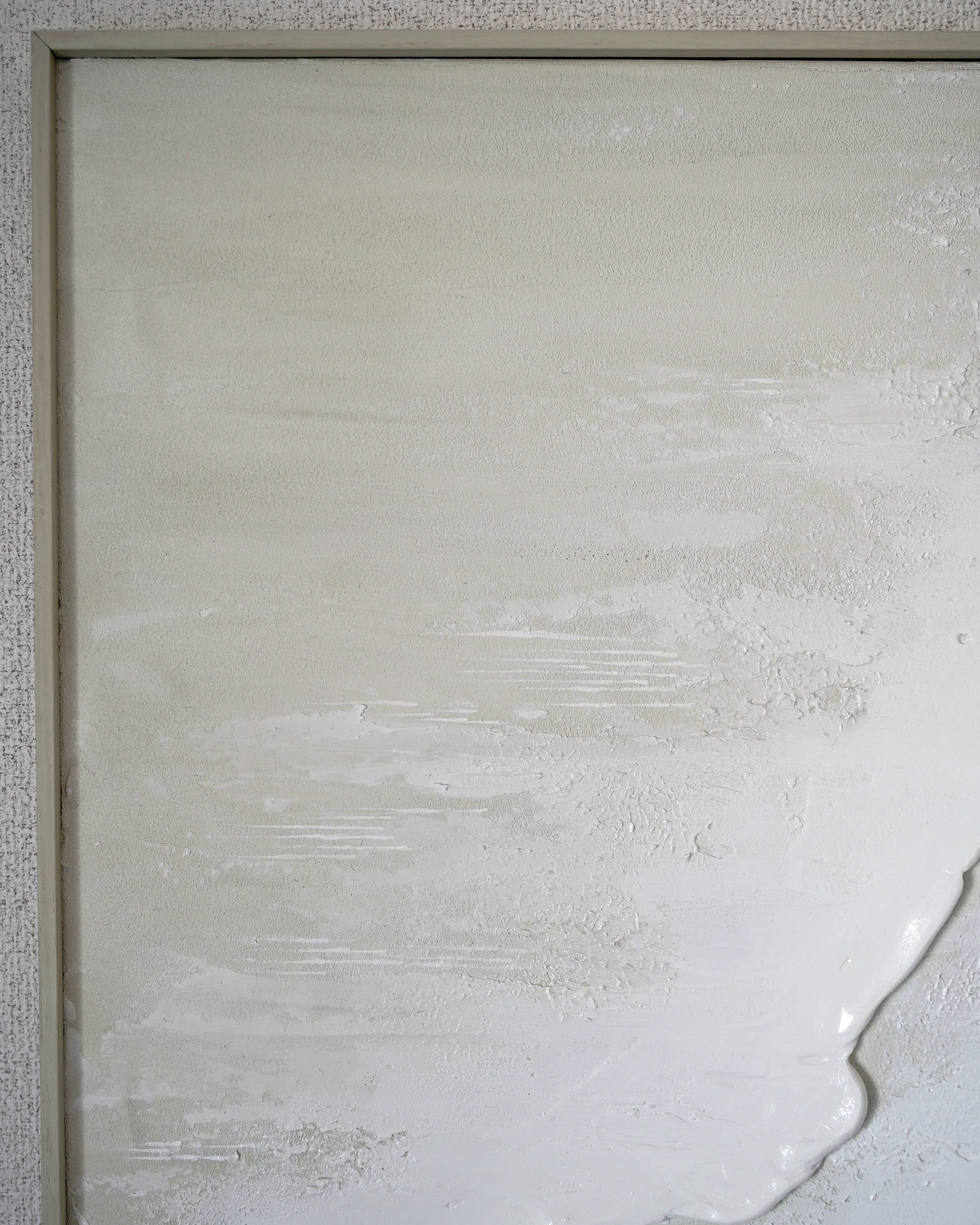 モデリングペーストを全体に使用して描きました。浜の部分はザラザラ、波の部分はぷっくりツヤツヤ。色のコントラストは控えめに、テクスチャーの変化で表現しています。