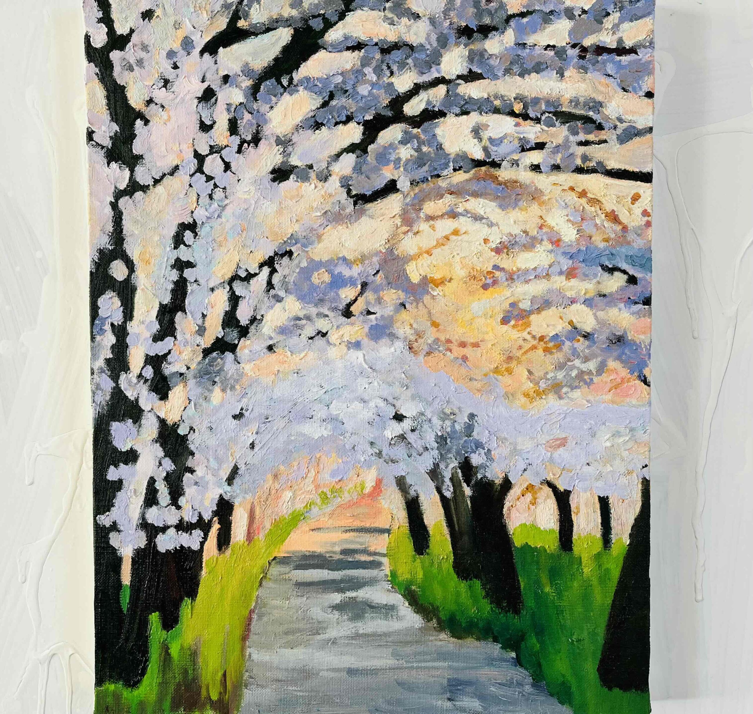 油彩画 「朝の桜 20262」|アート 絵画 原画 32×41cm F6 キャンバス