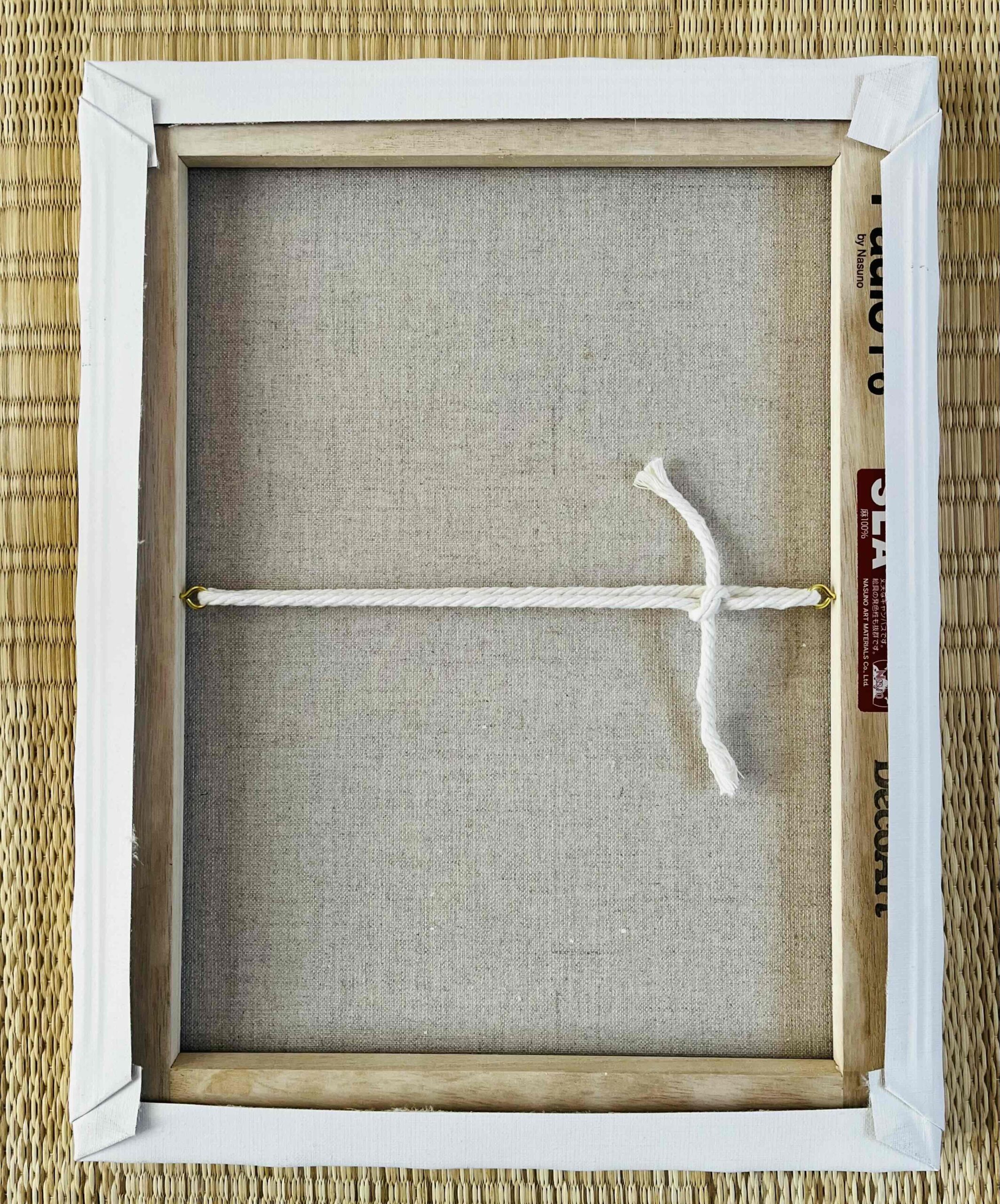 絵画の裏面には紐が取り付けてありますので、そのままでも飾れます。