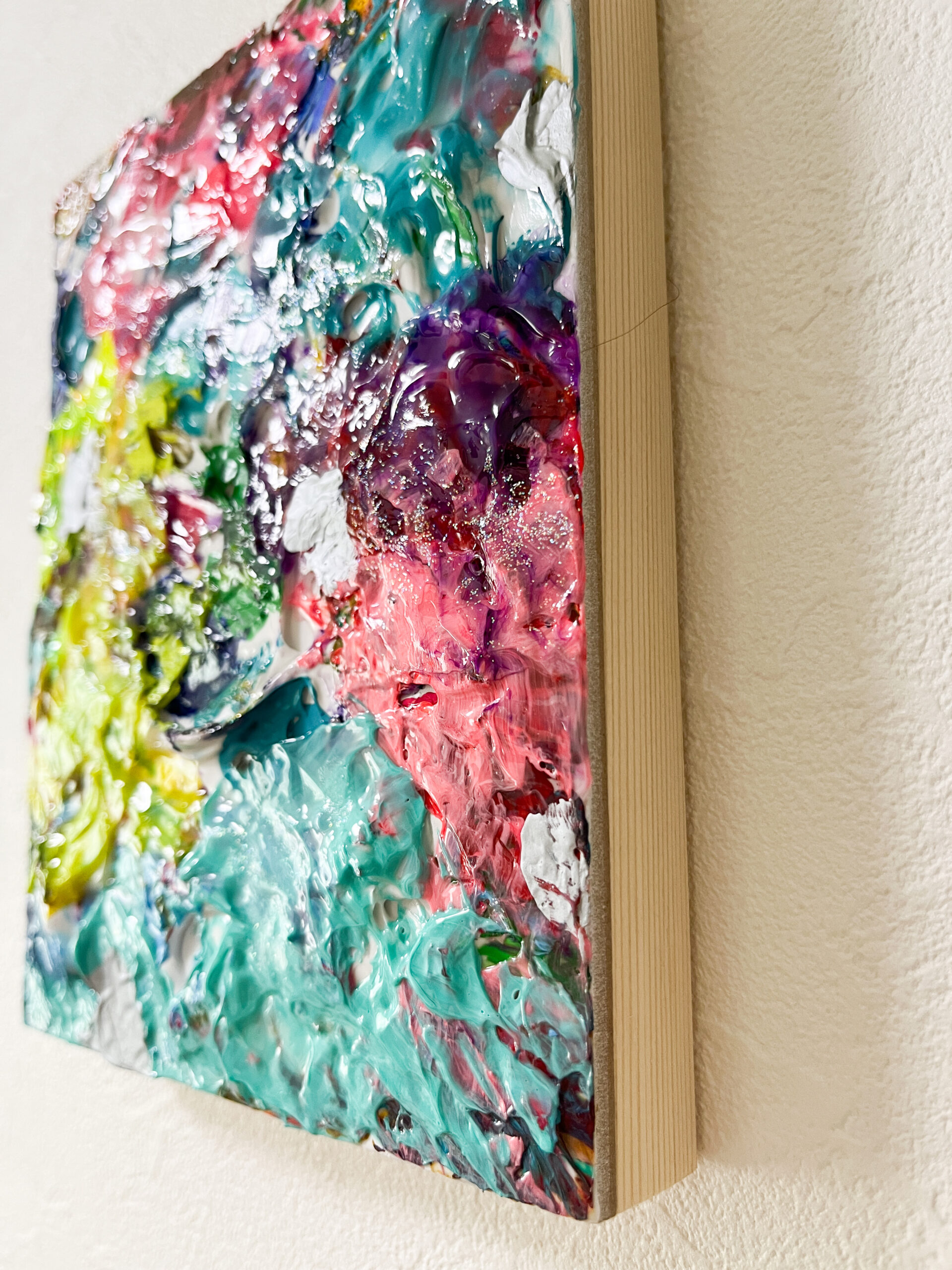 ジェルメディウムを使って、ぬるっとした質感のテクスチャーアートに仕上げました。