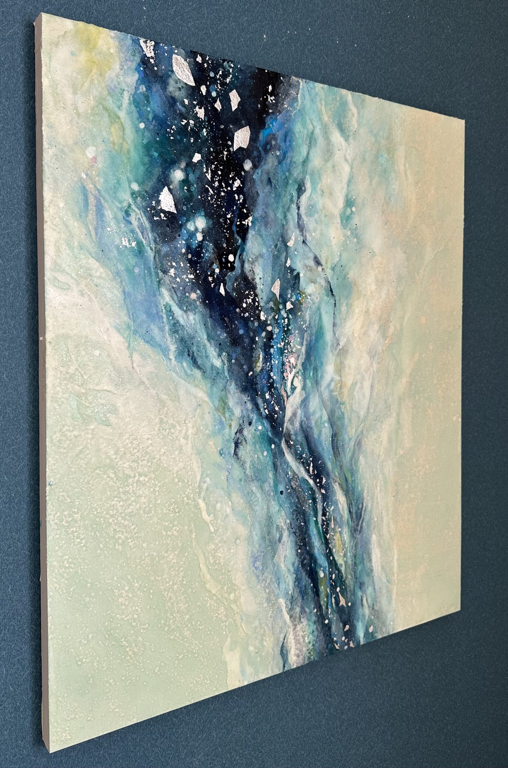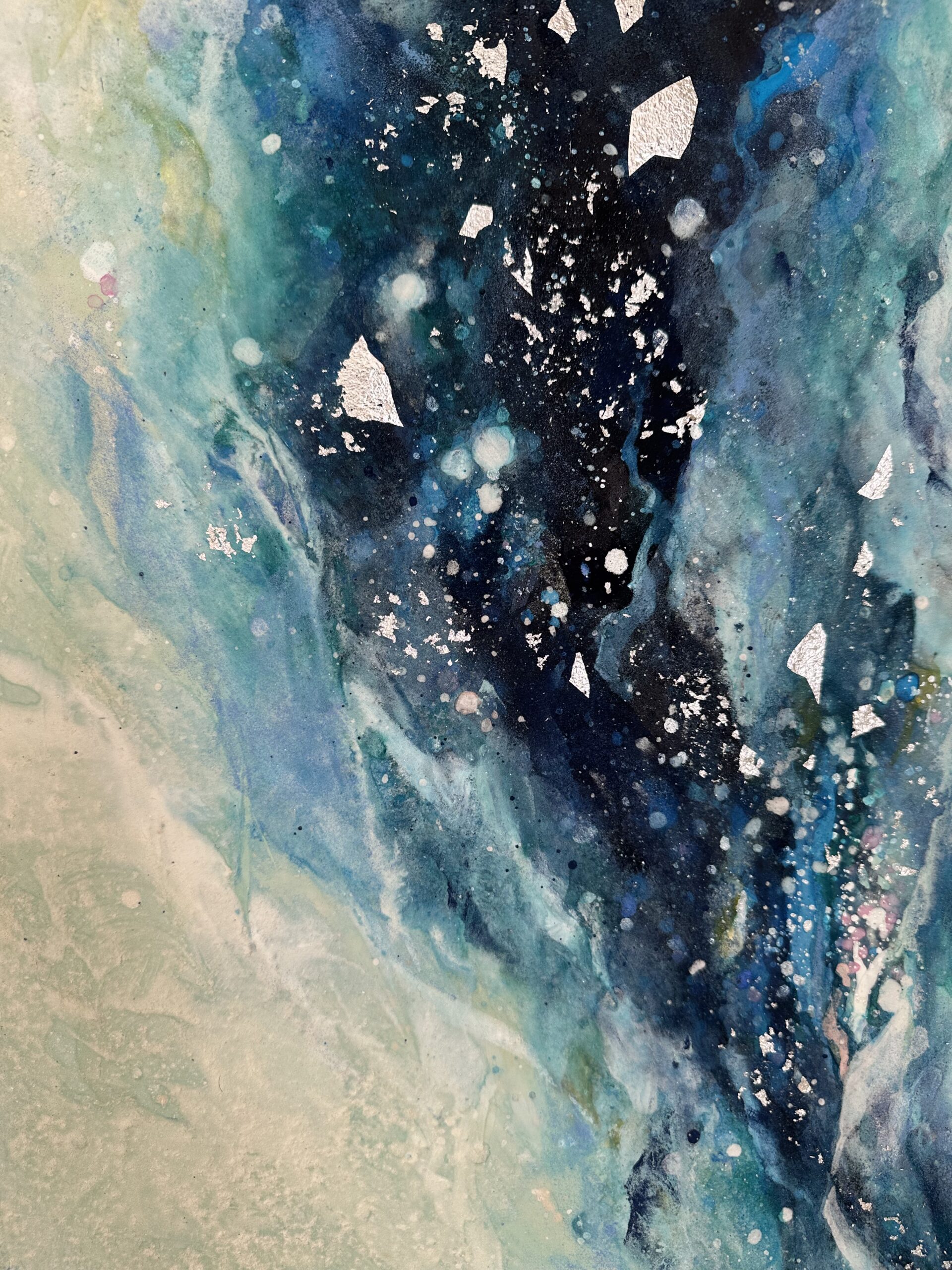 箔を使用した作品は、光のあたり方によって輝き方が変わります。日中の窓から入る自然光、夜の照明の光など、光の違いにより表情がかなり変わります。また、箔の変色を抑えるためのコーティングをしておりますが、時間経過とともに少しずつ色味が変化します。その変化もお楽しみいただけますと幸いです。