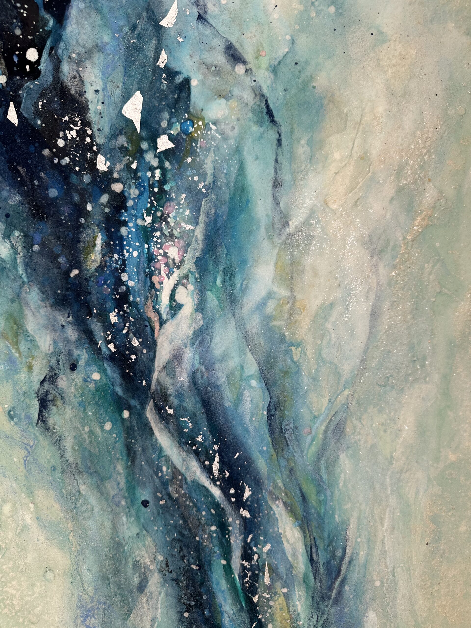 子どもの頃に畦道で摘んだ草花の色、鏡のような静かな海の色、名残惜しい夕日の色…。岩絵具の美しい色の粒子を使うことで、いろいろな色を表現できそうな気がして、日本画制作を始めました。