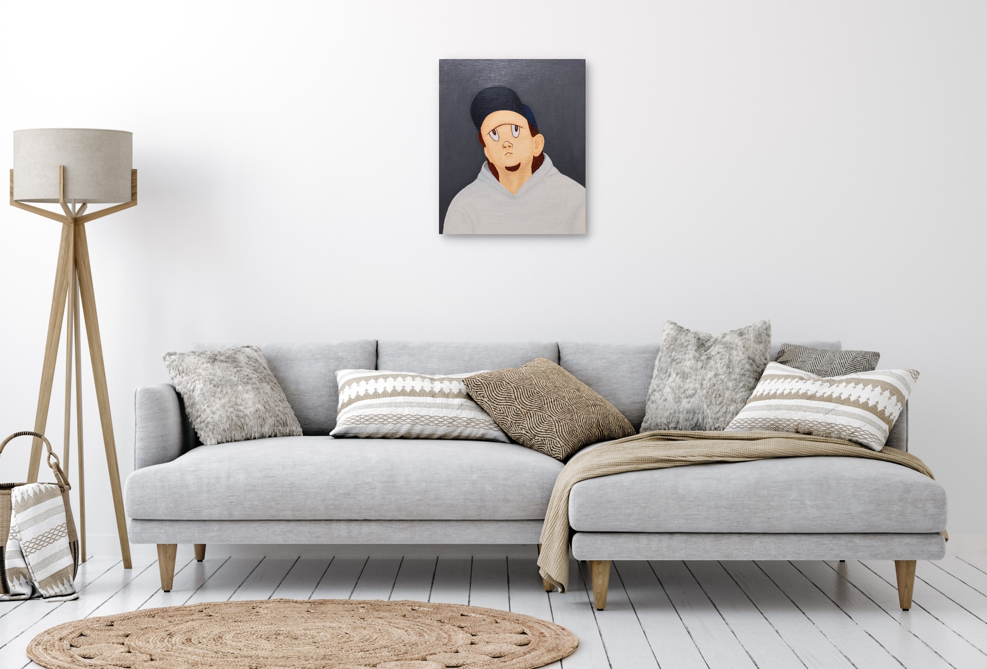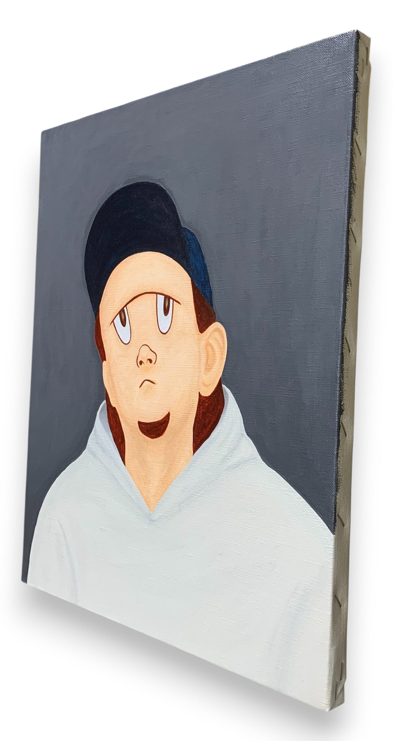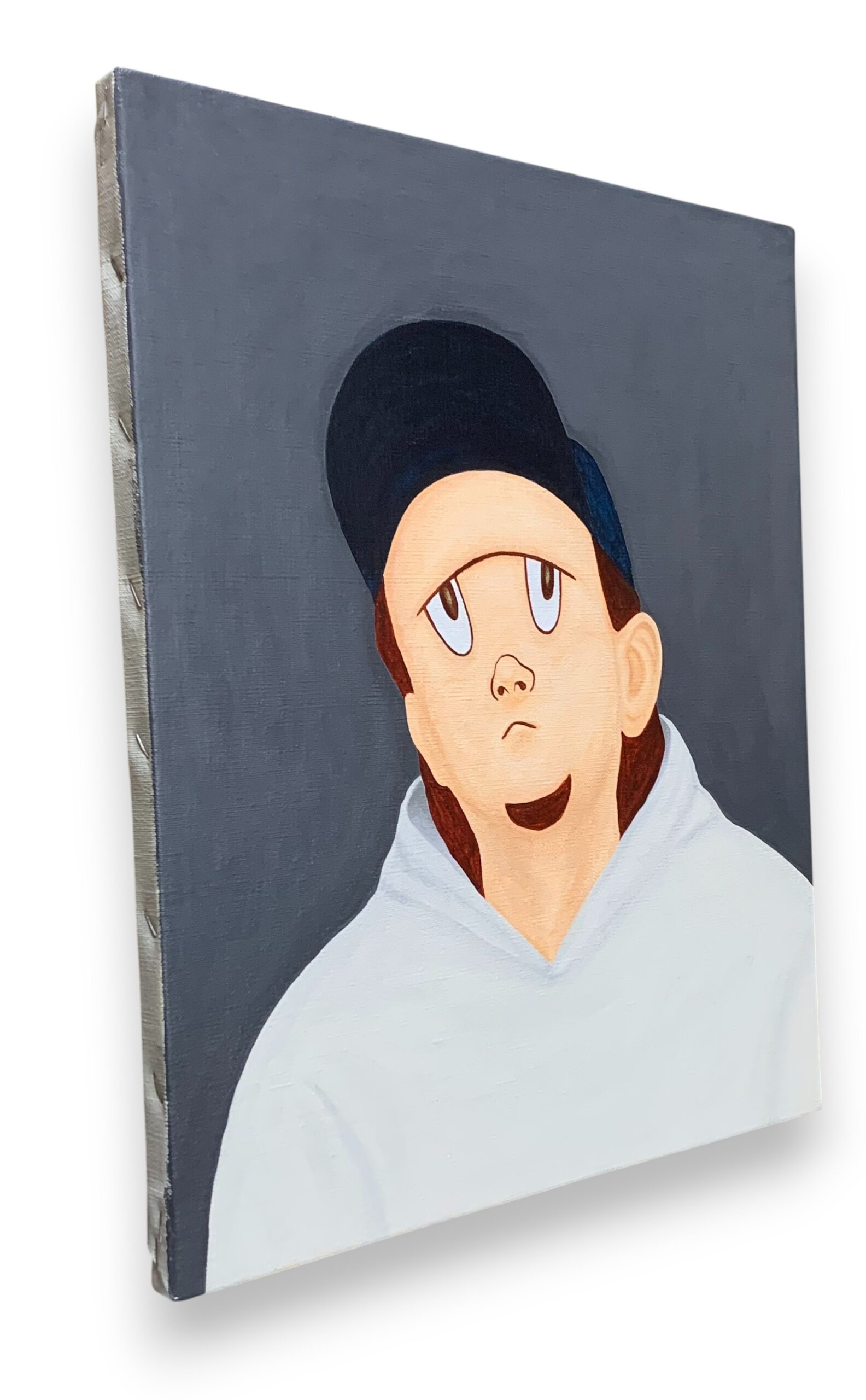 キャンバス側面はテープ(白色)で装飾し、裏面に吊り金具と吊り紐を取り付けてお送りいたします。