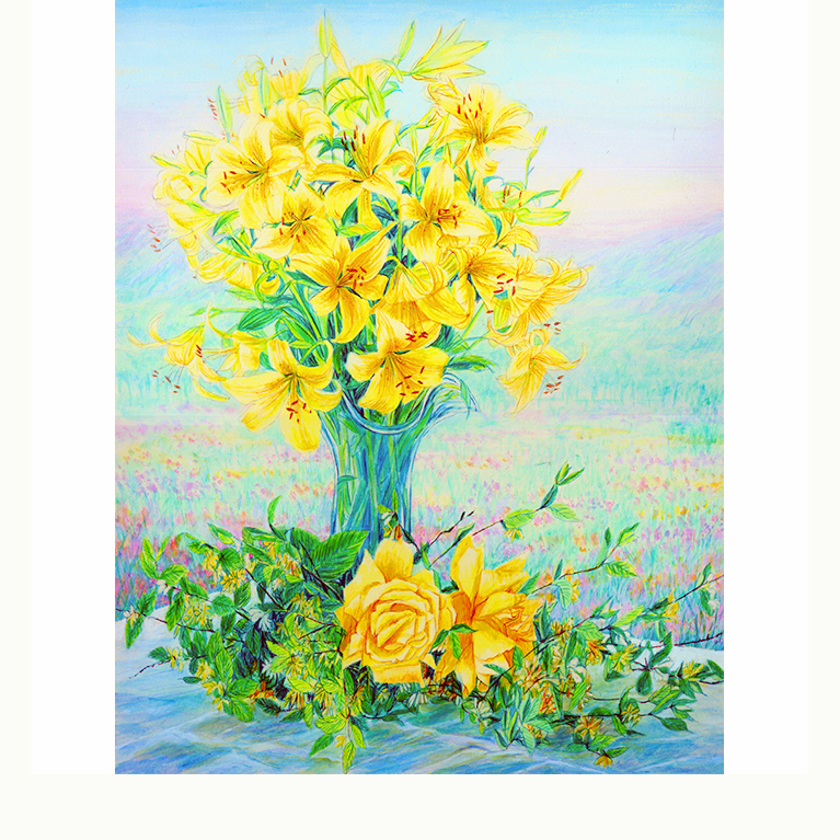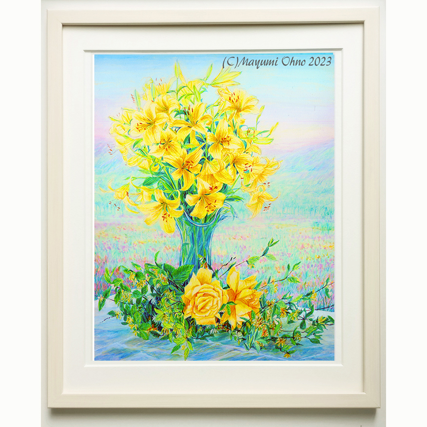 お部屋がパッと明るくなる輝くイエローの幸運のお花の絵です。 こちらは暗い廊下や 玄関を明るくしたいと思われて 購入される方もいらっしゃいます。