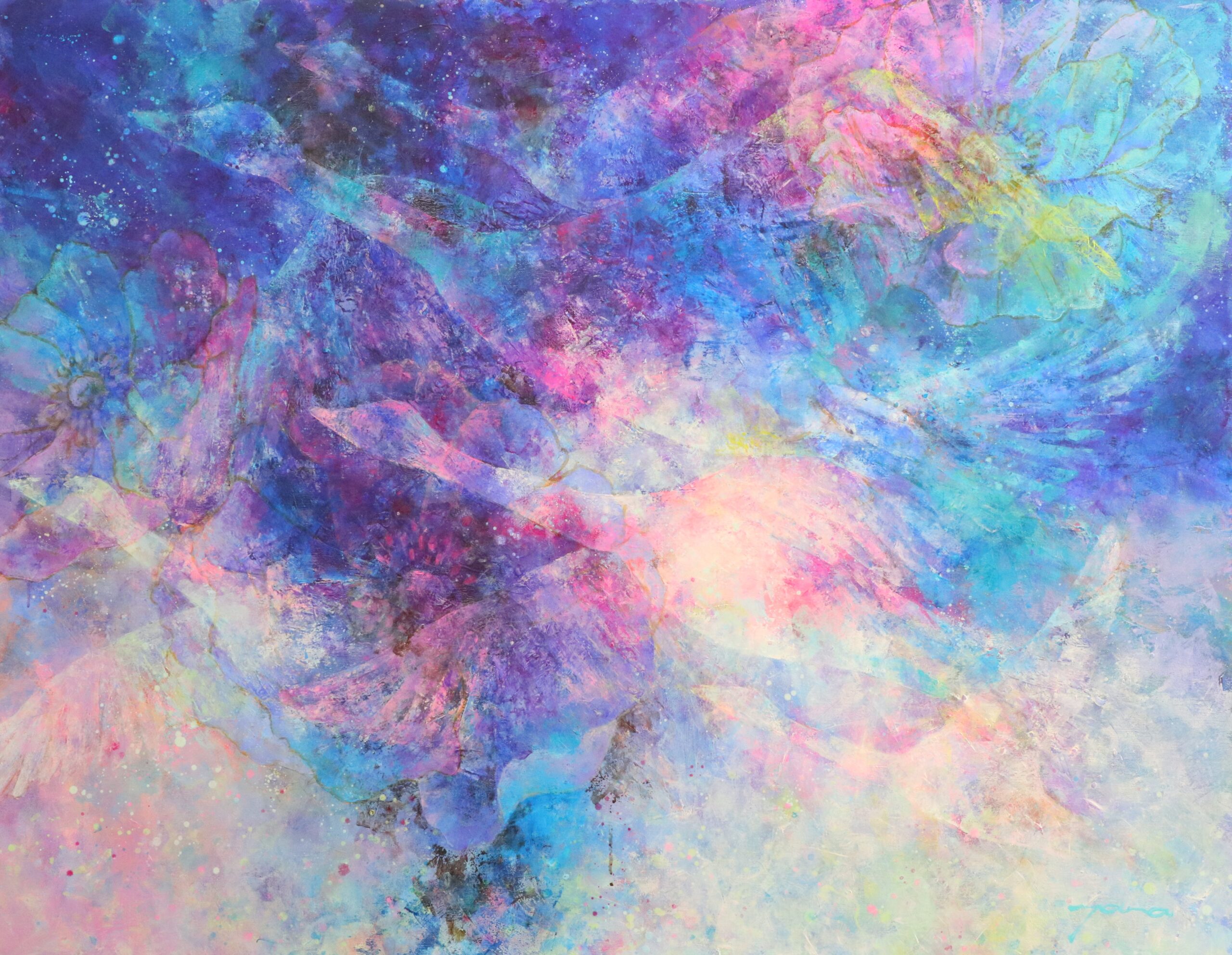 第53回新潟県芸術美術展に入選した作品です。秋の夜、100羽以上もの白鳥の飛来に遭遇し、その感動を表現しました。