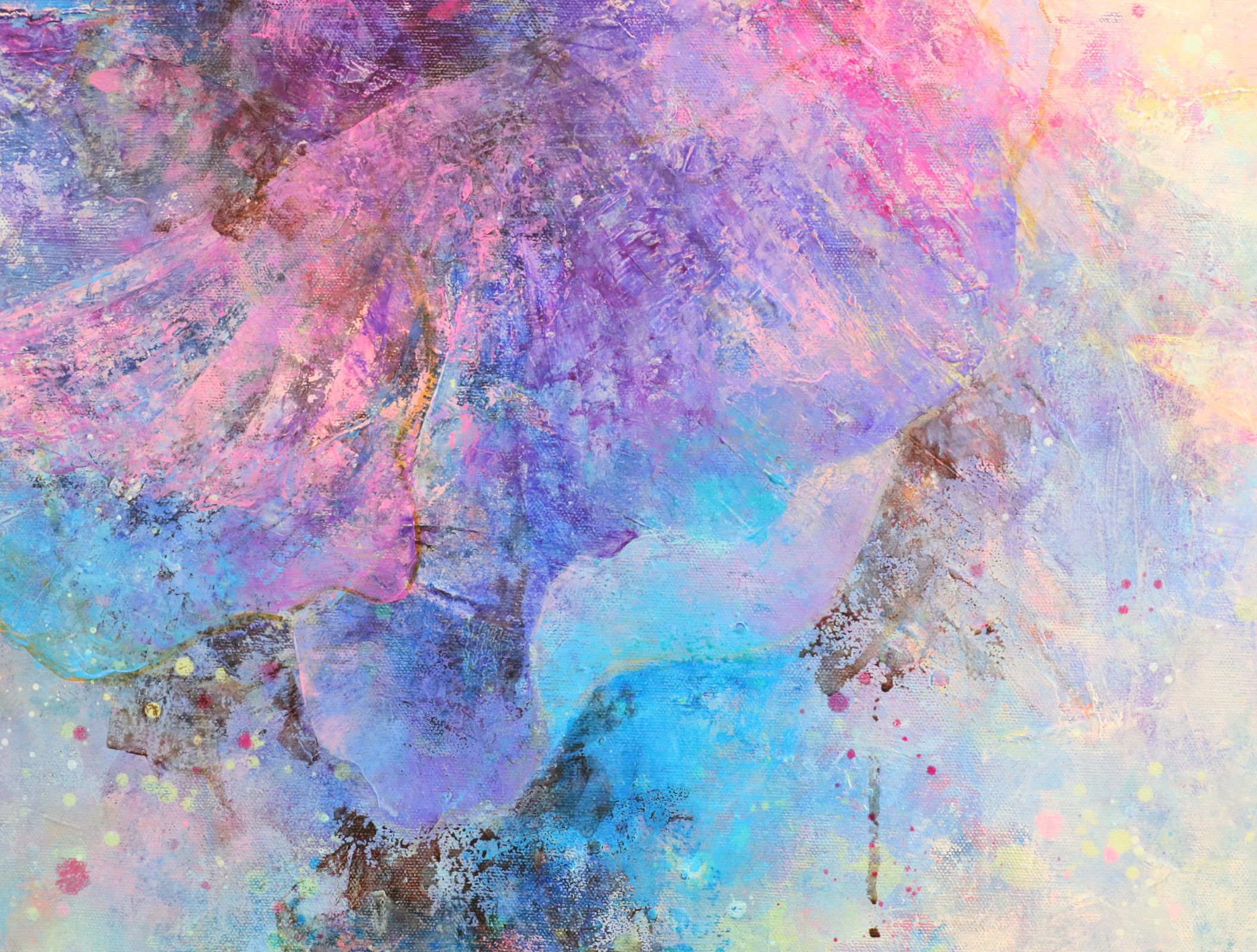 薄く溶いた油絵具を何層にも重ねて描きました。色の重なりの美しさを感じていただけたら、嬉しいです。