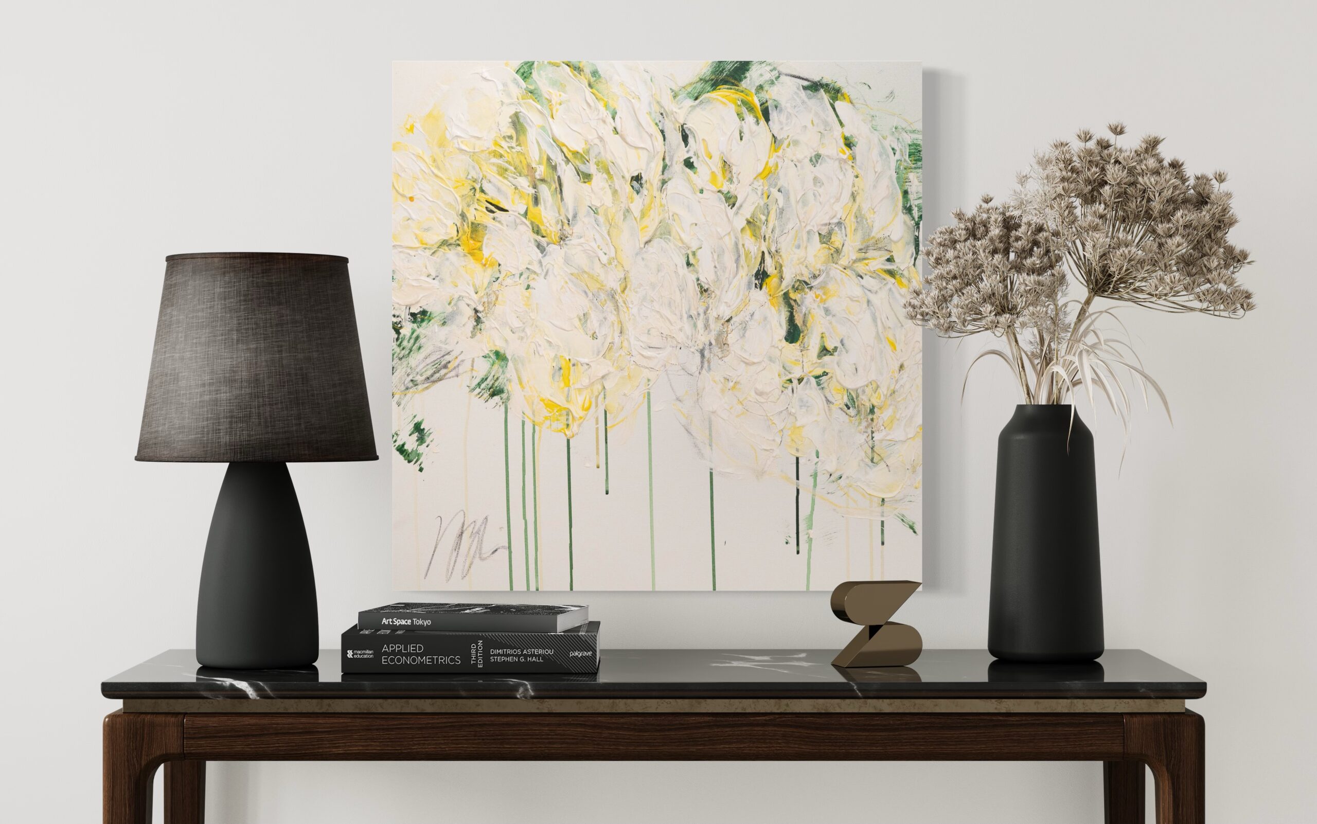 黄色い花を抽象的に美しく描いています。プレゼントとしても大変おすすめの作品になっています。