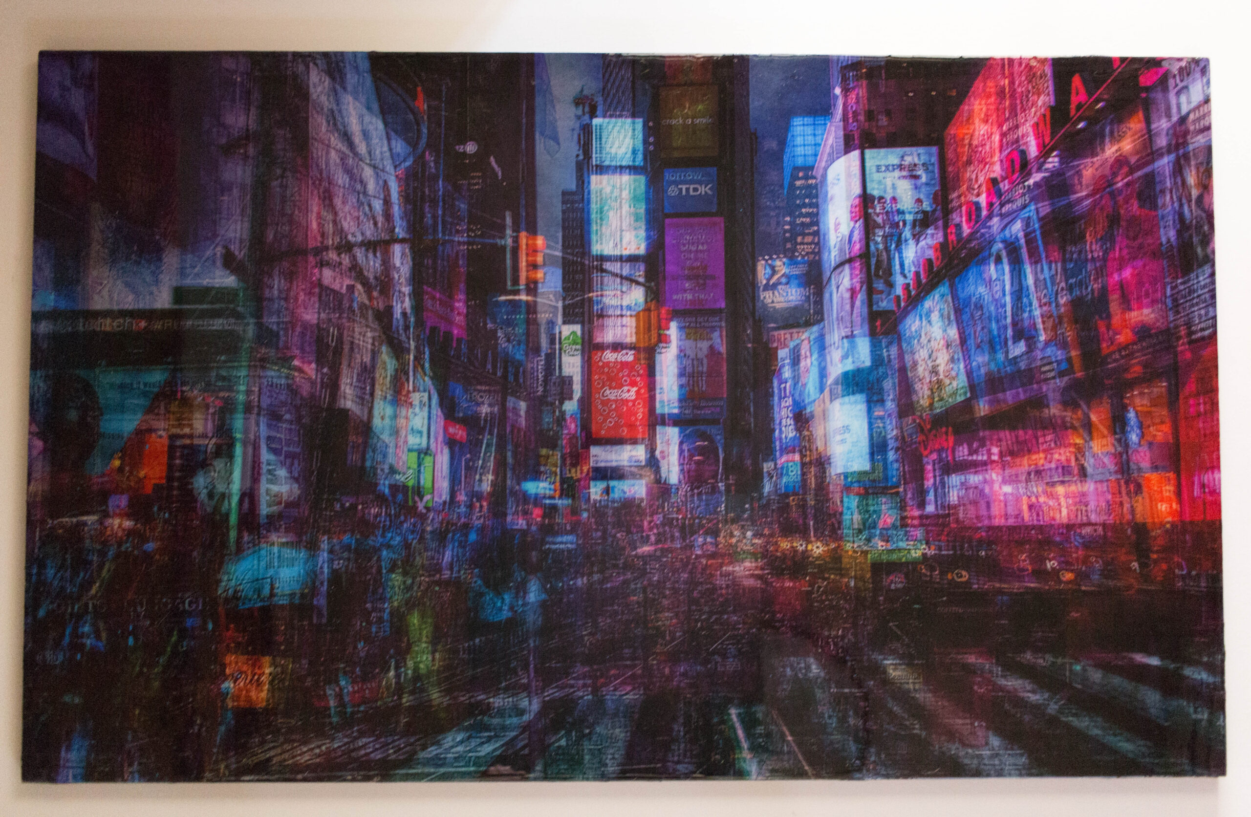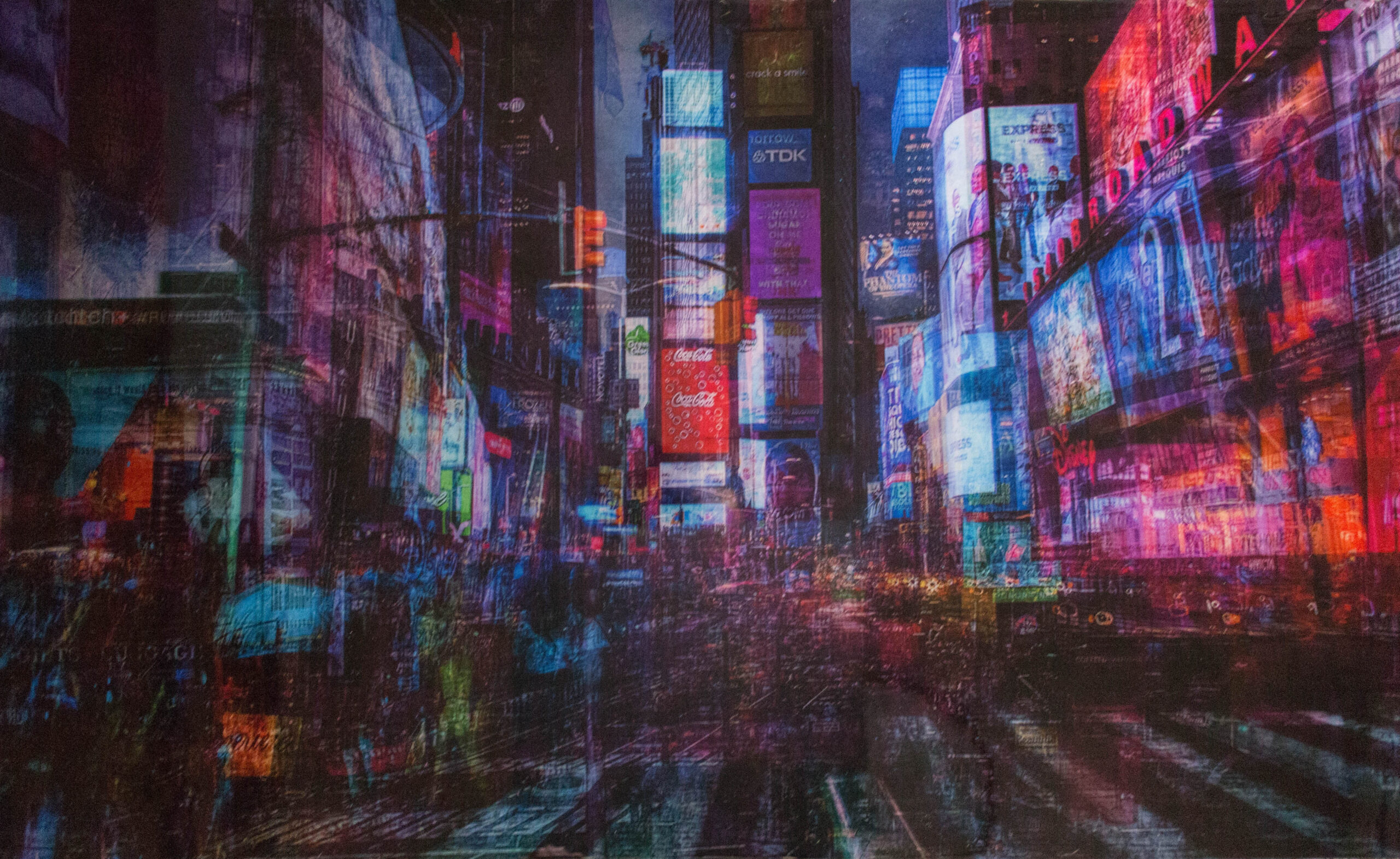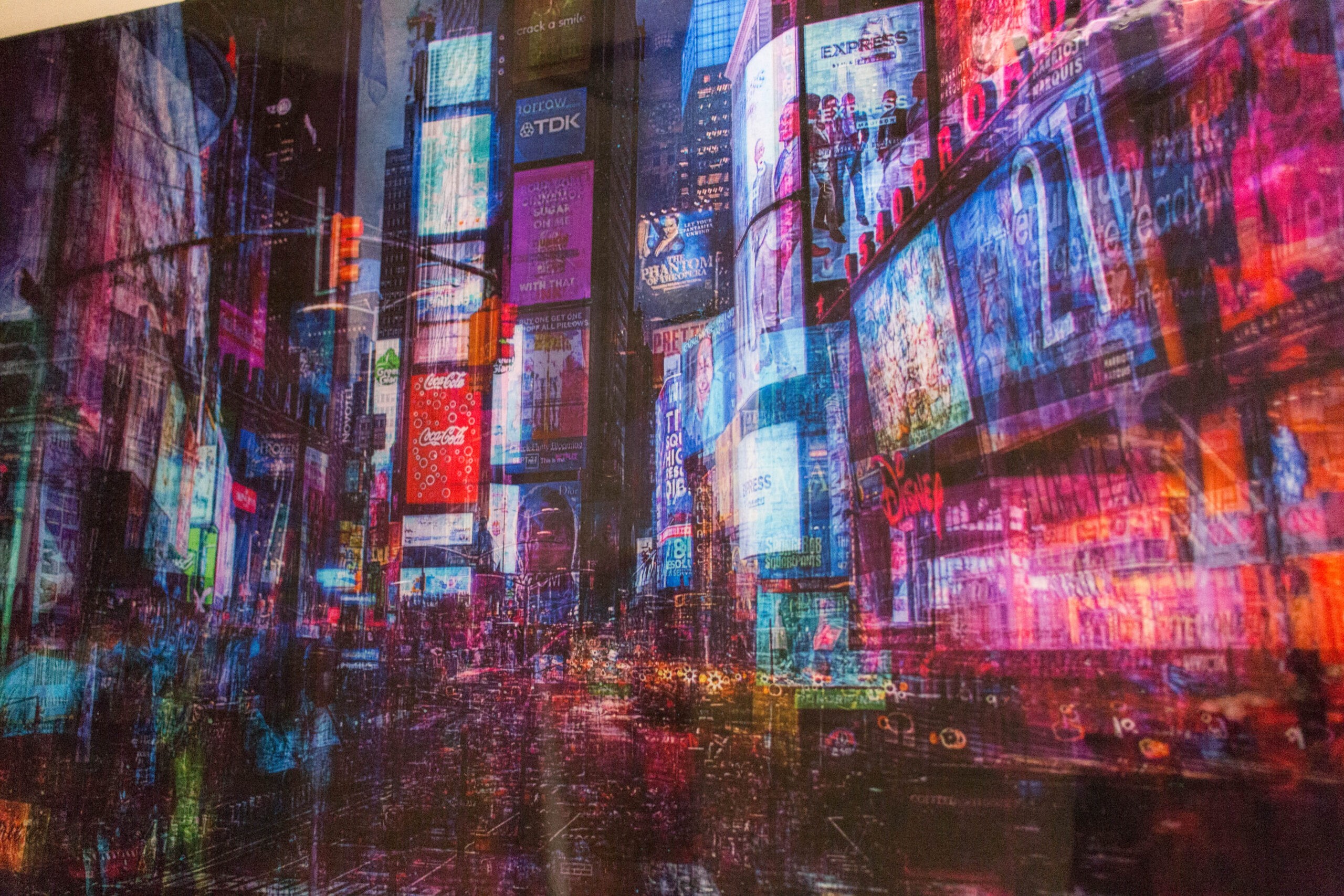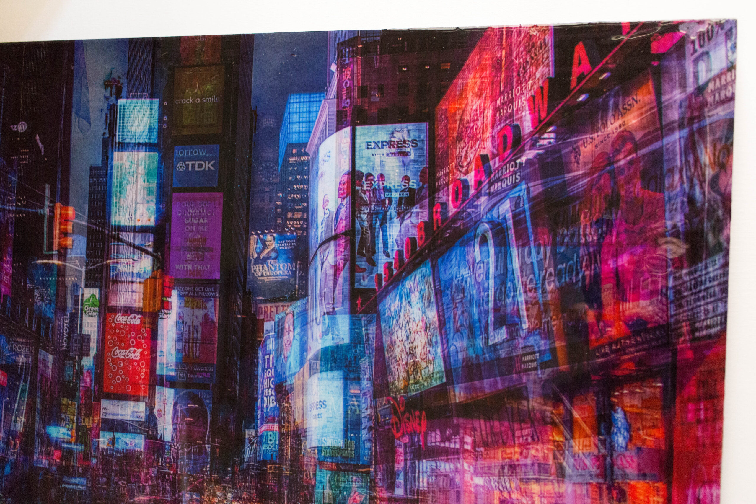 ニューヨークタイムズスクエアを幻想的な世界観でウッドパネルに直接表現した作品。色鮮やかにニューヨークの象徴タイムズスクエアが表現されており独特な雰囲気のある作品になっています。