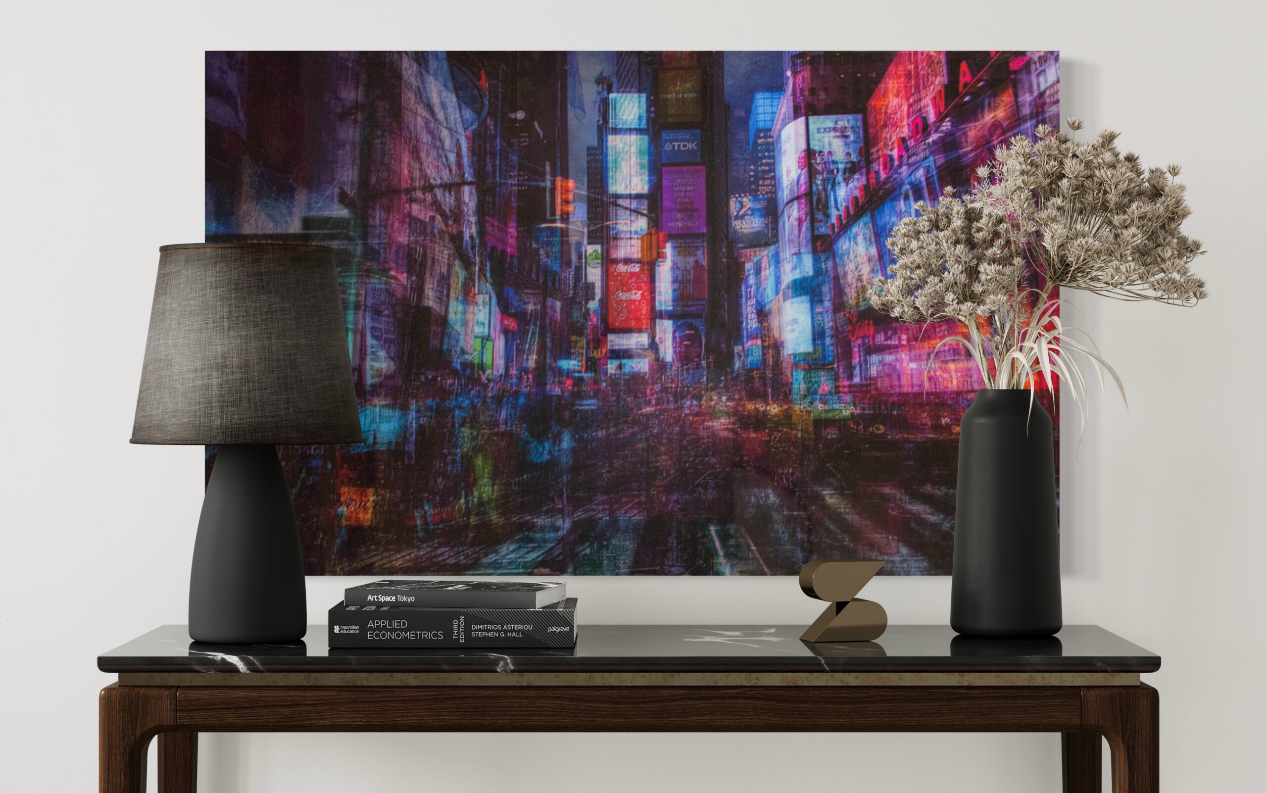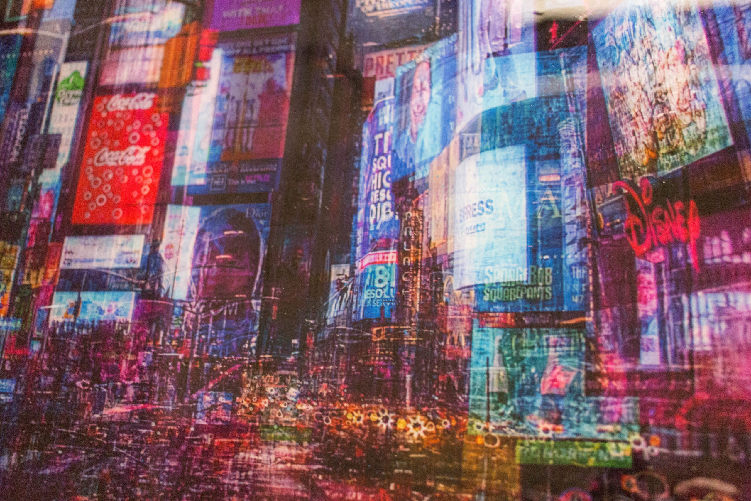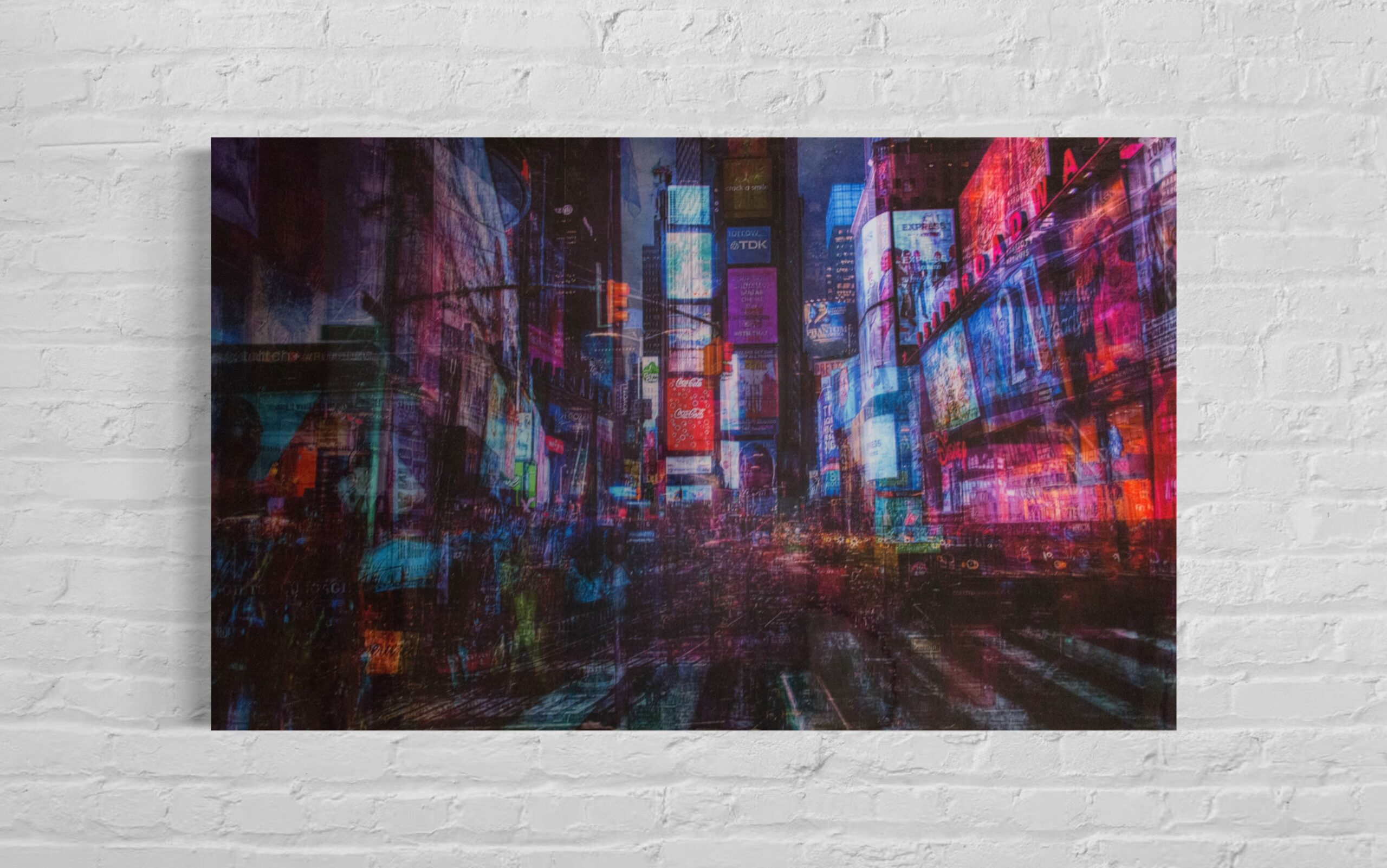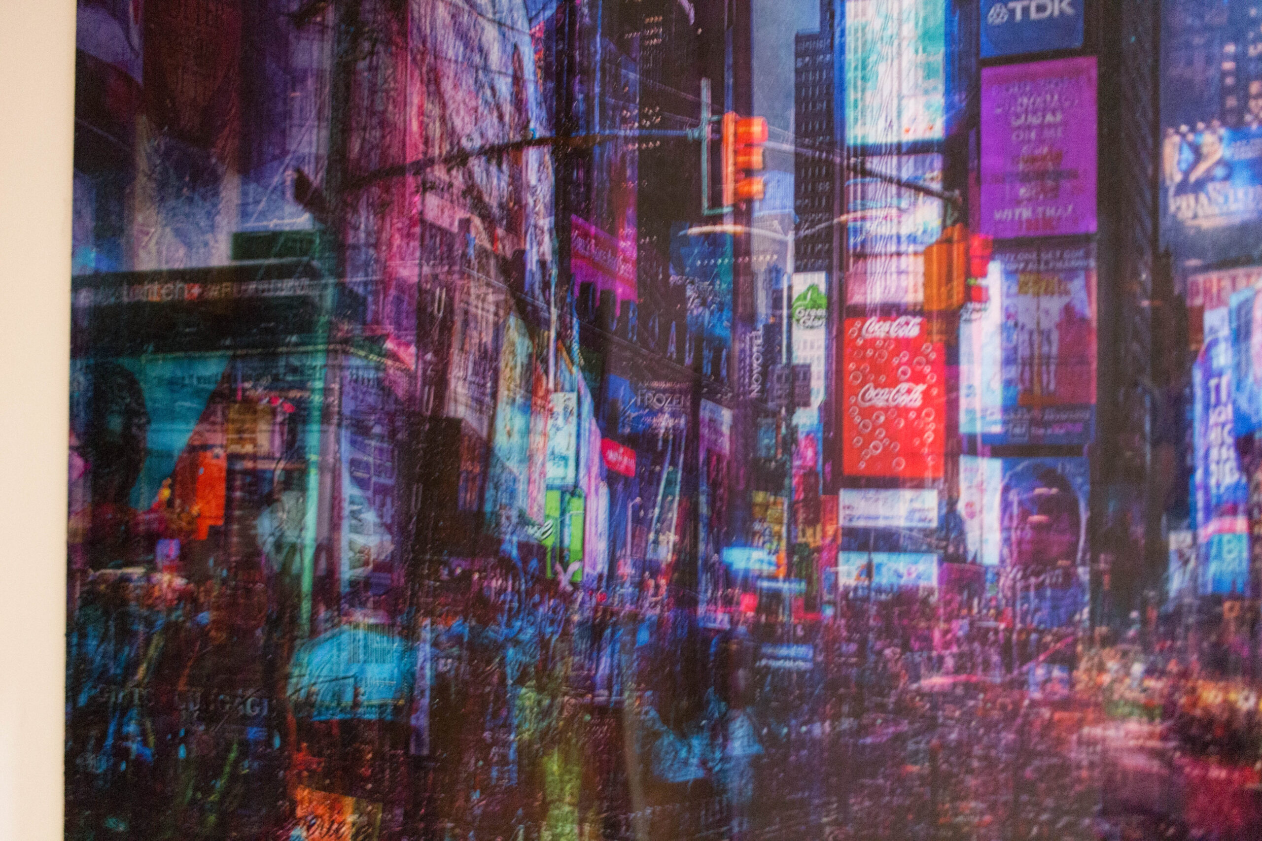 ニューヨークタイムズスクエアを幻想的な世界観でウッドパネルに直接表現した作品。色鮮やかにニューヨークの象徴タイムズスクエアが表現されており独特な雰囲気のある作品になっています。