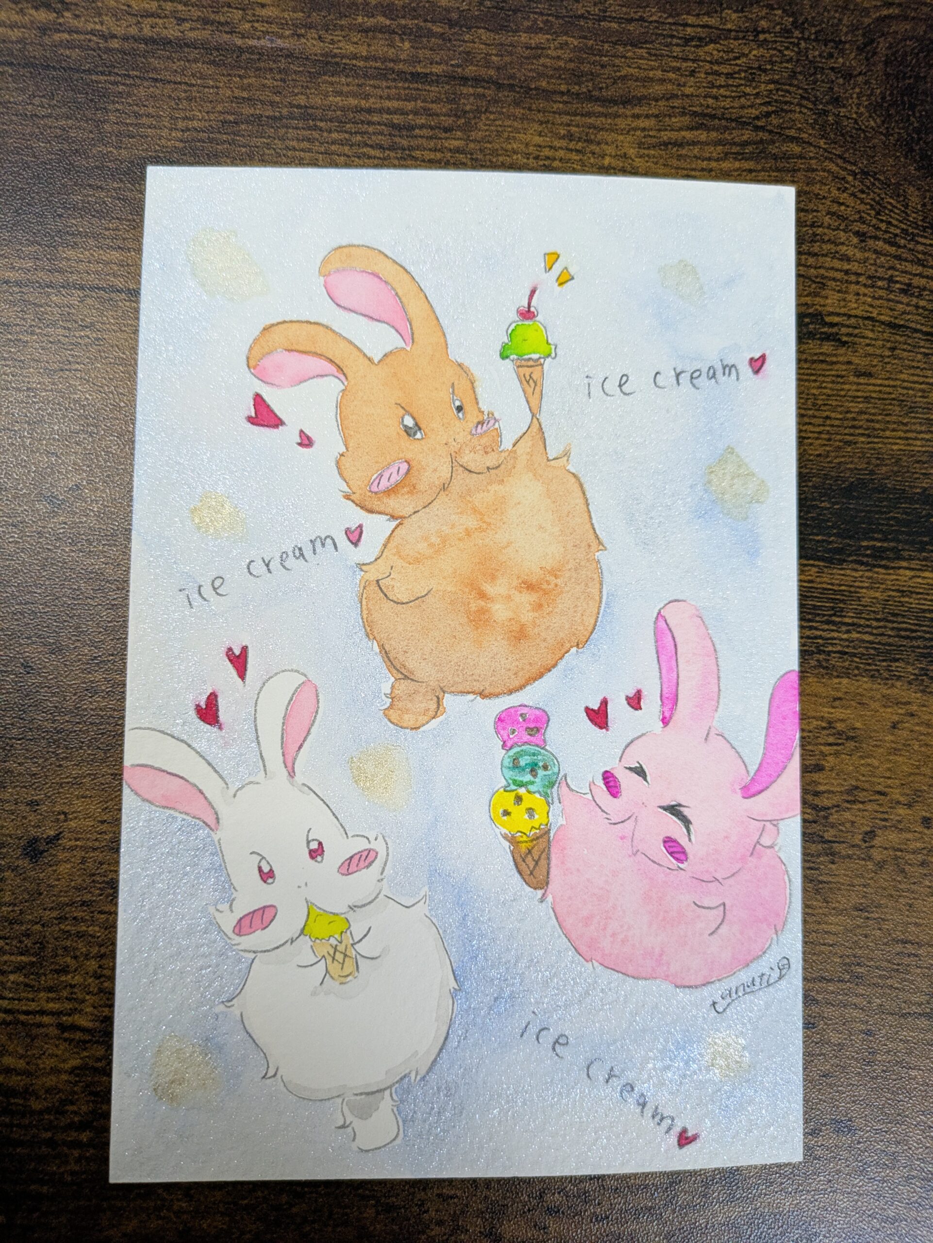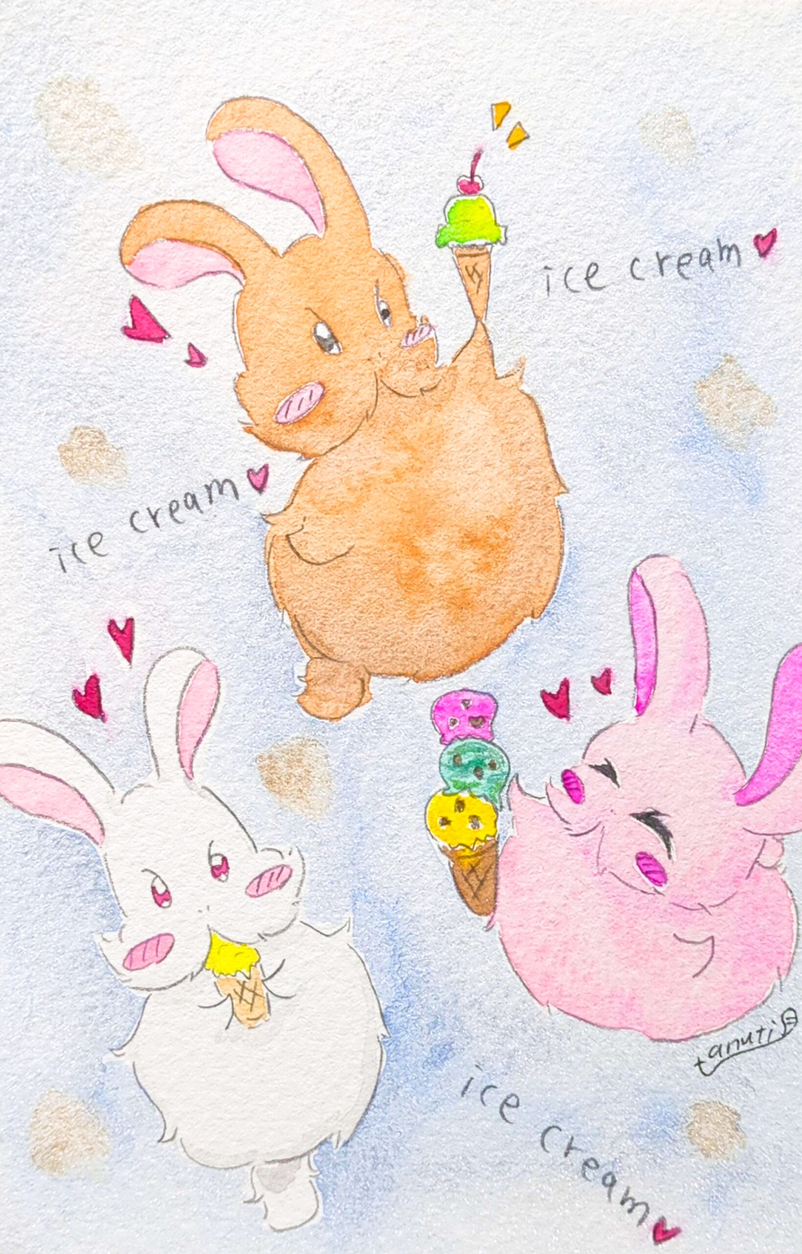 アイスクリームなうさぎのショコラとホイップといちごです!