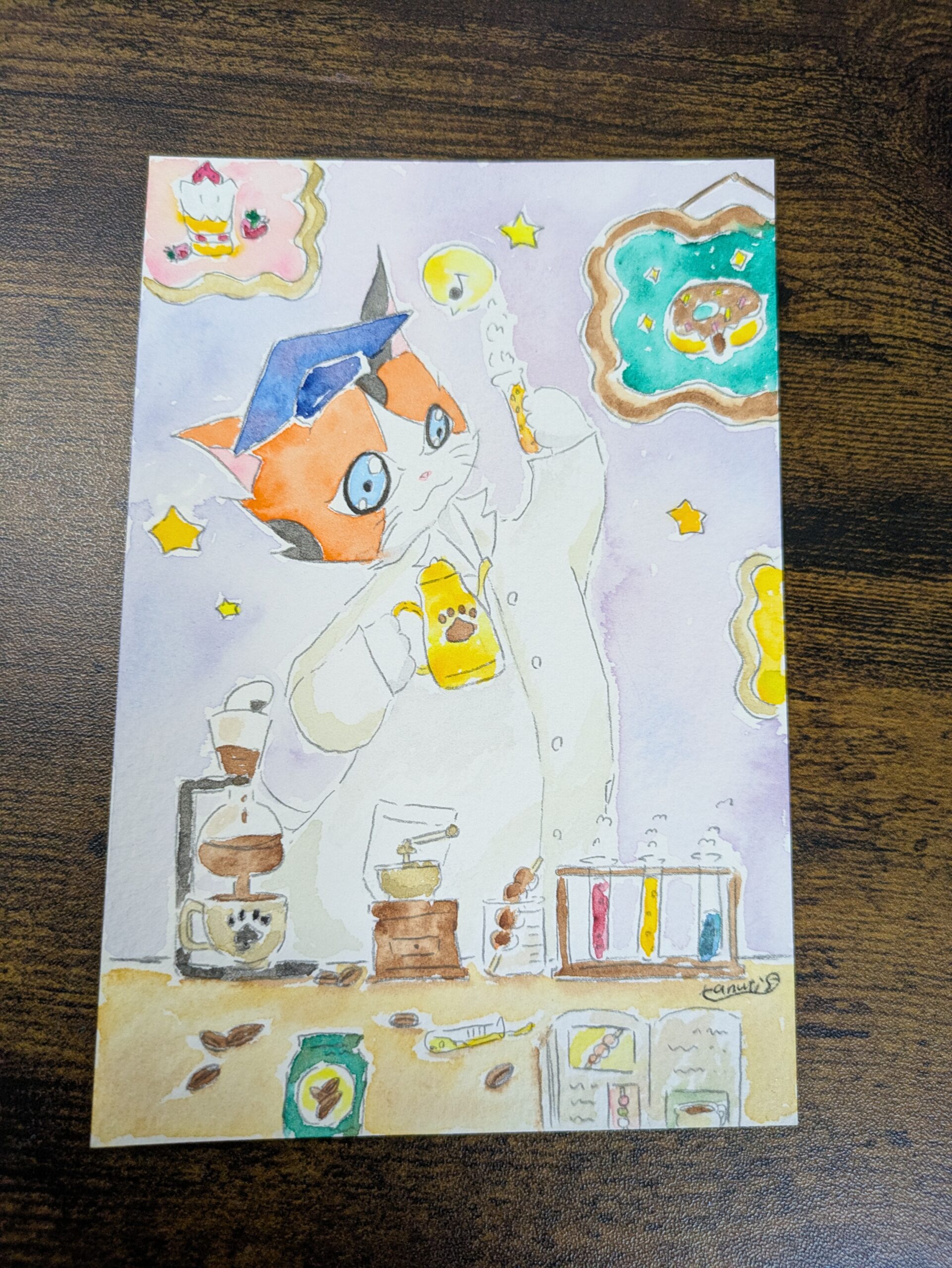 猫のミルクとくるみたちを描いています!