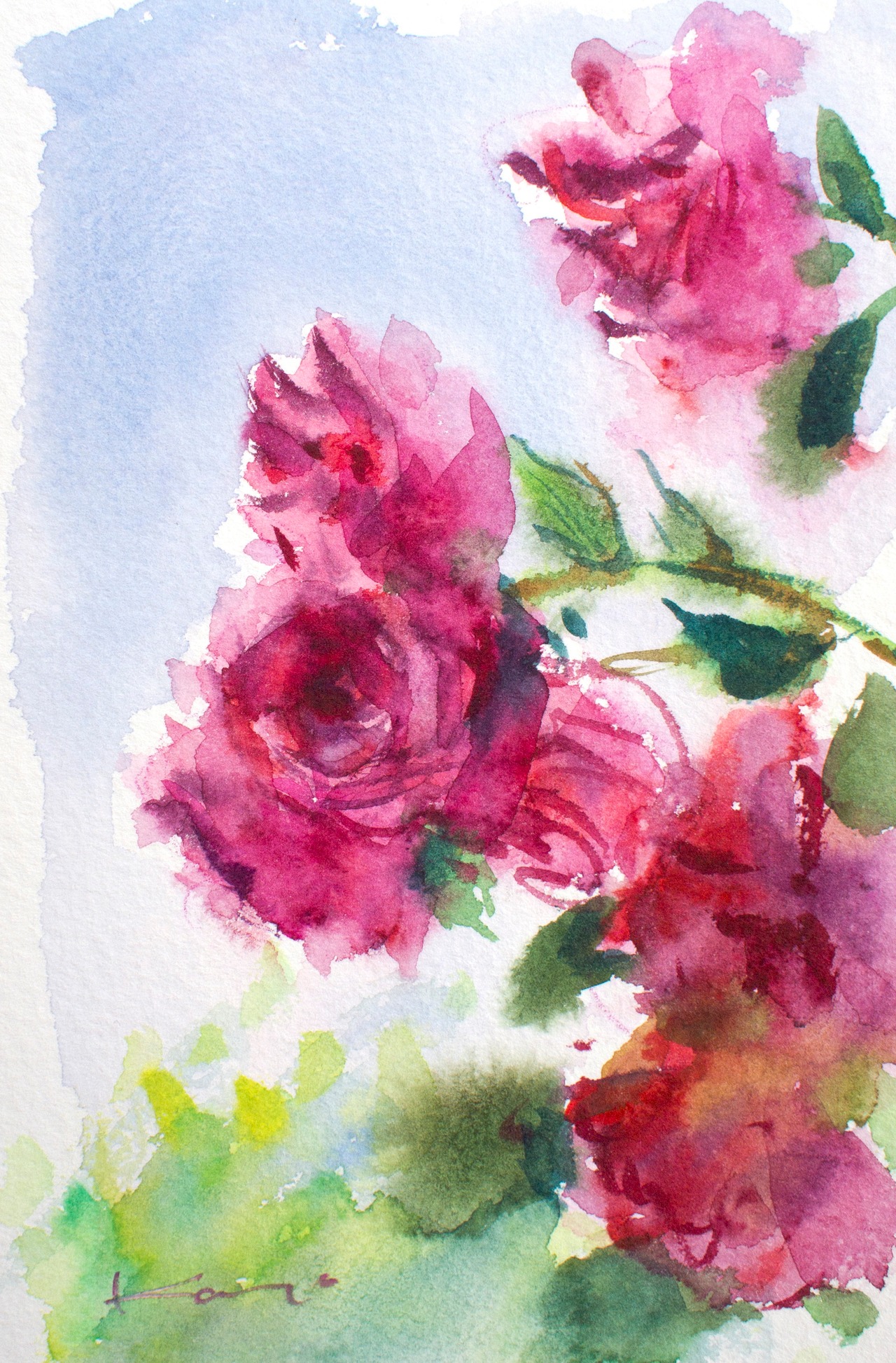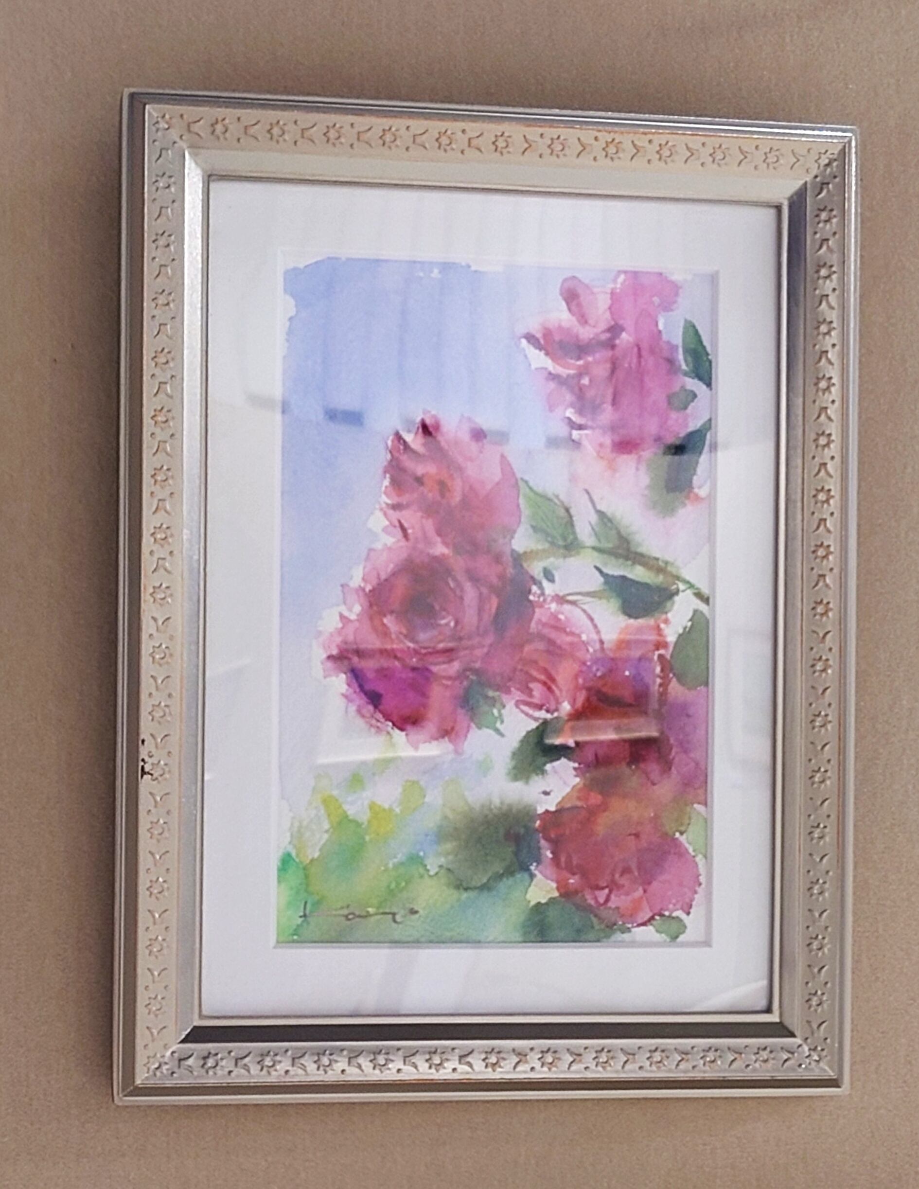 神代植物公園のバラ園でスケッチしました。ハガキサイズで、スタンドにもなるタイプの額です。