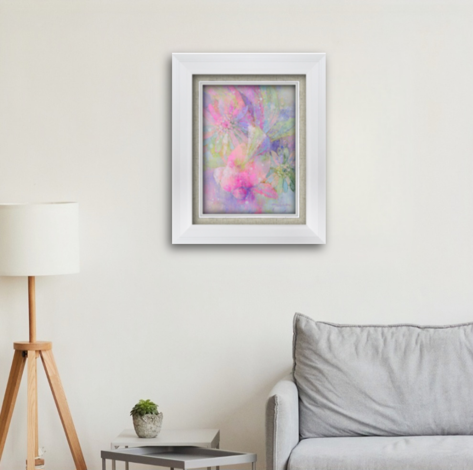 裏面にはひもがついており側面も塗ってありますので、額装なしでもすぐに飾っていただけます。