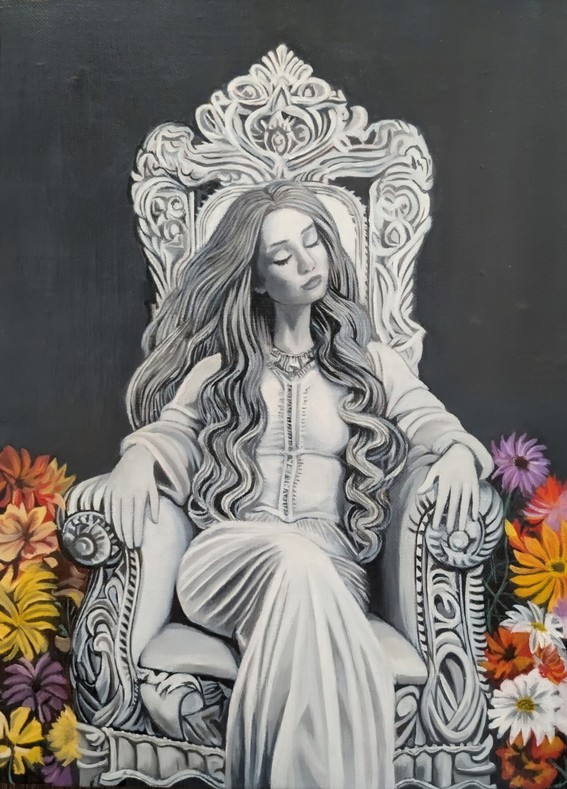 白亜の肌、王座に眠る貴婦人。精緻は姿は生前の面影を宿し、時を超え、静寂の中に佇む…。