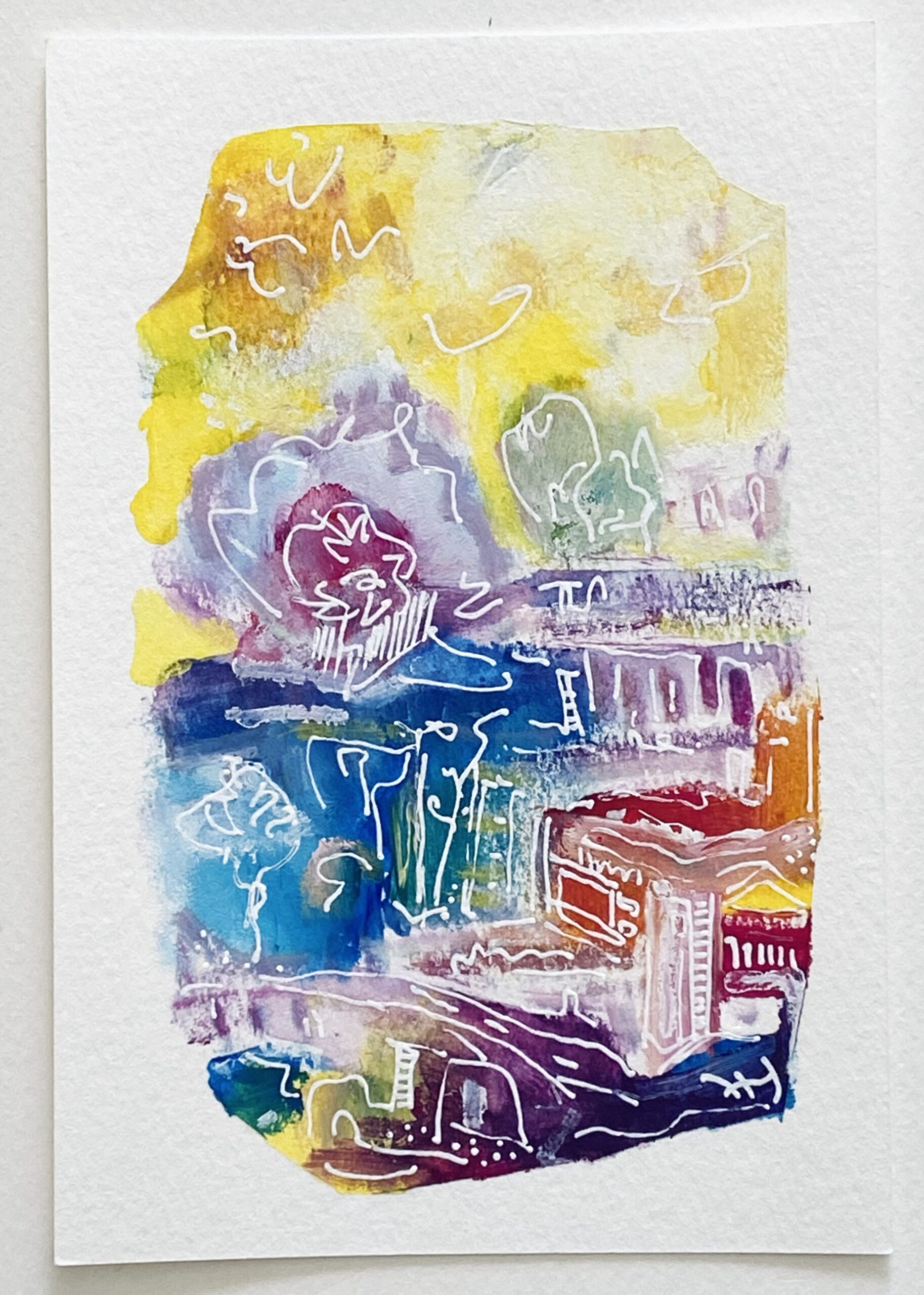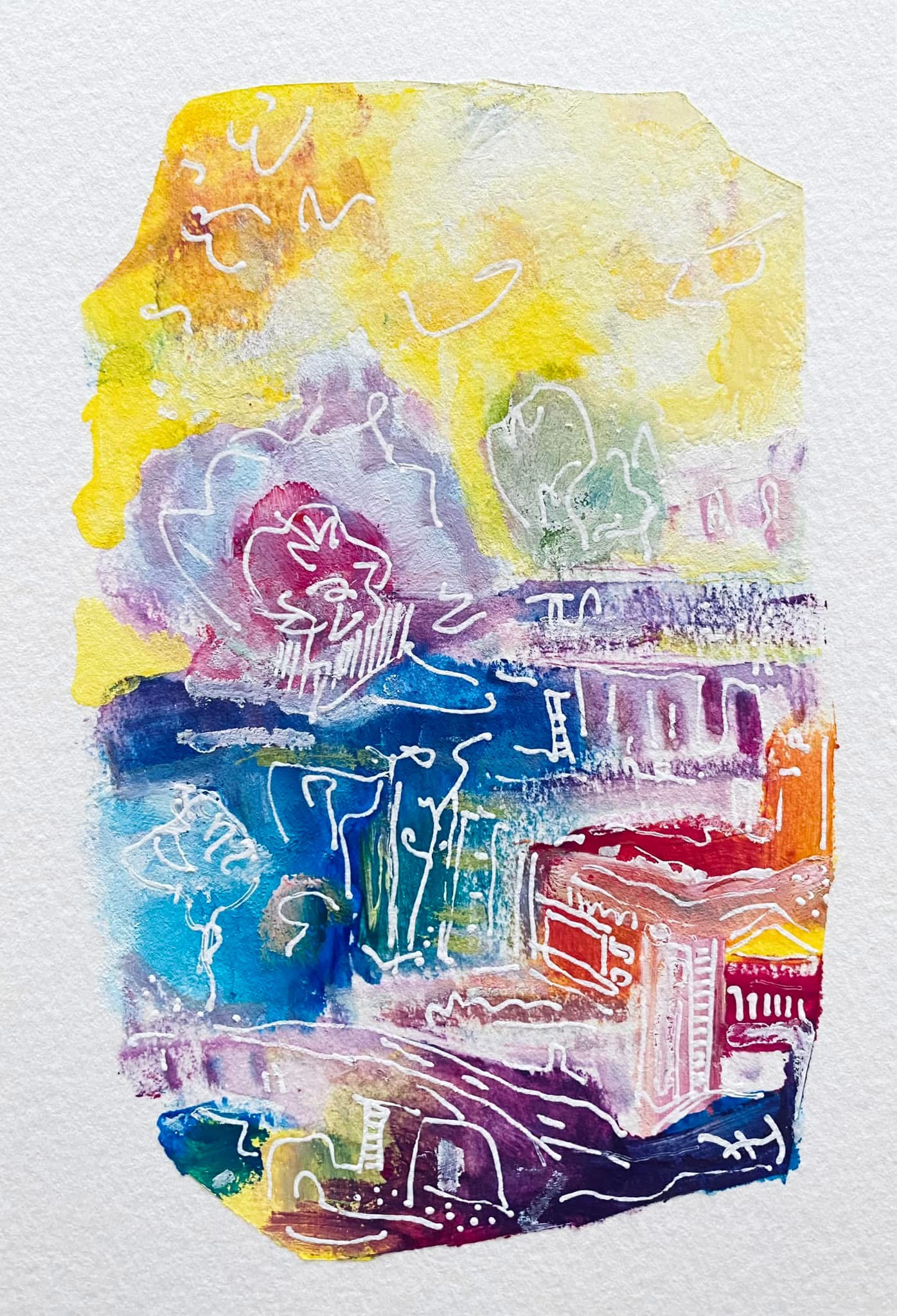 2008年 浮かんだイメージを付箋にボールペンでスケッチ。2012年になりそれをまとめたものを知人に見せたところサイズや画材をかえて絵画として発表することを勧められ、2013年、公募展にA4サイズのカードボードにペン・パステルで描いた作品を出品。その後アクリル絵具での創作をスタート。