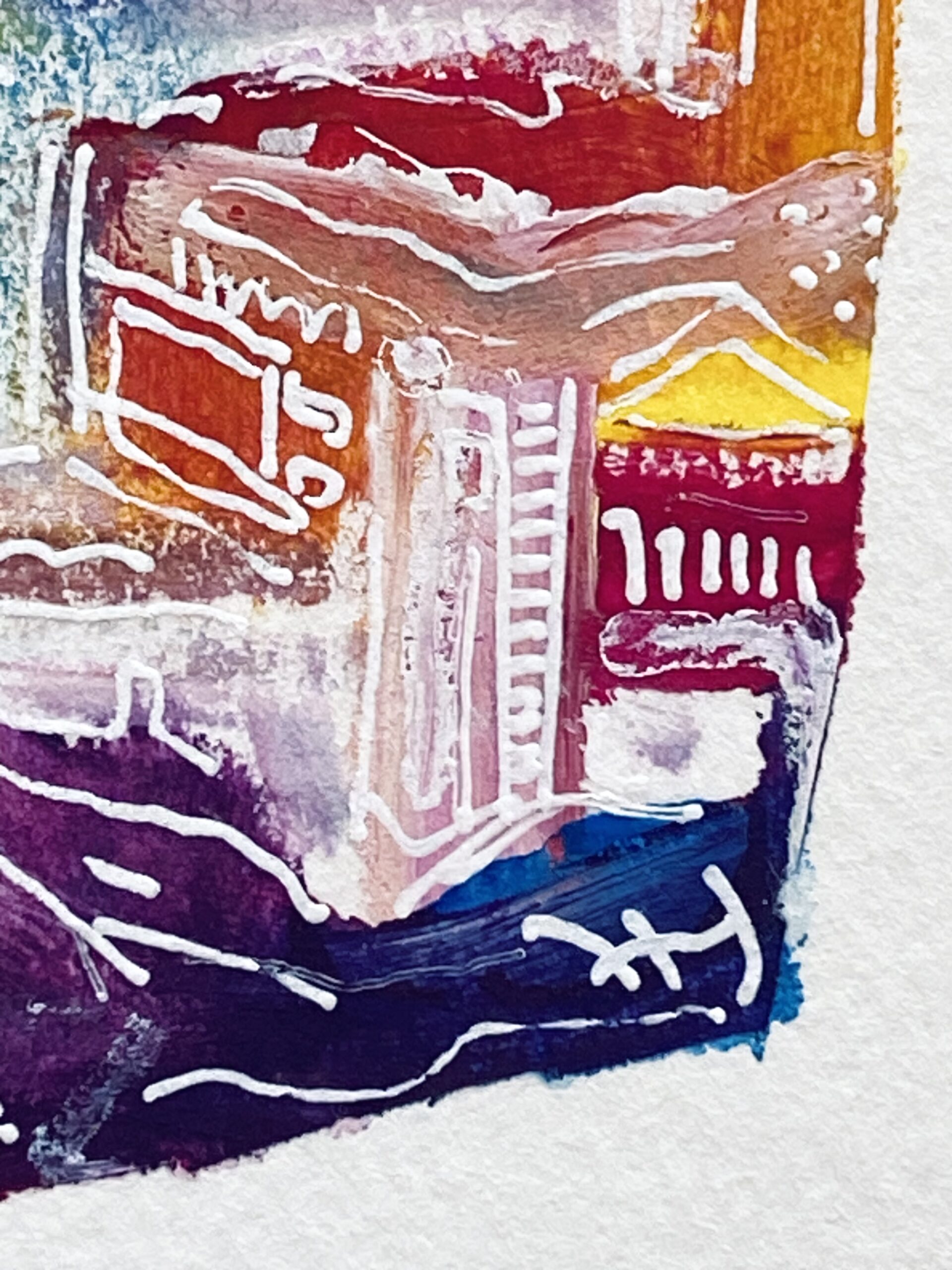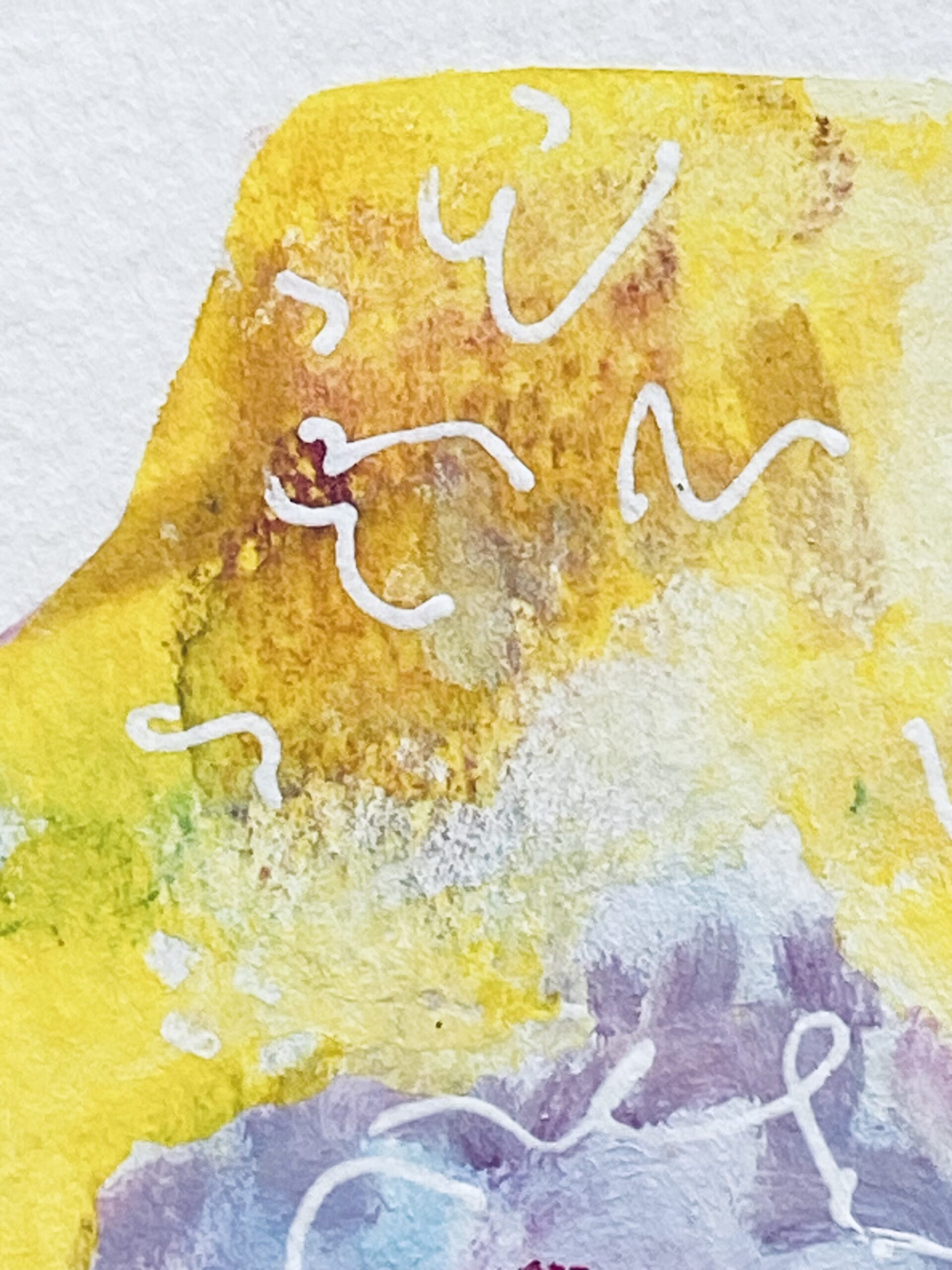 シリーズ作品を除き、タイトルは創作のはじめにあったものではなく、描き終えた時点で観る側となった私が名付けた「仮のタイトル」です。参考にするのも、答え合わせのように楽しむのも、あるいはまったく無視するのも自由です。抽象表現の色や形に意味を見出す手がかりは、あなたの記憶や経験のなかにしかありません。最終的な作品は観るかたの中で完成すべきものだと考えています。思い思いに想像の翼を羽ばたかせ、作品に新しい解釈を加えていただくことを望みます。