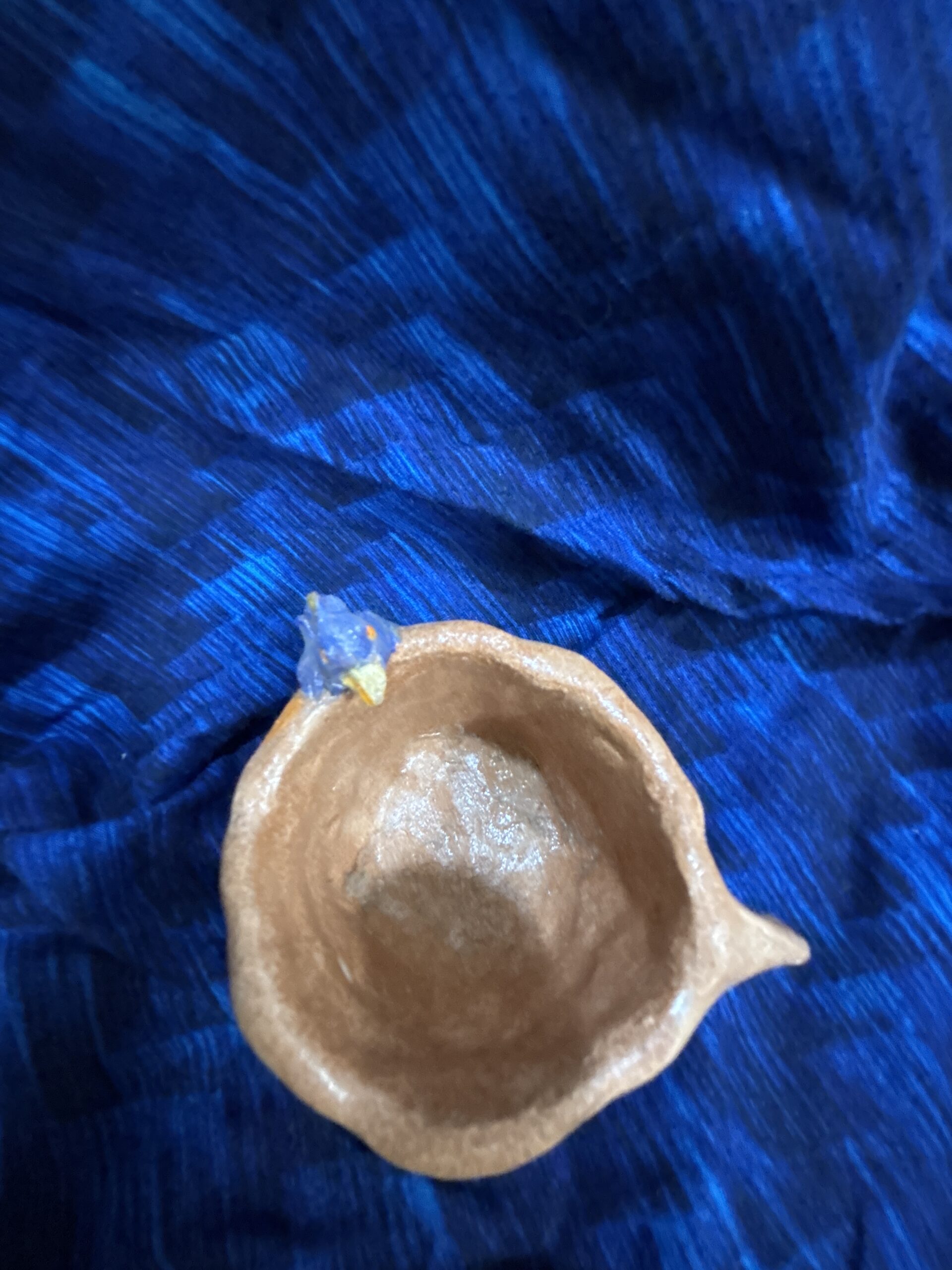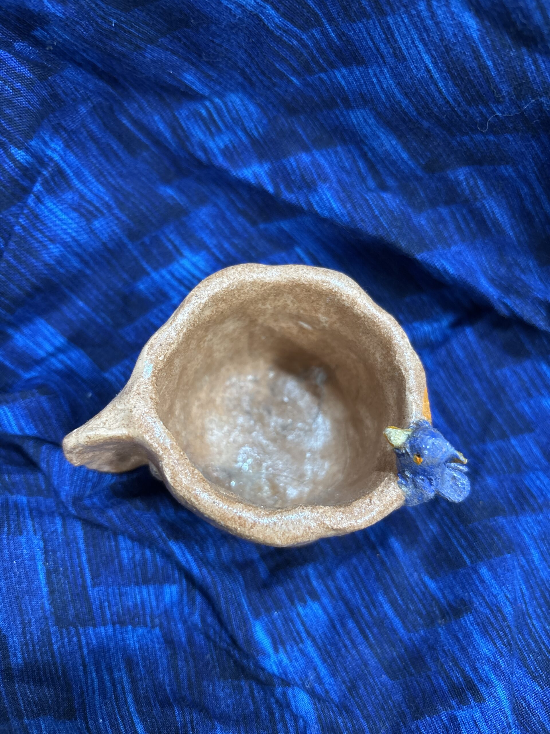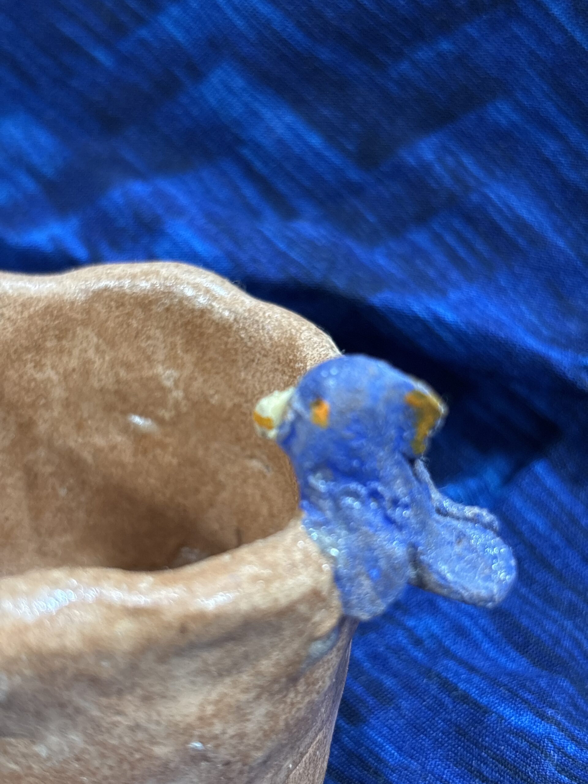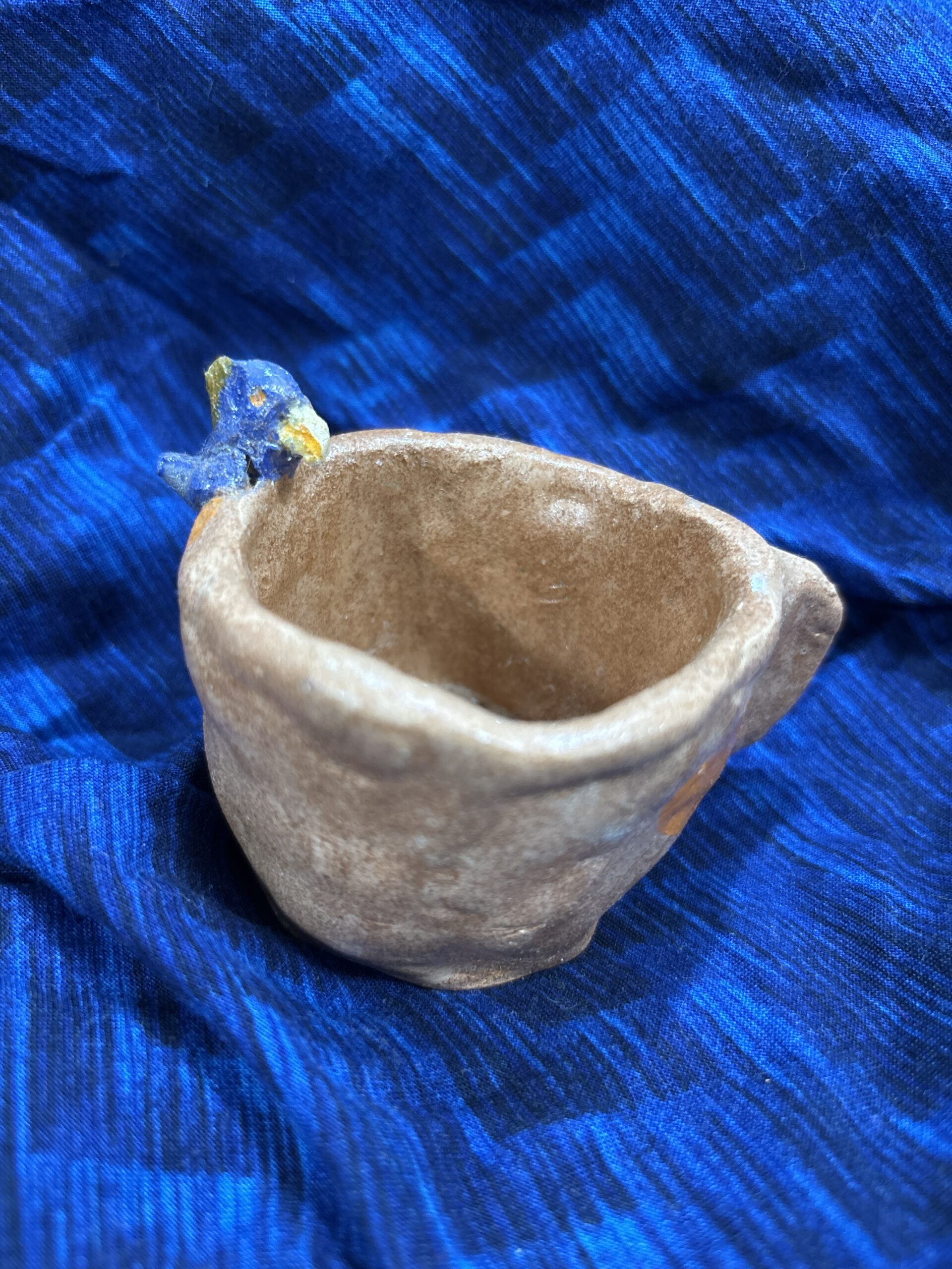 幸せの青い鳥が小さなコーヒーカップにちょこんと、止まっています。