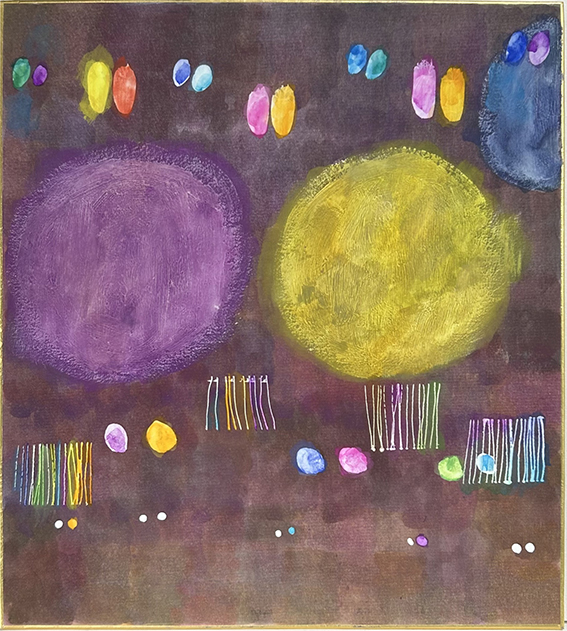 楽しい雰囲気の絵です。色紙に描いたものなのでキャンバスに描いた作品より値段を安くしましたのでお買い得です。