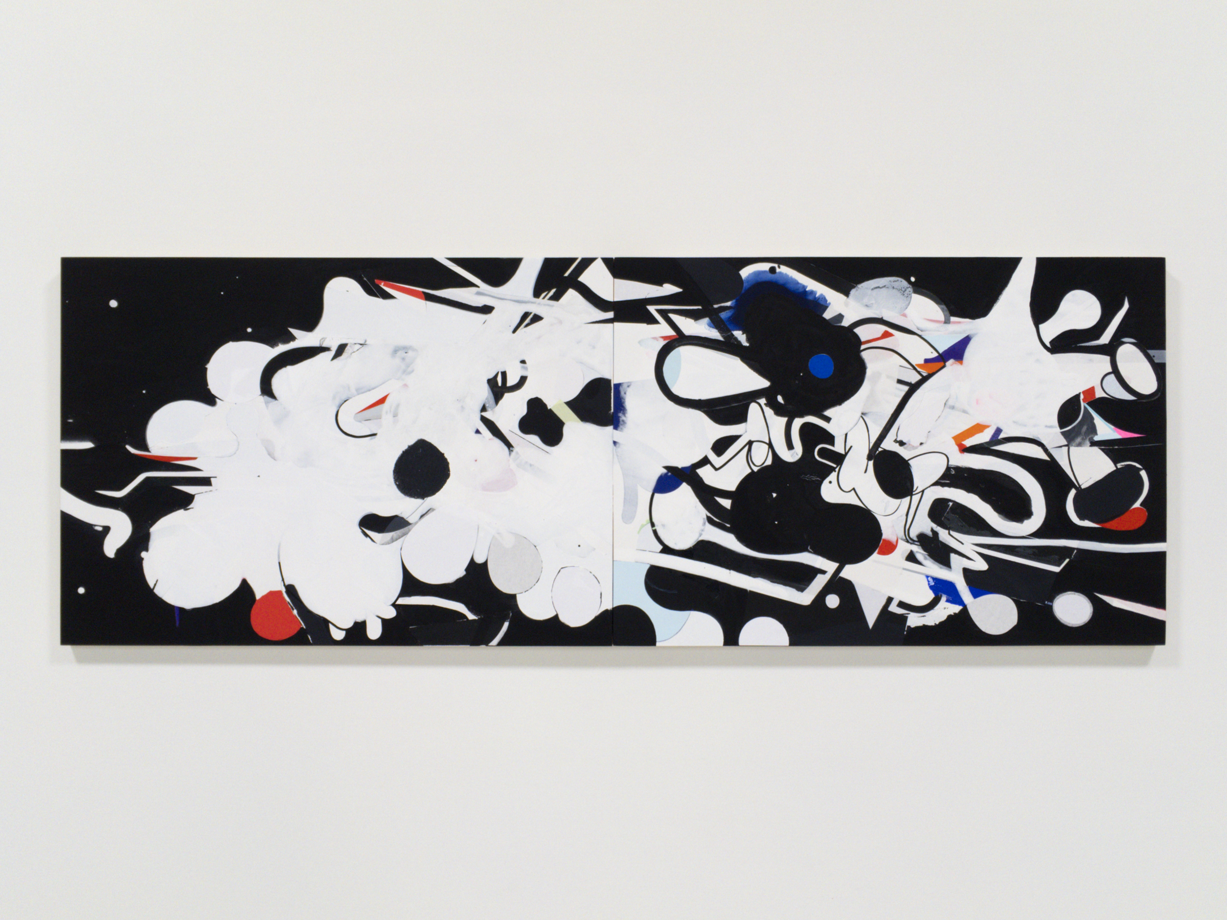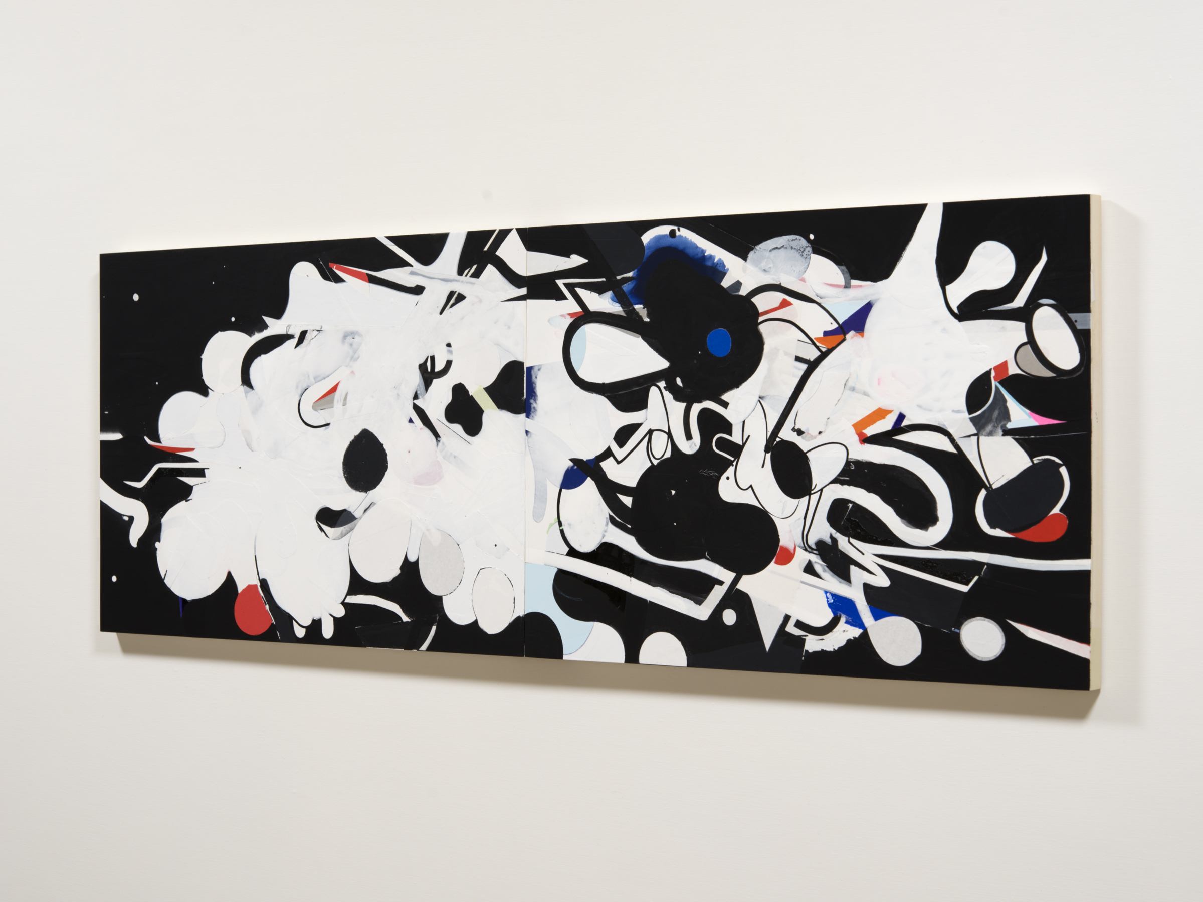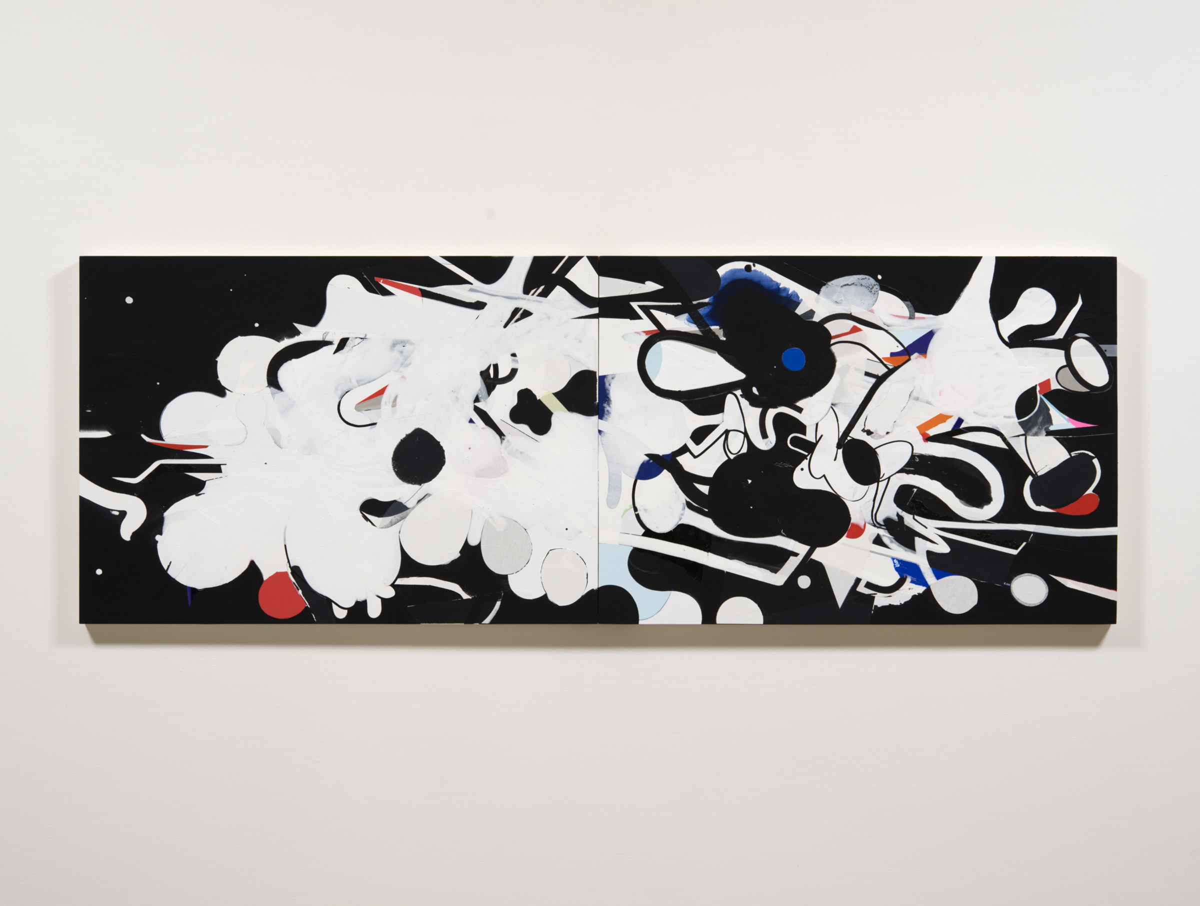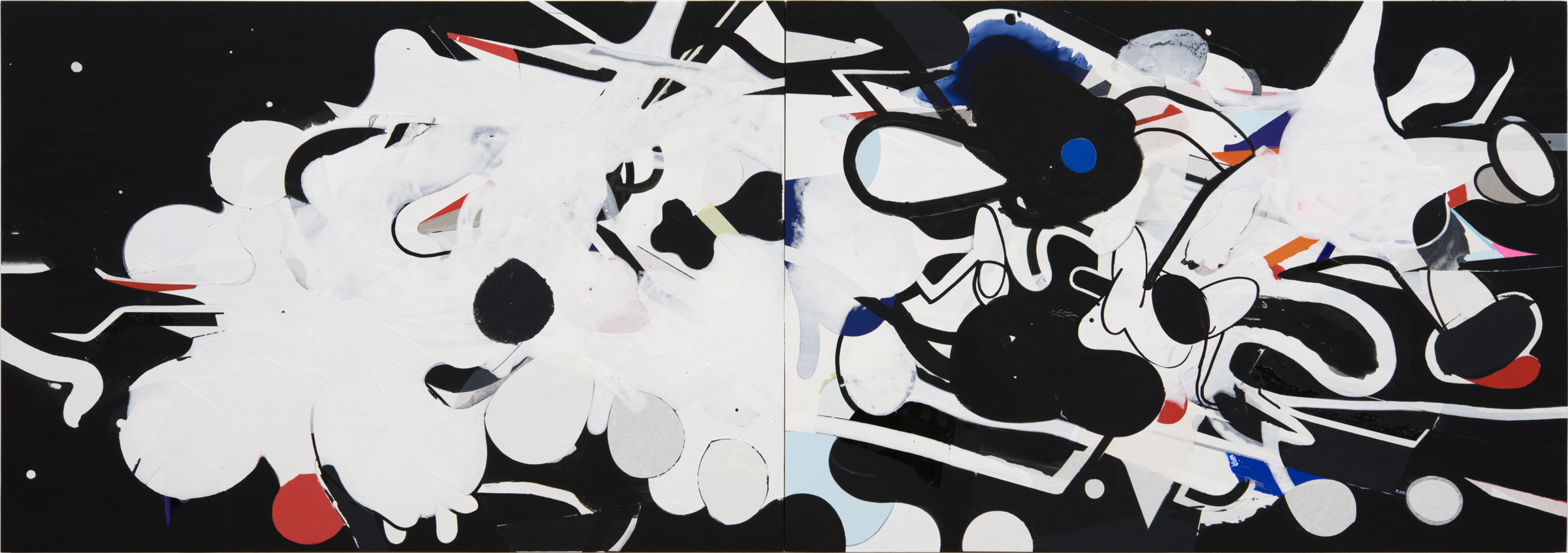 木製パネル(36.4 x 51.5 cm が2枚, 分離可能)にアクリル絵具、マーカー、紙のコラージュ
