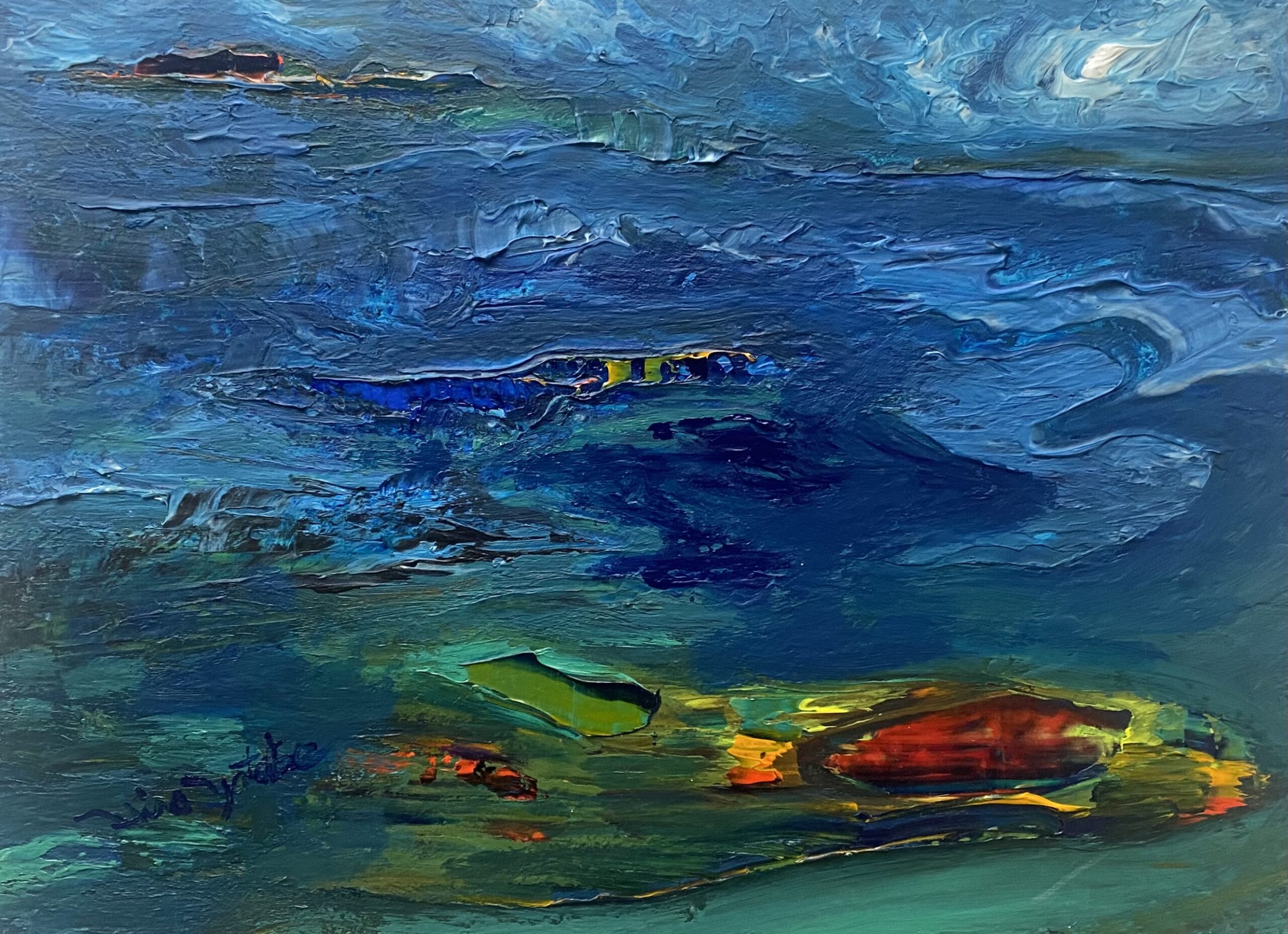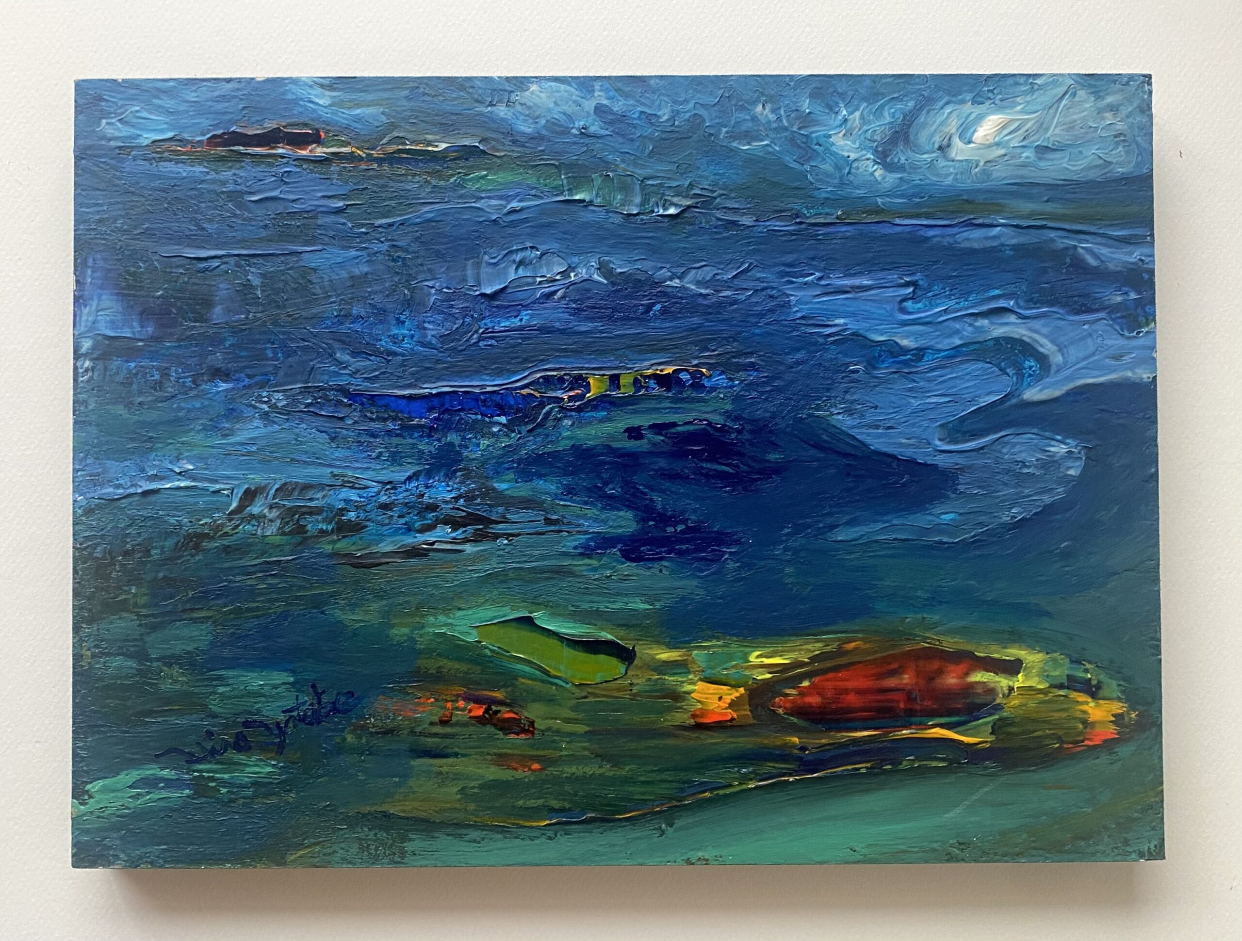 シリーズ作品を除き、タイトルは創作のはじめにあったものではなく、描き終えた時点で観る側となった私が名付けた「仮のタイトル」です。参考にするのも、答え合わせのように楽しむのも、あるいはまったく無視するのも自由です。抽象表現の色や形に意味を見出す手がかりは、あなたの記憶や経験のなかにしかありません。最終的な作品は観るかたの中で完成すべきものだと考えています。思い思いに想像の翼を羽ばたかせ、作品に新しい解釈を加えていただくことを望みます。
