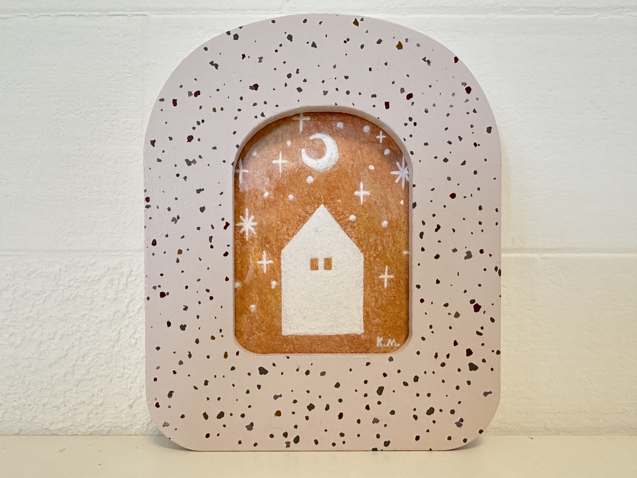手のひらサイズの額に、月あかりと星達に照らされる家を描きました🏠