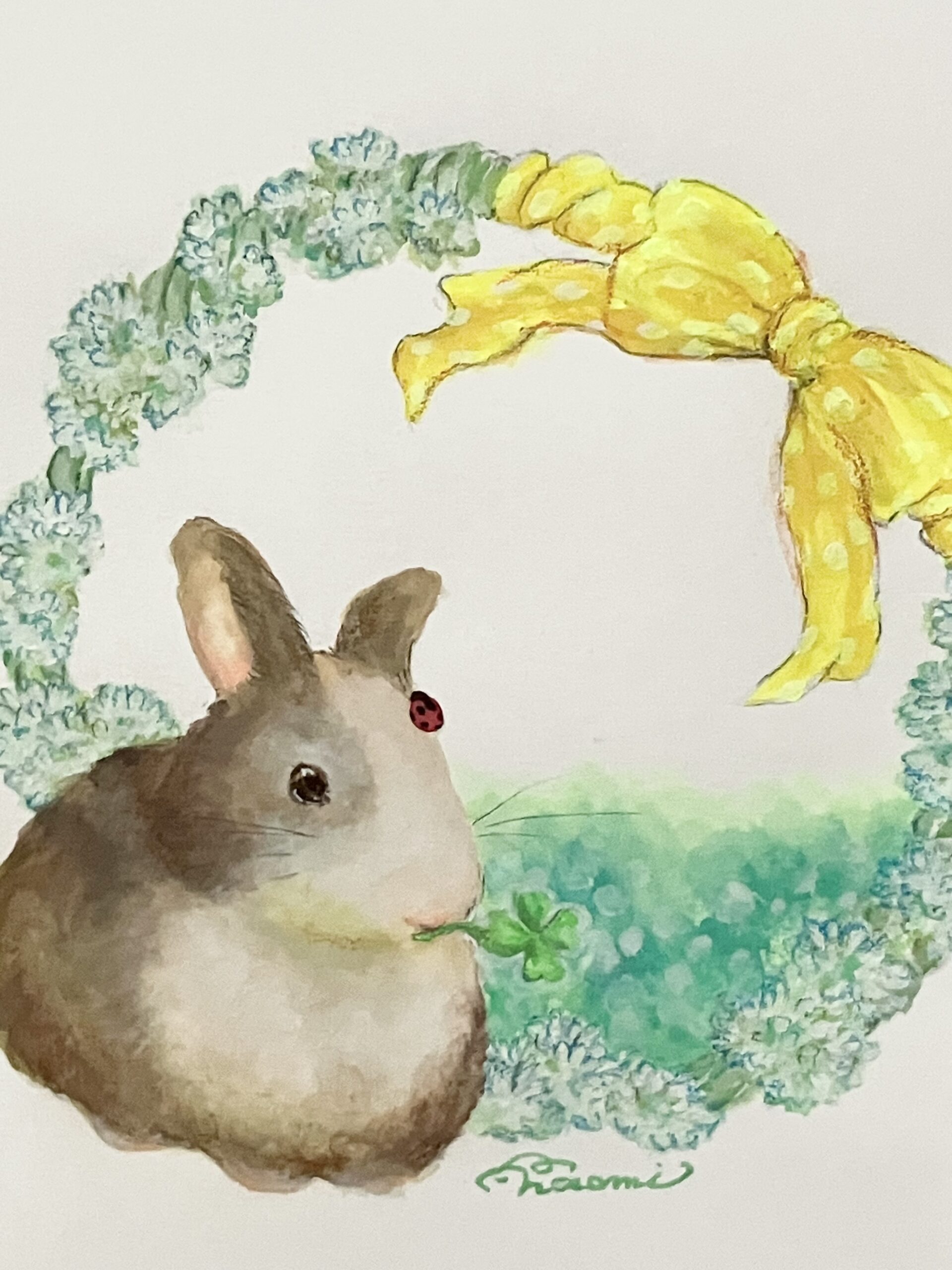 〈ウサギとシロツメクサのリース〉