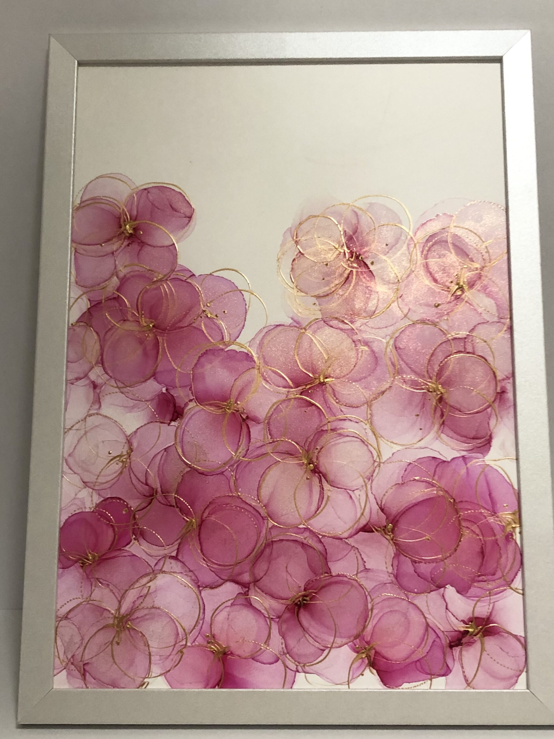 アルコールインクアートは、紫外線に弱く、年月の経過とともに褪色することがございます。あらかじめご了承いただき、時間を重ねるごとの彩りの変化も、どうぞお楽しみください。