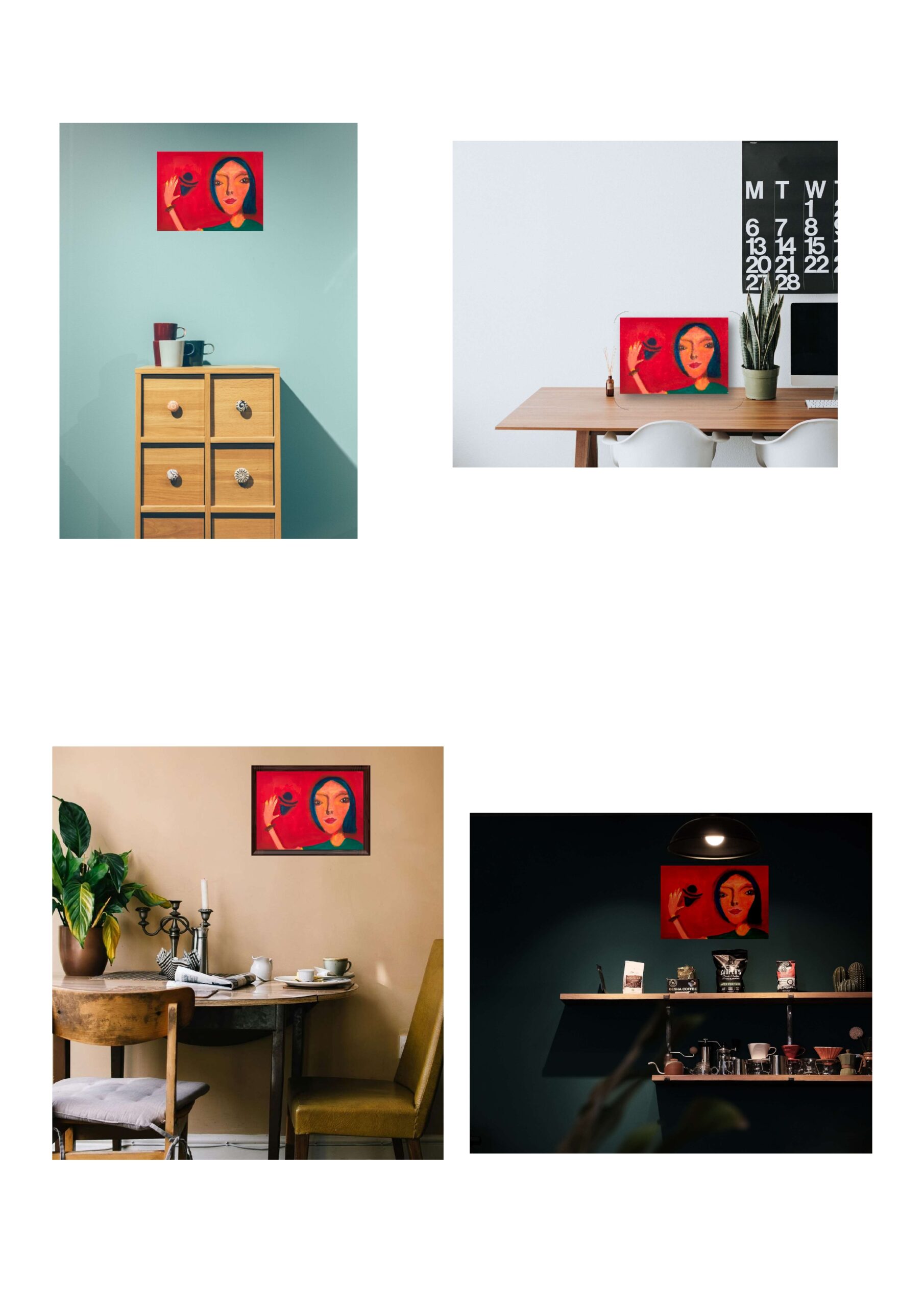 住宅のリビングやベッドルームはもちろん、書斎や玄関など、様々な空間に合うと思います。またお店のインテリアとして飾っていただいても面白いかと思います。