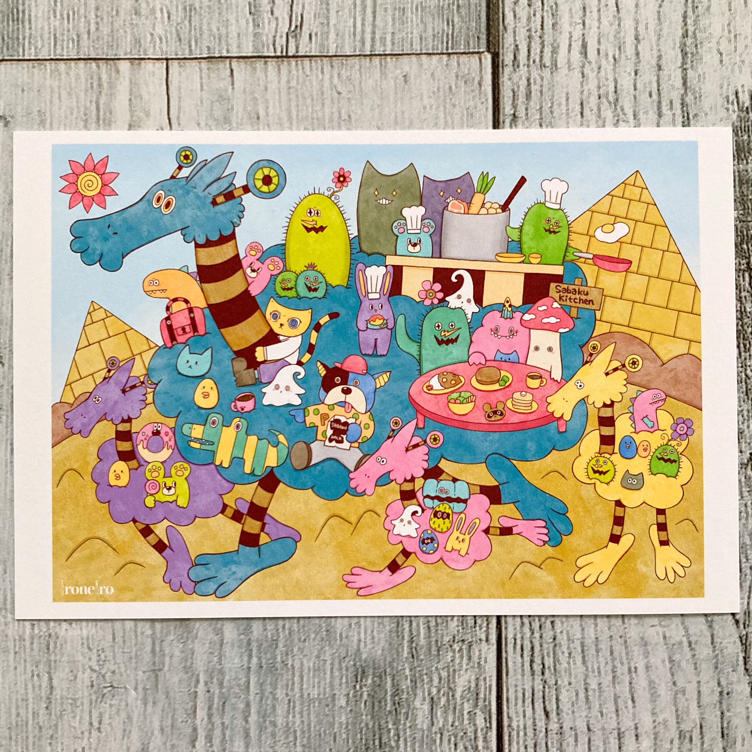 A4サイズのイラストをご購入いただいた方には、ポストカードサイズの同じイラストをお付けしております。