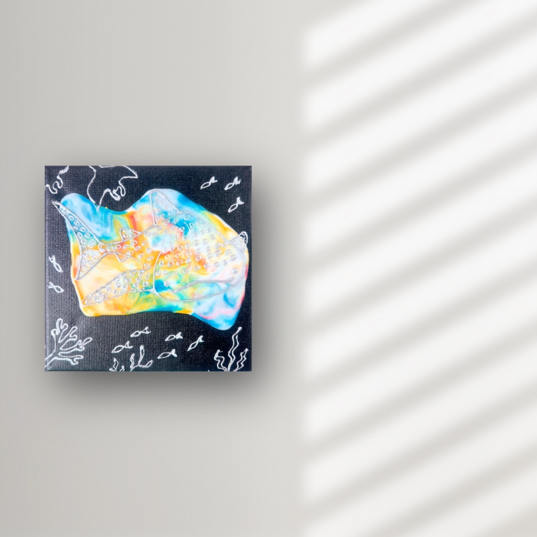 キャンドルの蝋とアクリル絵の具を組み合わせて描いたこのジンベイザメのワックスアート作品に、自然の神秘と美しさを詰め込みました。 この作品には、海の中を優雅に漂うジンベイザメに、巨大ながらも優しげな佇まいで抱擁されるような、あたたかな存在感を描いています。 特に自然をこよなく愛し、海や動物に魅了される方におすすめする一枚です。 小ぶりなサイズで飾る場所を選ば図、例えばリビングルームや書斎に飾れば空間に調和と豊かさをもたらします。 また、寝室に置けば、一日の疲れを癒し、穏やかな眠りへと導いてくれるでしょう。 ジンベイザメの優しい表情と色彩のハーモニーから心地よい静けさを感じていただければ幸いです。 日々の忙しさを忘れ、深い海の静寂と自然のリズムに心をゆだねてみてください。 この作品は、キャンドル作りやアルコールインクアートの偶発的な色模様の美しさと、自然の情景を融合させる試みから生まれました。 2025年春、実際にフィリピンの海で共に泳いだジンベイザメが、そのきっかけとなり、深く刻まれた記憶を頼りに描いた特別な一枚です。 ぜひこのアートを通じて、心温まる自然との新しい対話を始めてみてください。 ***ご購入前にご確認ください*** ・写真撮影の状況、ご使用のモニターの環境設定などにより実際の色と見え方が異なる場合がございます。 ・原画表面を強く擦らないようご注意ください。色移りのほか、ワックスや塗料が落ちる場合がございます。 ・直射日光や高温多湿の環境はお避けください。ワックスが溶ける恐れがございます。