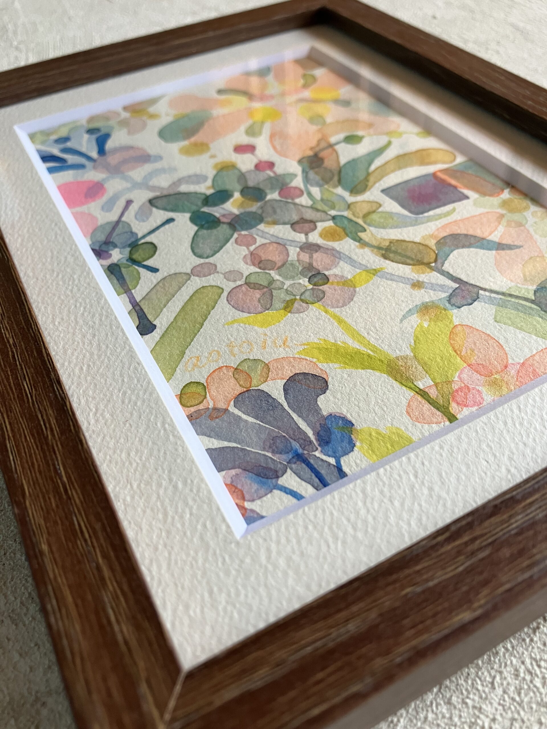小さいころから描くのが好きでした。引っ込み思案な子どもで、今でもたいそう不器用な人、です。何とかなんとか、周りの人たちに助けられて生かされています。振り返ってみると、つらいときも、きれいだなぁ、素敵だなぁ、心動かされるものを表現したい想いだけは、ずっと、かすかに消えそうになりながらも、わたしの膝のうえにあった気がします。たとえば、なにも特別なことは出来ないけれど、わたしにできることで、描くことで、わたしの絵に出会って下さった人の笑顔があることで、巡り巡って恩返しができるのではないか、と思っています。