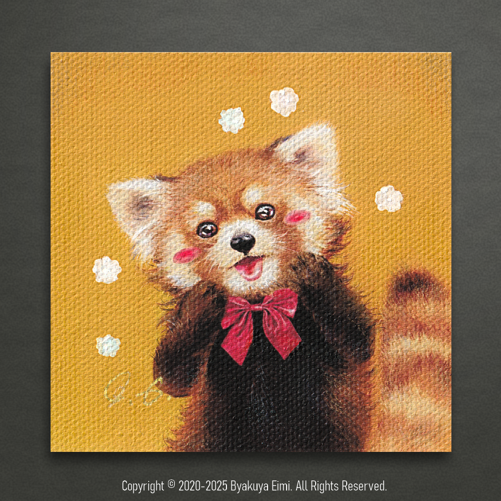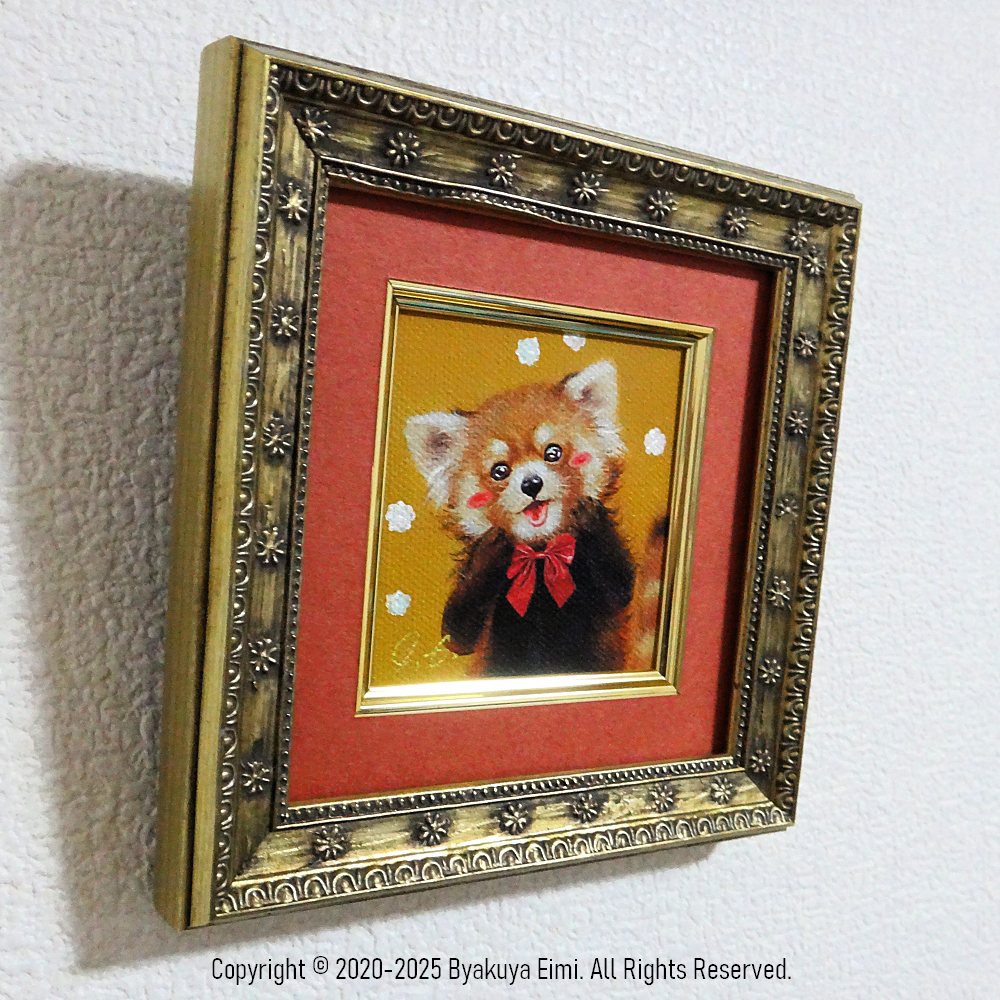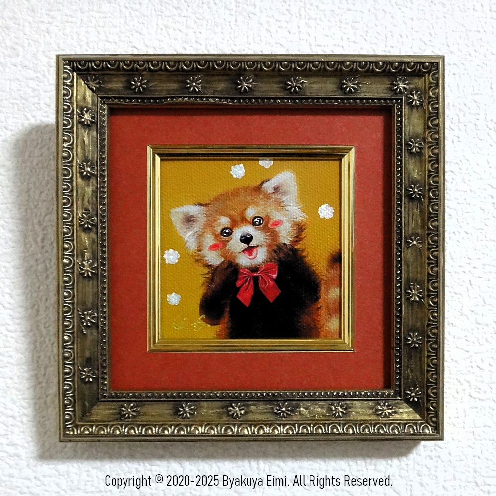 詠美びゃく夜『れっさーぱんだちゃん』ジクレー版画に手彩入りのミニチュア作品。作品の表面裏面に詠美びゃく夜サイン入。