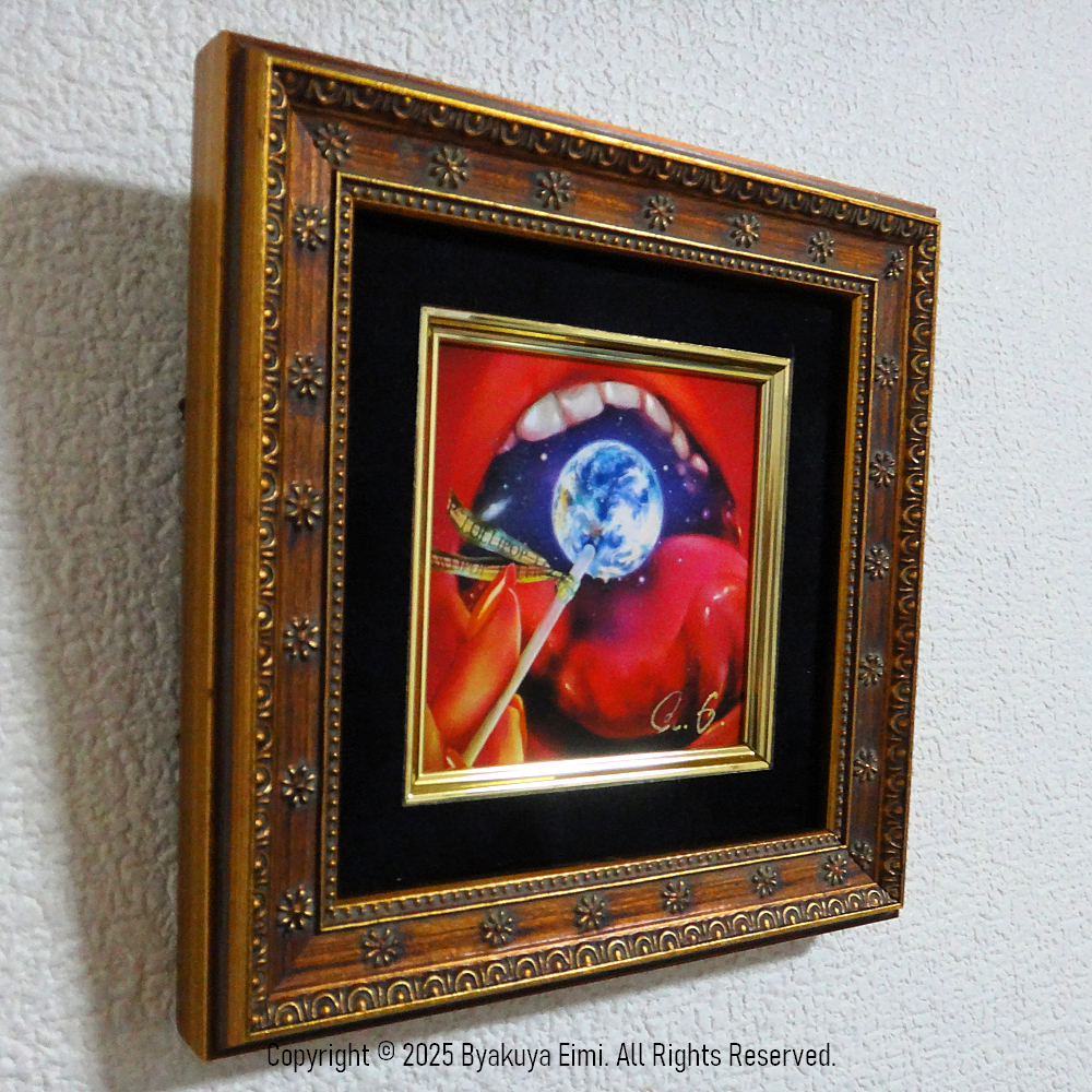 詠美びゃく夜『LOLLIPOP』版画に手彩入りのミニチュア作品。作品の表面裏面に詠美びゃく夜サイン入。