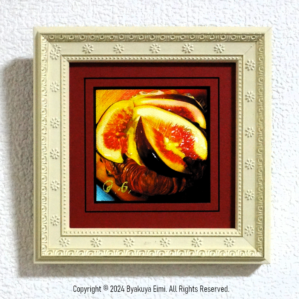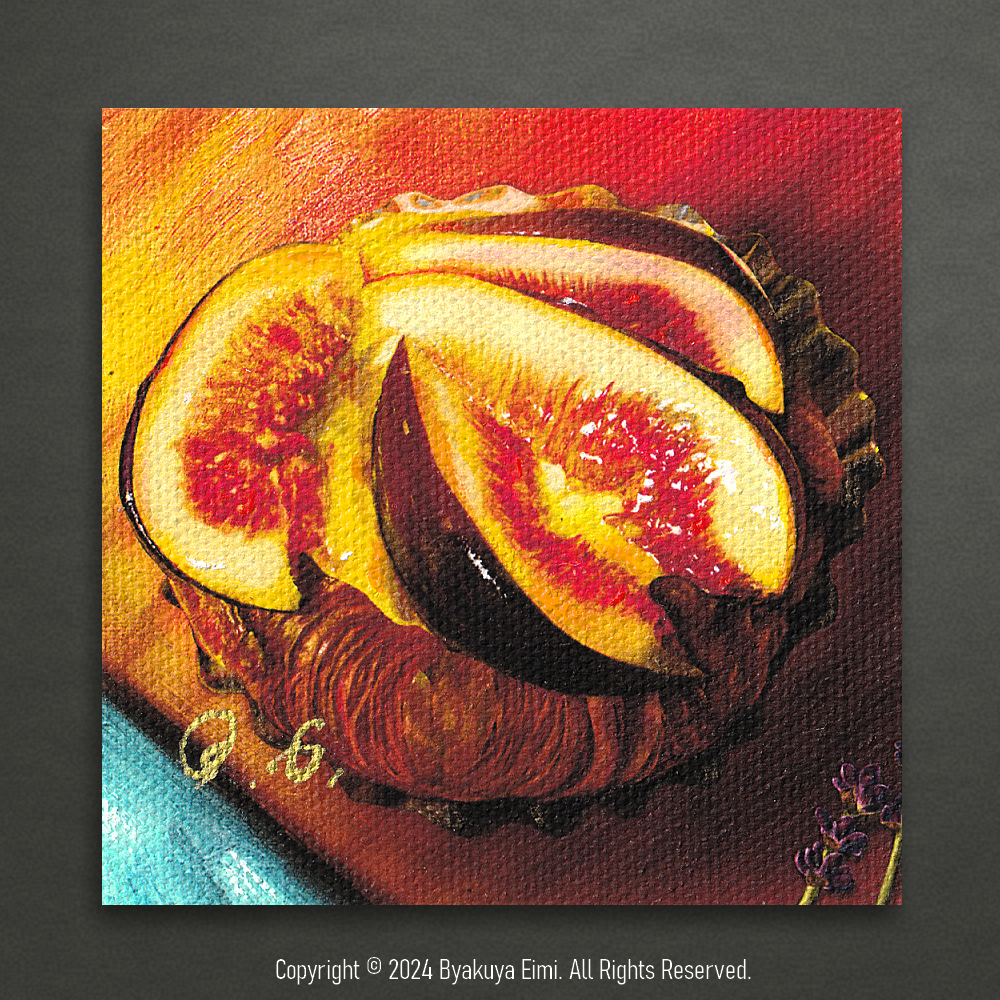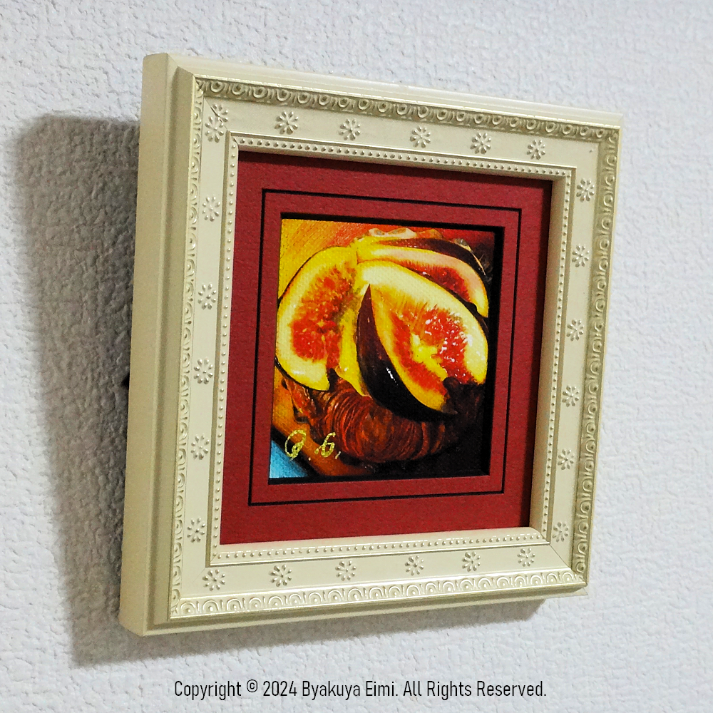 詠美びゃく夜『FIG TART』ジクレー版画に手彩入りのミニチュア作品。作品の表面裏面に詠美びゃく夜サイン入。