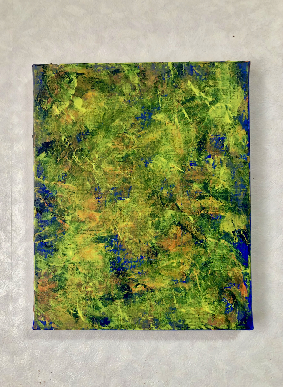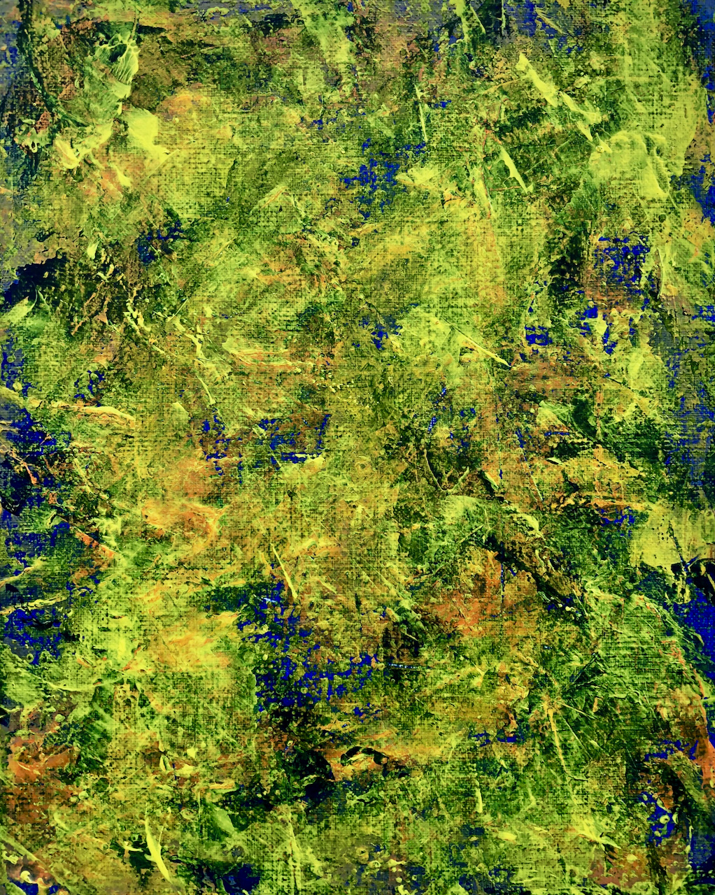 ペインティングナイフなどを使い、即興的に感覚をとらえて描いています。