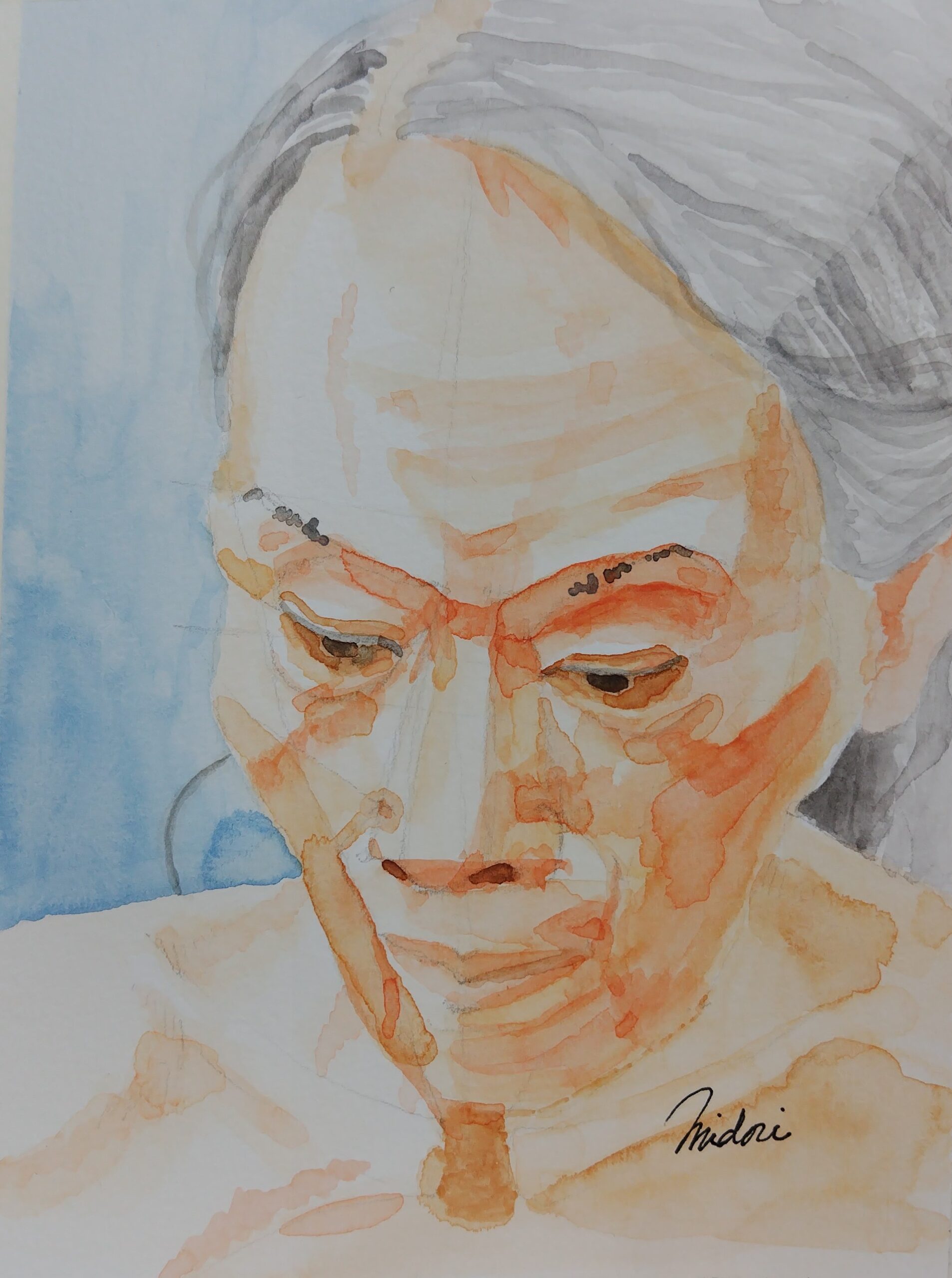 自分を生み育ててくれた母の肖像画を描きました。描いていると、苦労して生きてきたために刻まれた皺も愛しく感じ、母の人生を感じさせる絵になるといいなと思いました。初個展に出品した作品です。作品を観て、疎遠になっているお母様を想ったり、ふと会いたくなったというご感想を多くいただきました。